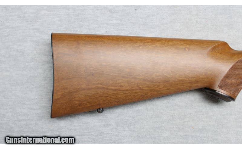 Description: Kimber Model 82 in .22 Long Rifle is a right-hand bolt-action rifle. It has a 22-inch barrel. The stock is finely checkered oil-rubbed walnut with a black steel pistol-grip cap. It has sling swivel bases attached. The receiver has 3/8-inch dovetail receiver ready for scope mounting. This rifle is in excellent condition. 9mm Luger SOLD Metal Condition: Very good. Slight pitting due to improper storage. Wood Condition: Excellent Bore Condition: Bright Barrels: 22 Inches Round Triggers: Factory Stock Dimensions: LOP 13 3/4 Inches Fore End: Checkered walnut Butt Pad: Textured Steel pad Sights: 3/8-inch dovetail receiver Item Location: La Vista, NE |