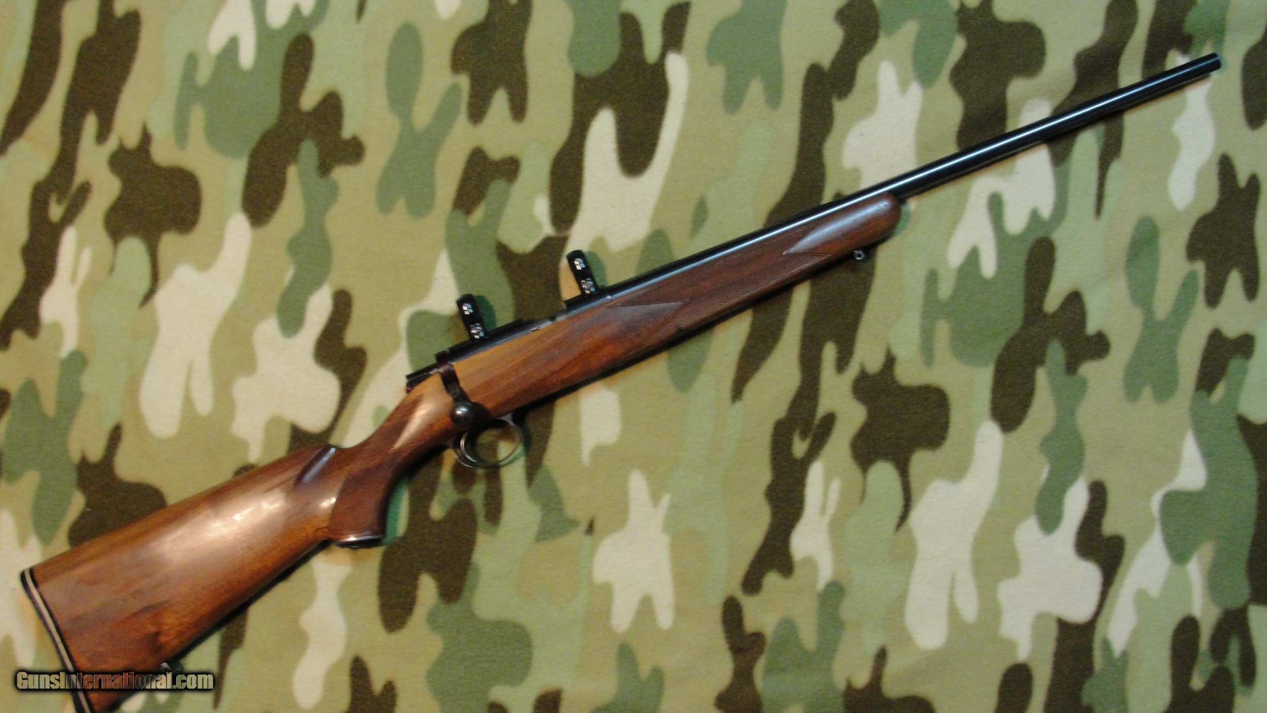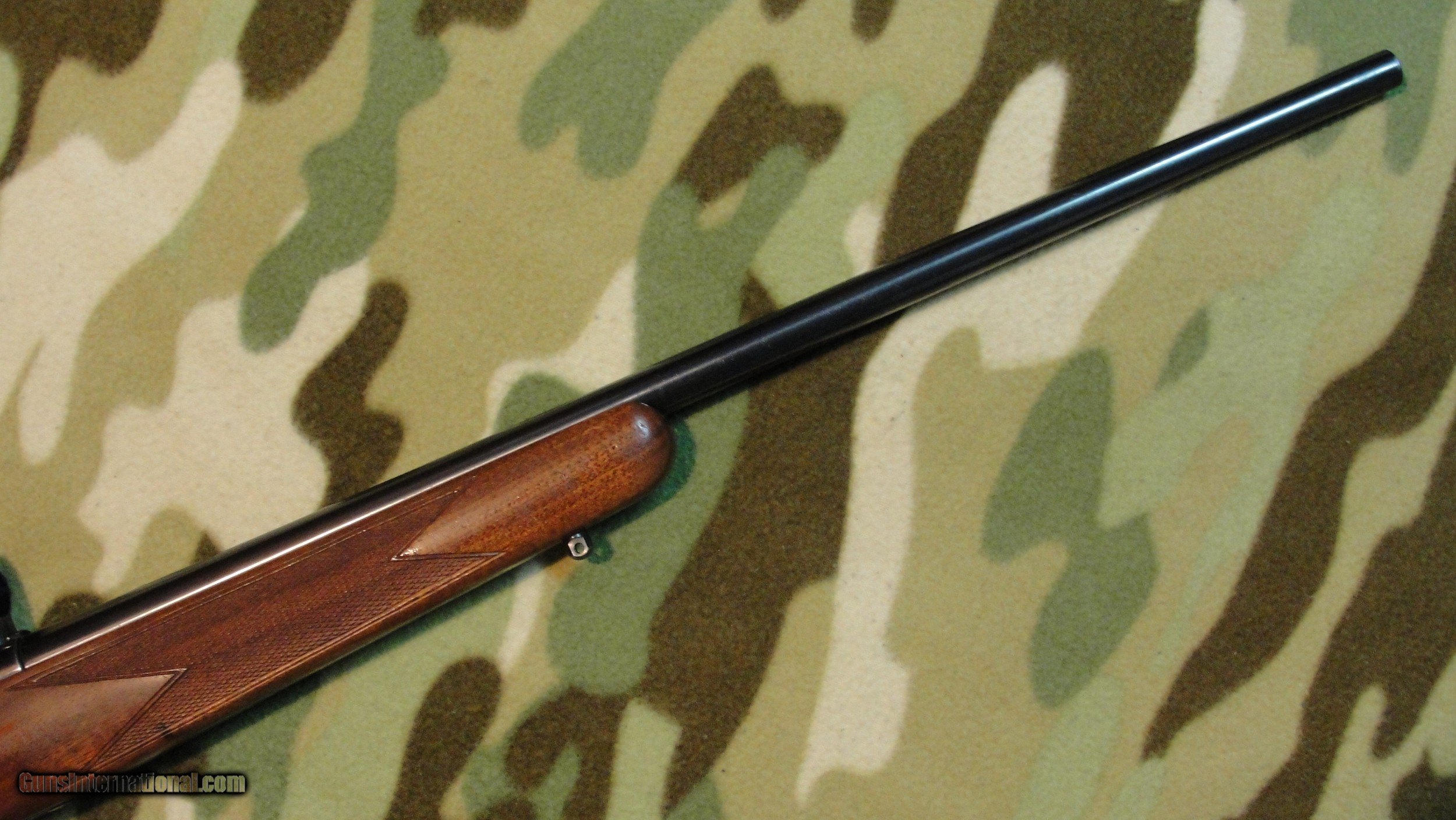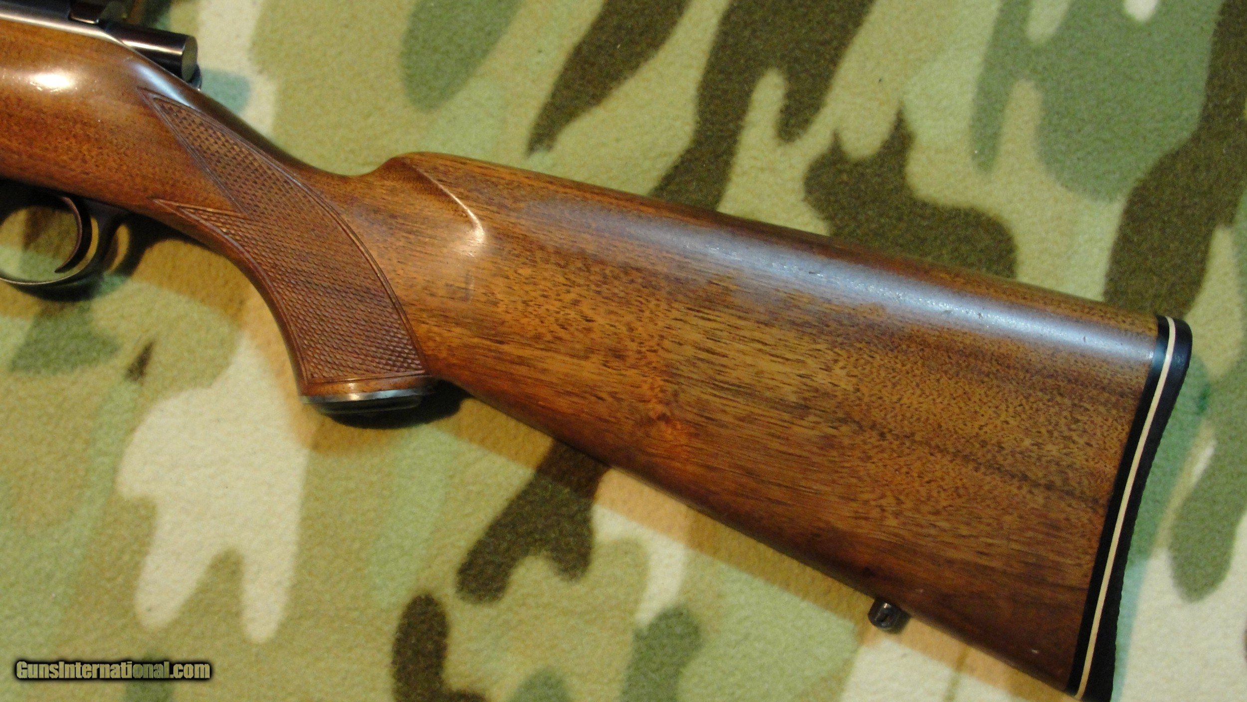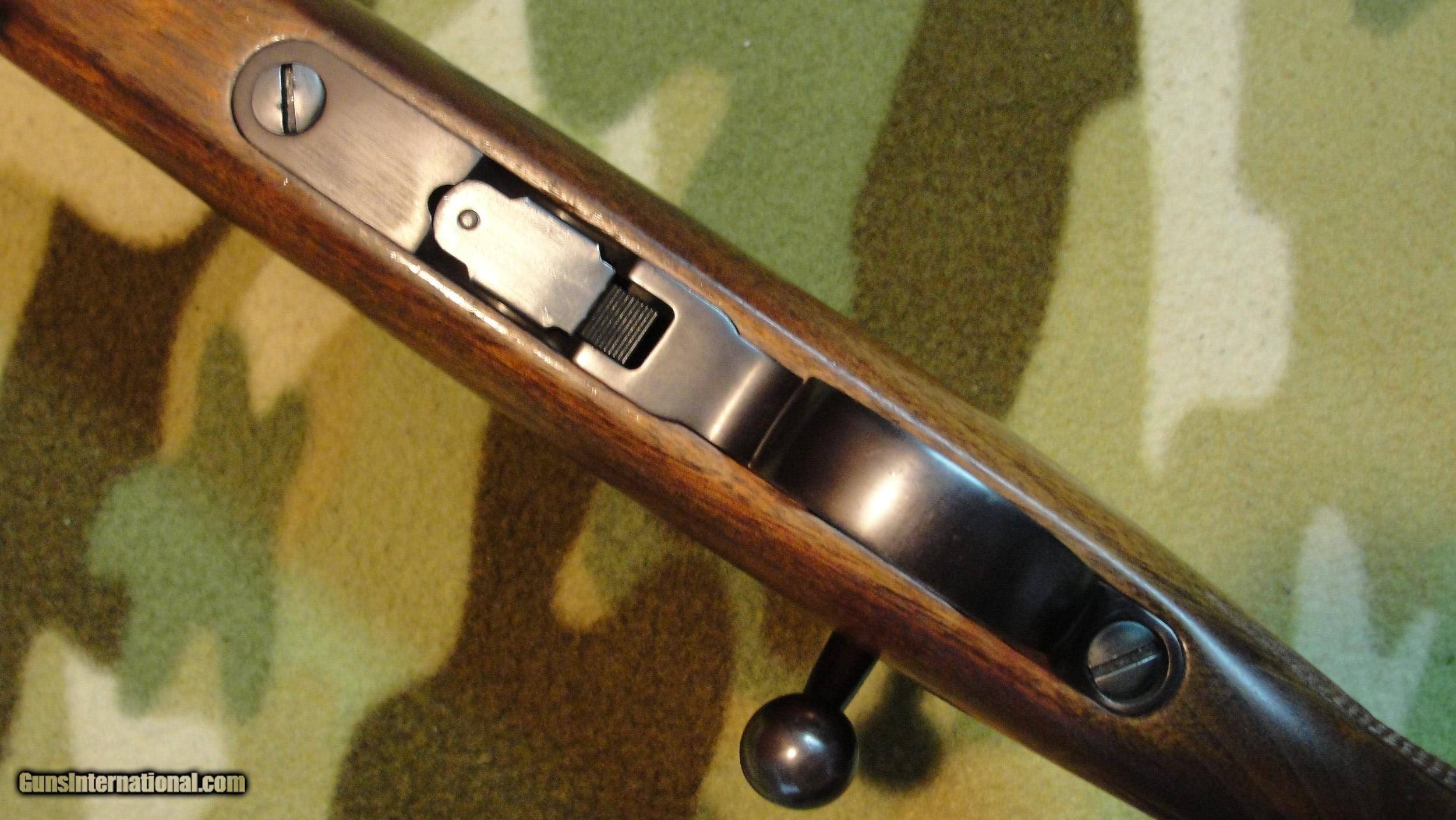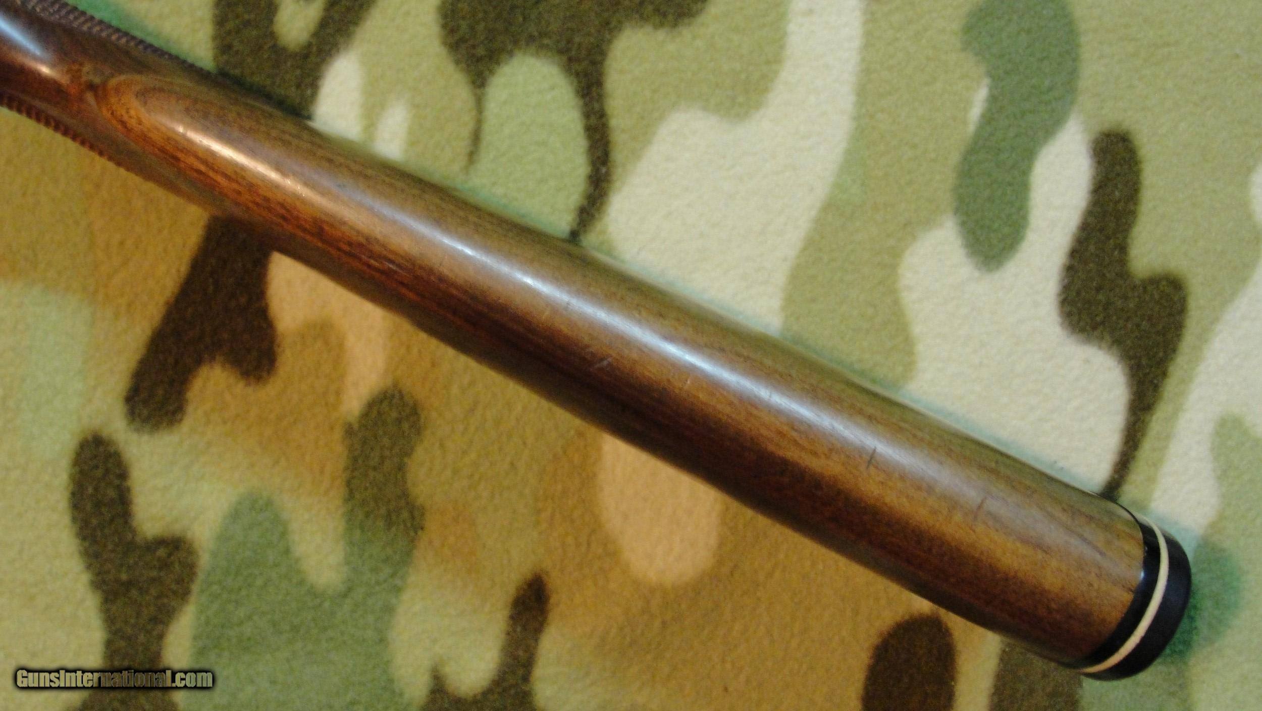 Description: Early 4-digit serial Clackamas rifle in mechanically superb shape. Has light handling marks, somewhat worn wood finish, and retains the factory scope rings. Blueing is really pretty, but has some good scratches behind the muzzle. I'd planned to get this professionally reblued and the stock refinished, but too many projects compells me to let it go. Now it can be someone else's winter project. Or, add a scope and sling and use it as-is, for a handsome, accurate shooter at a great price. Beautiful 22-1/2"bore and rifling, clean action interior, 13-7/8"pull over the pad. Ser# 25xx made in the 80's. CA sales OK. SOLD |