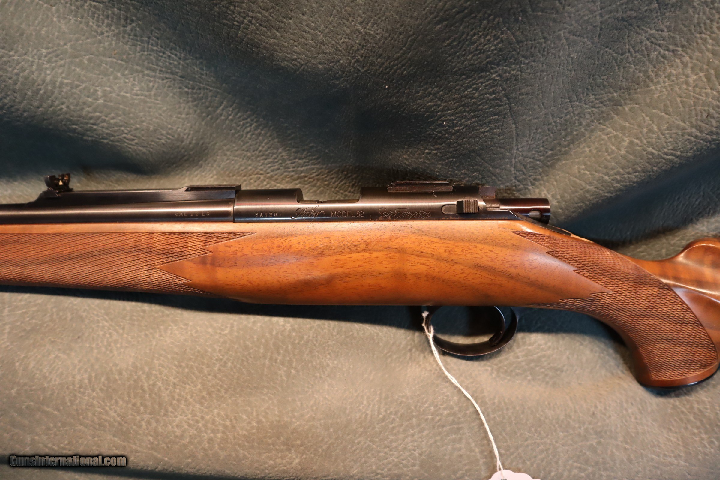 Description: Kimber of Oregon Model 82 22LR Super America,22" barrel with quarter rib rear sight and island fron sight,serial #SA126,easily repairable chip out of stock behind the rear tang,beautiful walnut stock with nice figure,cheekpiece,wrap checkering,Niedner checkered steel buttplate,excellent condition. GUN COLLECTIONS WANTED FOR CASH! We buy, sell, consign and trade new and used firearms. This is our 47th year in business. We offer 90 day layaways with 20% down. No return on layaways. Firearms will need to be transferred through a FFL dealer. Prices reflect a cash discount. There will be 3% added to credit card sales. We trade for gold and silver. THANK YOU! SOLD |