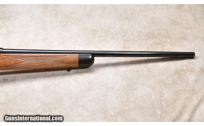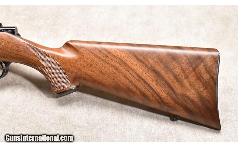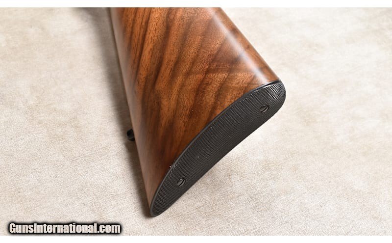 Description: From what we gather, the.25-20 model was a special order only rifle. It has walnut stock with strong grain that curls through the wrist, as well as some light feather. It doesn't appear to have been fired. .25-20 WCF SOLD Chambers: Single shot. Metal Condition: AsNIB Wood Condition: AsNIB Bore Condition: AsNIB Barrels: 22 inches Triggers: Factory trigger. Stock Dimensions: LOP: 13-5/9 inches Fore End: Black tip cap. Butt Pad: "Steel butt plate, steel grip cap. Weight: 6 lb - 3 oz Sights: Grooved for scope. Item Location: Rogers |