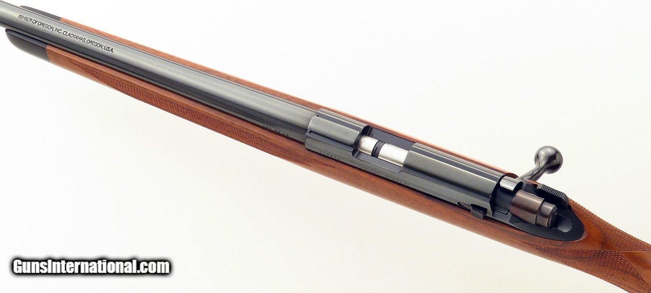 Description: Kimber of Oregon Model 82 Custom Cascade .22 LR. Made in 1986, serial 52748B originates from a small, exclusive run of rifles produced for Cabela's. Features include a B-series action, polished blue finish, 22-inch barrel, dovetailed receiver and a five-round magazine. The stock is crafted from AA-grade claro walnut and appointed with an ebony forend tip, 24 lines-per-inch wrap checkering, Monte Carlo comb, raised cheek rest, skeleton grip cap, checkered steel butt plate with widow's peak, inletted sling swivel studs and a satin finish. DIMENSIONS: Weight is 6.6 pounds and length-of-pull is 13.7 inches. CONDITION: The bore is strong and bright. Metal finish is approximately 98 percent with a few pin-size imperfections scattered along the wood like. Wood is at least 99 percent with trace indications of handling. INCLUSIONS: The original box with correct end label (foam insert has a broken end), test target, instruction flyer and warranty card are present. The price is firm and layaway is available. Trades for fine sporting rifles (particularly customs, rimfires and dangerous game calibers) and handguns will be respectfully considered. $4,500 plus shipping. SOLD Rifle Caliber: .22 Long Rifle |