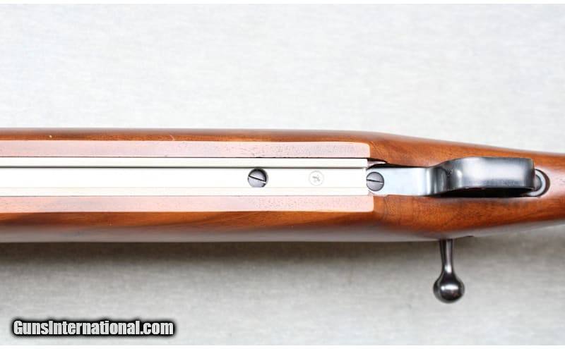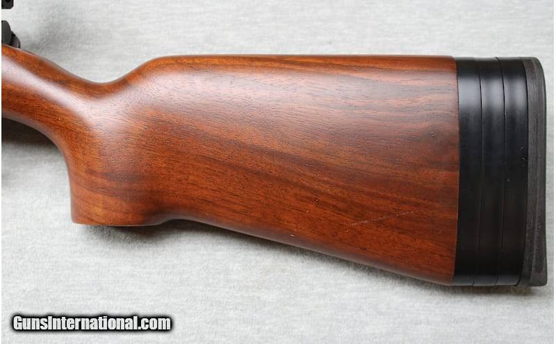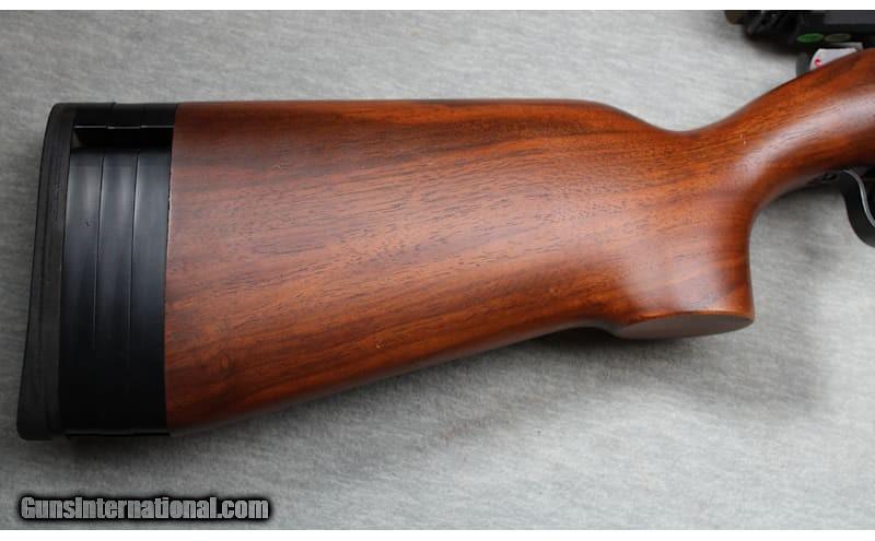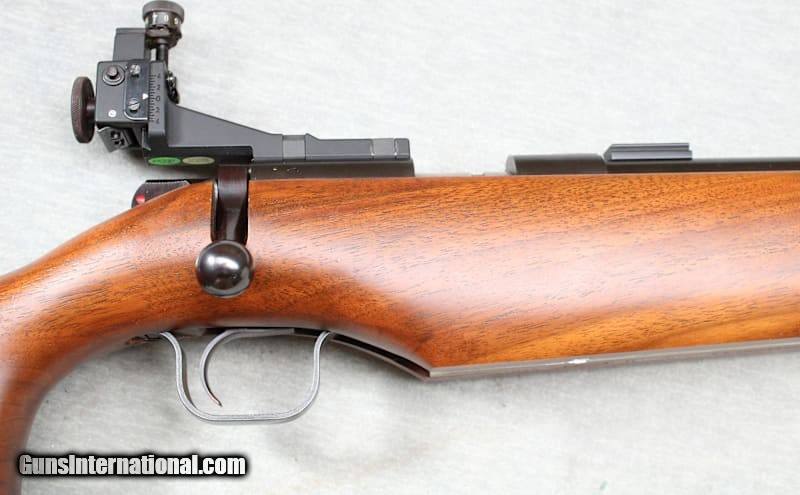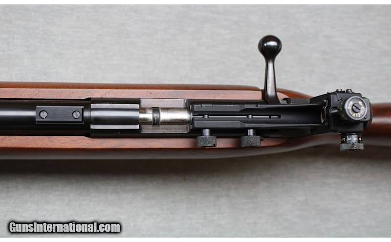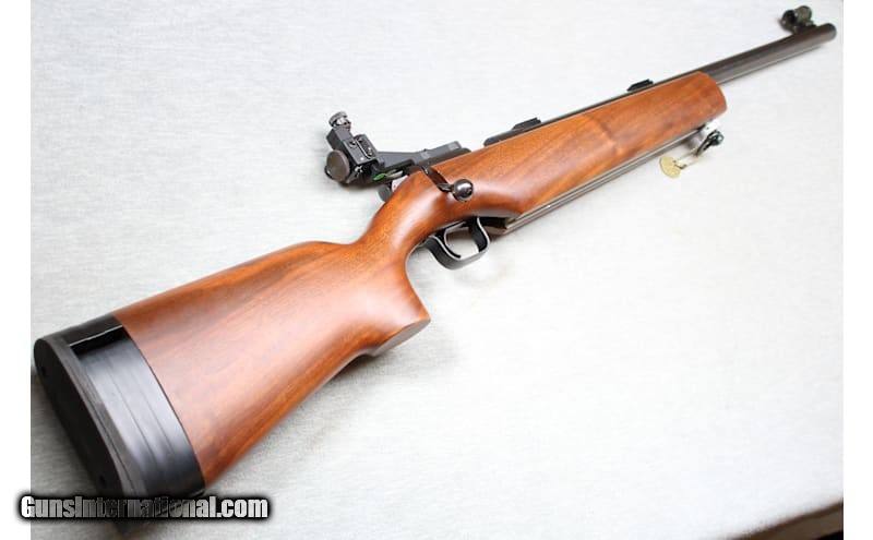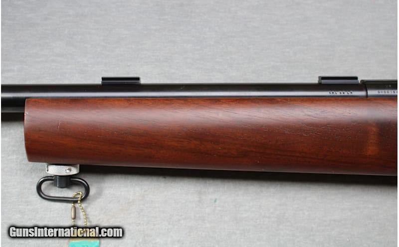 Description: Kimber 82 Government 22LR Competition Bolt Action Rifle. Manufactured for the U.S. Army in the 1980s, and later released to the public via the Civilian Marksmanship Program. Globe front, the "U S" marking on the receiver, accessory rail on the underside of the forearm, adjustable hand stop, with a walnut pistol grip buttstock with solid recoil pad and 3 plastic spacers. This example comes with the originl box and appears to have never been issued. Finish is very good and the rifle shows little wear. .22 Long Rifle SOLD Metal Condition: very good Wood Condition: very good Bore Condition: bright Barrels: 25" barrel Stock Dimensions: 14 Fore End: smooth wood Butt Pad: rubber Weight: 10 lb - 6 oz Sights: factory target sights Item Location: La Vista, NE |