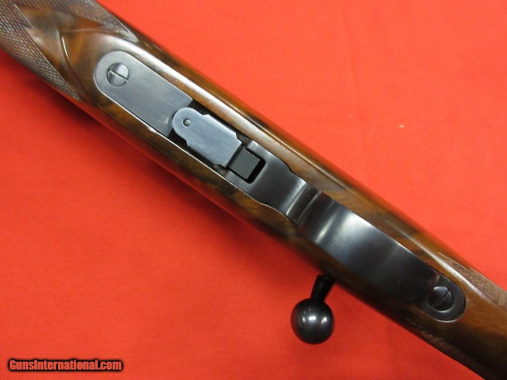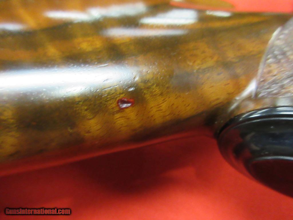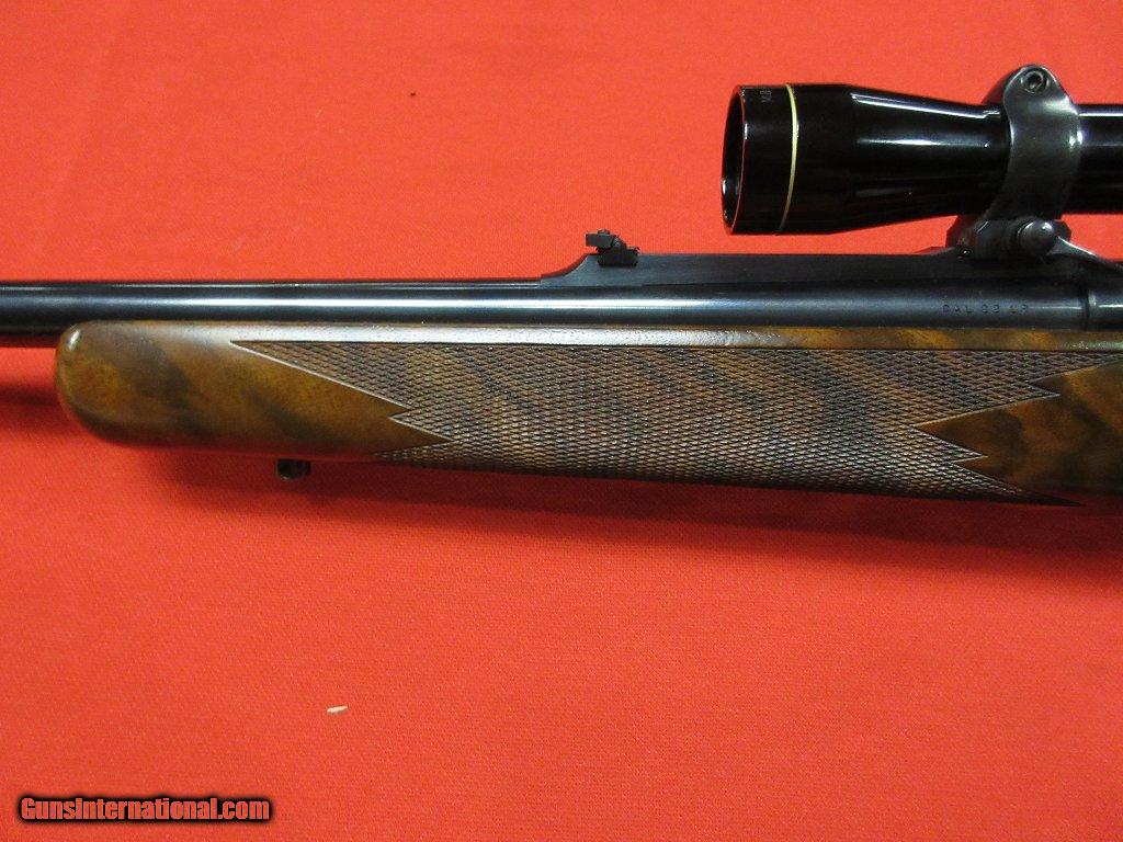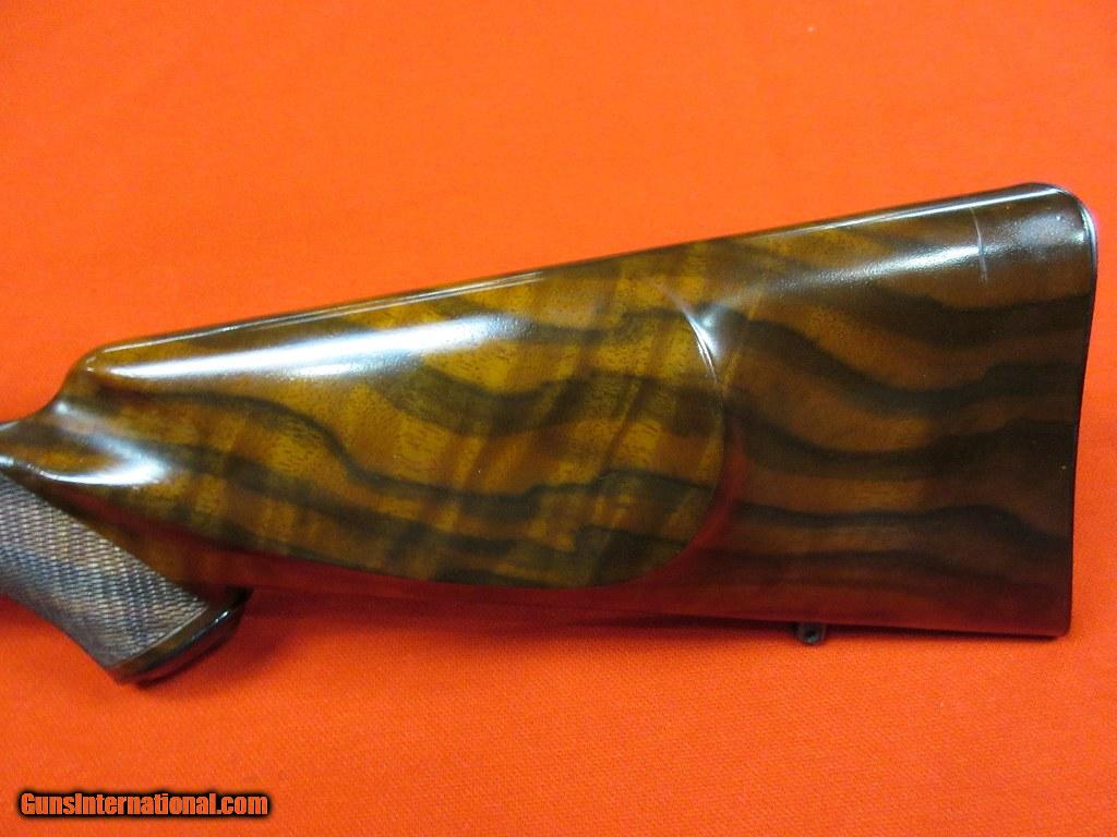 Description: Kimber of Oregon Model 82 Super America: Factory original and test fired only condition, highly figured walnut stock with checkering, Niedner checkered steel butt plate with a widows peak, detachable magazine, steel grip cap, factory sling swivels, quarter rib, folding rear sight, hooded front sight, topped with a Leupold M8 4X scope with factory hand detachable vertical scope rings. SOLD |