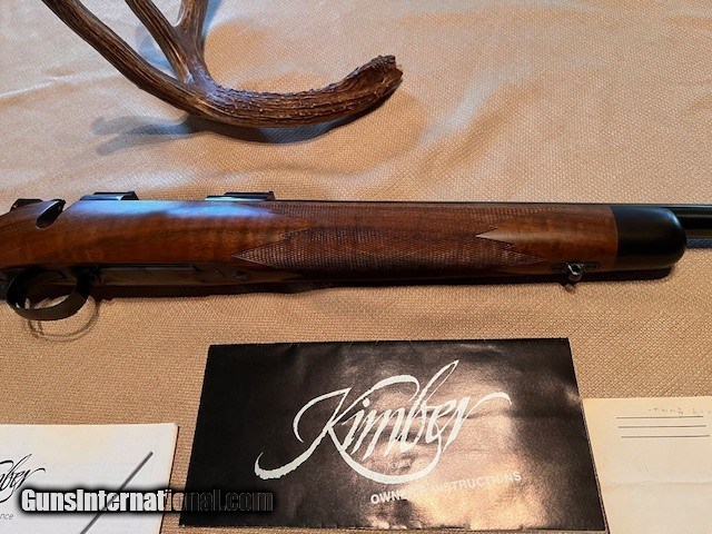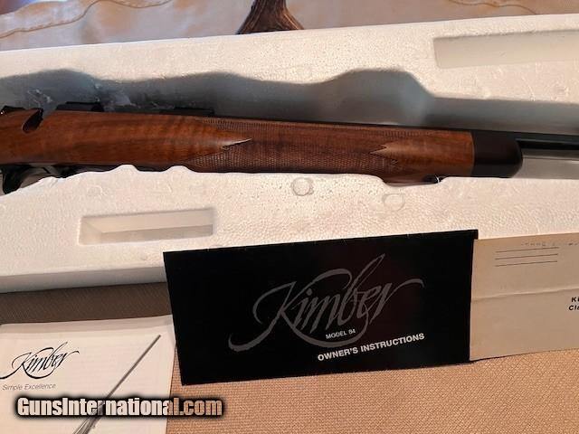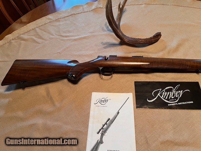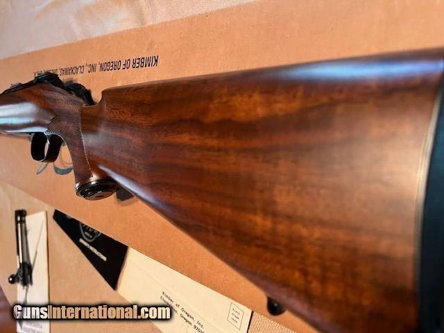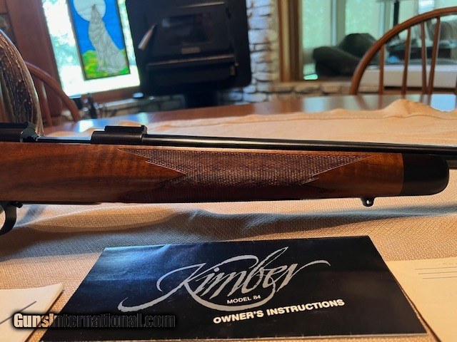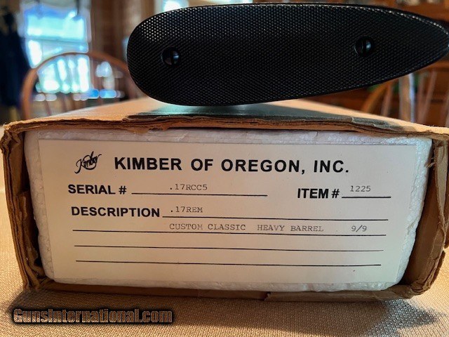 Description: Kimber Of Oregon Model 84 Heavy Barrel in 17 Rem. I am selling it as a used rifle in New condition in Original Box and paperwork. This is a Beautiful Rare Kimber of Oregon in 17 Rem Heavy Barrel.. This is a Rare cartridge in 17 cal heavy barrel It has been shot five times. Custom Classic Deluxe with wrap around checkering Great trigger pull and all original . And inletted sling swivels with original box!! Wrap around chheckering and inletted sling swivels and ebony forend.. Don't miss this item if you are a collector. 3195.00 plus shipping aand insurance costs. This is a Custom Classic Deluxe Heavy Barrel with wrap checkering and inlettedsling swivels with great wood. Please excuse poor pictures. They pictures do not show real beauty of this rifle.3195.00 for bare rifle plus shipping! SOLD |