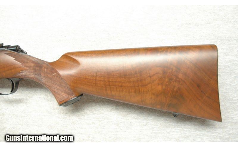 Description: This Kimber Model 84 is a right-hand bolt-action rifle in 6x45MM. It has a 22-inch barrel. It is drilled and tapped for scope bases. No iron sights. The butt stock is walnut with a checkered grip and a black steel pistol-grip cap. The forearm is checkered walnut with a black fore-end cap. It has sling swivel bases attached. The 6x45MM cartridge is a wildcat rimless, bottlenecked cartridge based on the .223 Remington cartridge necked up to .243 (6mm). The cartridge is extremely efficient with its small powder charge and has an excellent barrel life. It also has very low recoil and muzzle blast. It comes with the original box. This rifle appears to be unfired. None SOLD Metal Condition: Like New Wood Condition: Like New Bore Condition: Like New Barrels: 22 Inch Triggers: Factory Stock Dimensions: LOP 13 1/2 Inch Fore End: Checkered Walnut Butt Pad: Steel pad Sights: Drilled and tapped for scope bases. Item Location: La Vista, NE |