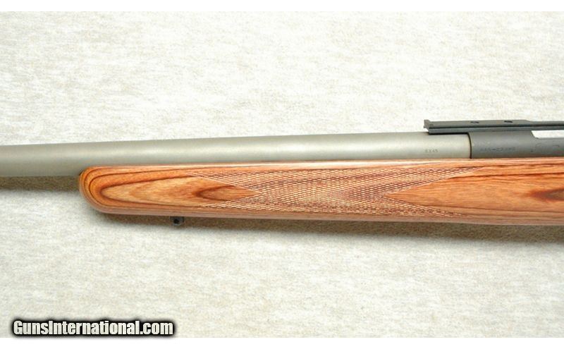 Description: This Kimber Model 84 is a right-hand bolt-action rifle in 6x45MM. It has a 24-inch barrel. It has a grooved rail to accept 3/8 Inch scope rings. No iron sights. The butt stock is laminated hardwood with checkered grip with a black steel pistol-grip cap. The forearm is checkered laminated hardwood. It has sling swivel bases attached. The 6x45MM cartridge is a wildcat rimless, bottlenecked cartridge based on the .223 Remington cartridge necked up to .243 (6mm). The cartridge is extremely efficient with its small powder charge. This translates to excellent barrel life. The cartridge has very low recoil and muzzle blast which make it a pleasant cartridge to shoot. This is a single shot rifle. It includes the original box. 6x45mm SOLD Metal Condition: Like New Wood Condition: Excellent with very slight handling marks Bore Condition: Like New Barrels: 24 Inch Triggers: Factory Stock Dimensions: LOP 13 3/4 Inch Fore End: Checkered Laminate Butt Pad: Factory hard rubber pad Sights: Grooved base plate for 3/8 Inch rings Item Location: La Vista, NE |