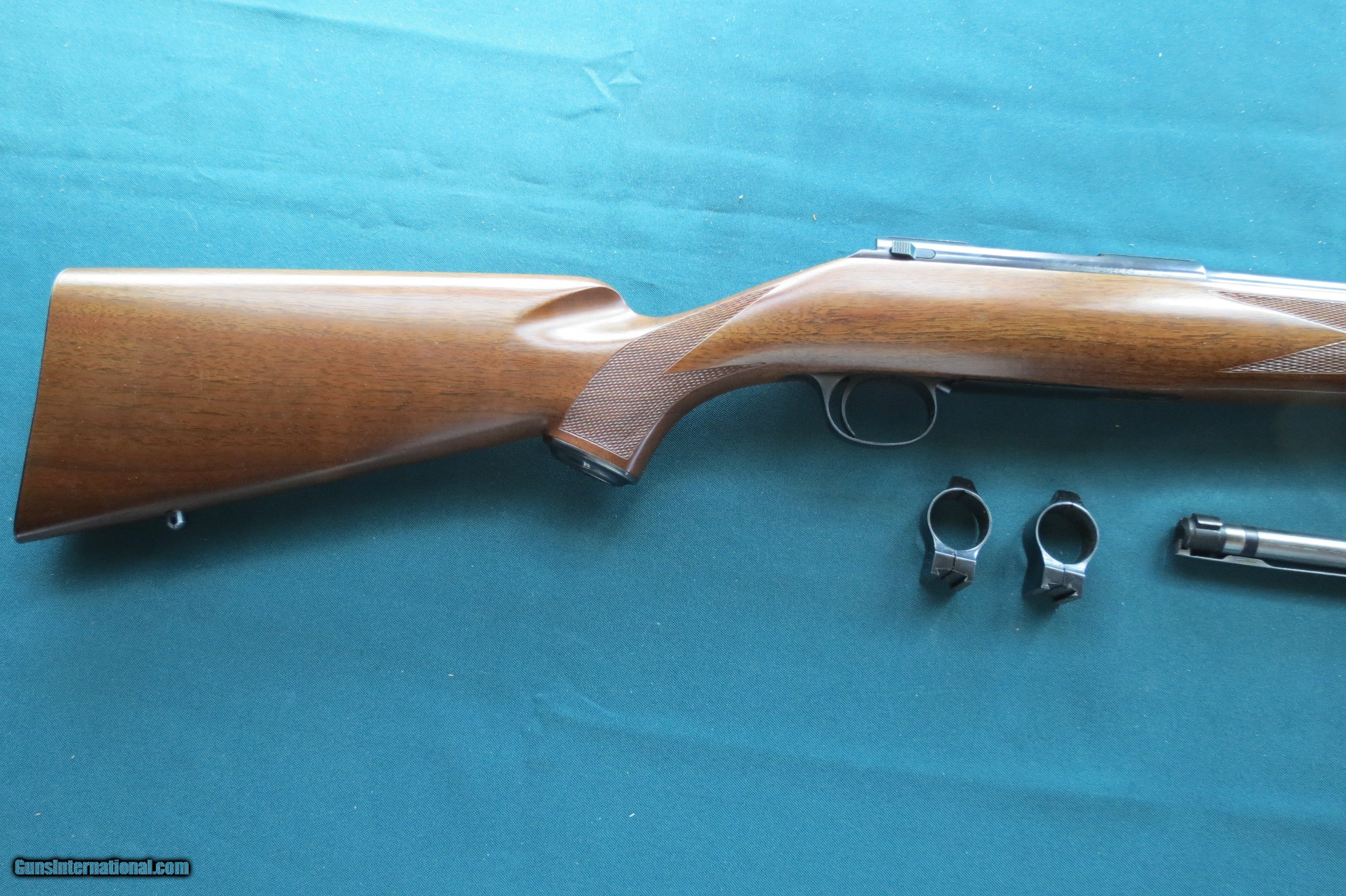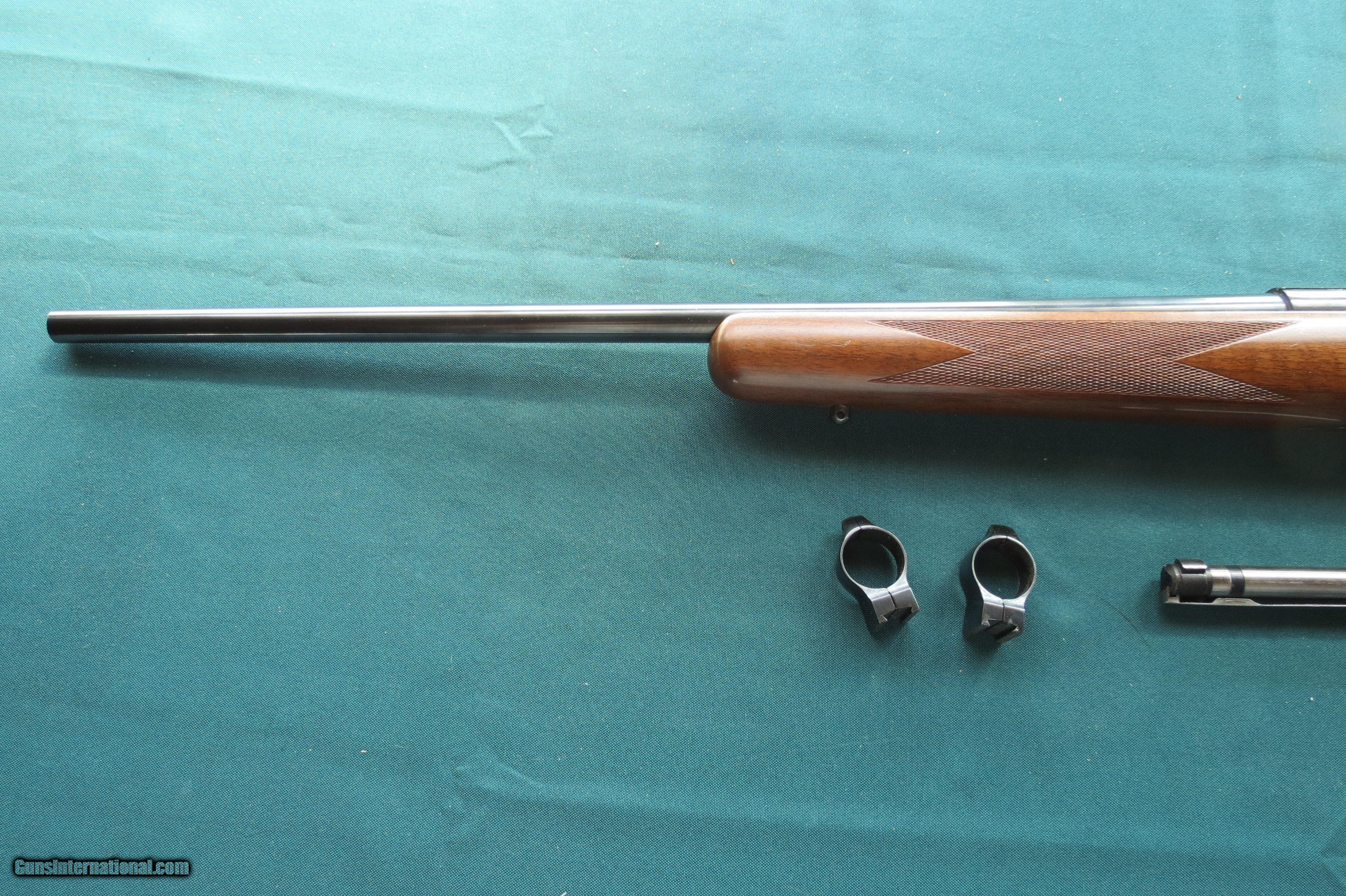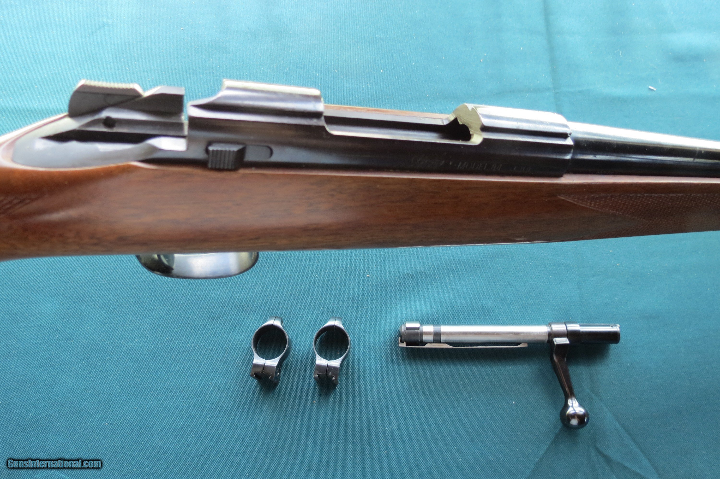 Description: Rare find, Kimber of Oregon Model 84 Classic Left Hand in 223 Remington, THIS RIFLE HAS A SINGLE DIGIT SERIAL NUMBER. 22" barrel, "Mini-Mauser" type head locking bolt action, Hinged floorplate, deluxe Claro walnut stock, steel buttplate, rocker style safety. Rings, Box with paperwork included. Rifle shows very well less a few handling marks. Shipping/insurance $55 SOLD Rifle Caliber: .223 Remington Manufacturer: Kimber of Oregon Model: Model 84 Classic Left Hand Barrel Length: 22" Condition: Excellent w/box |