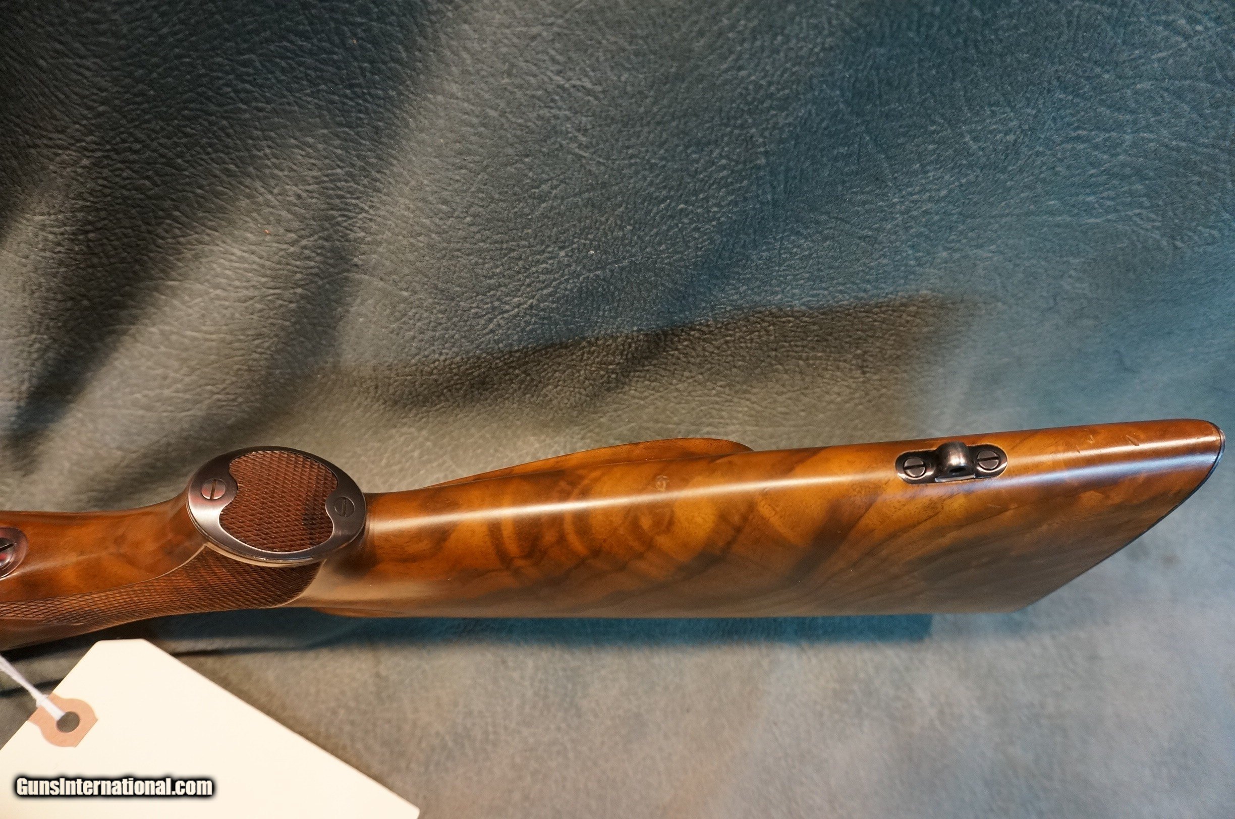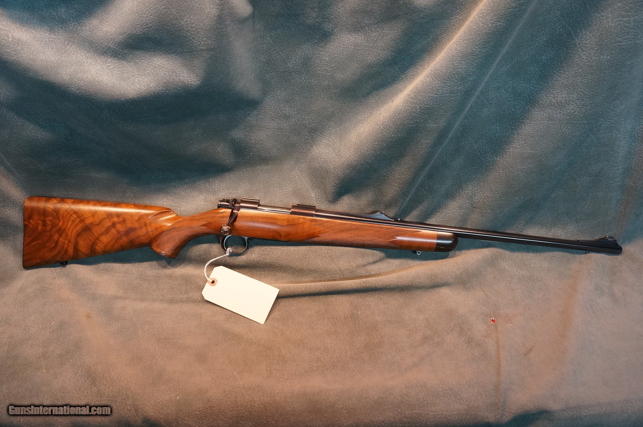 Description: Kimber of Oregon Model 84 Super America 22" barrel with quarter rib sights,Neidner checkered steel buttplate,beautiful feather crotch walnut stock with cheekpiece,wrap checkering,ebony forend tip,with some minor hunting marks,serial #RJO-1,M70 style safety,factory bases ,skeleton pistol grip cap,checkered bolt knob and inletted swivels. GUN COLLECTIONS WANTED FOR CASH! We buy, sell, consign and trade new and used firearms.We will pay finders fees and travel for large collections. This is our 46th year in business. We offer 90 day layaways with 20% down. No return on layaways. Firearms will need to be transferred through a FFL dealer. Prices reflect a cash discount. There will be 3% added to credit card sales. We trade for gold and silver. THANK YOU! SOLD |