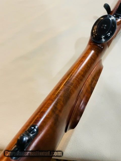 Description: Pending... There are great rifles and then there are special rifles and this one is special. A Super Continental in 223 with all the special trimmings and the addition of a pancake shadowline cheek piece. Triple AAA claro with fiddle back from top to bottom, inletted swivels, niedner butt, wrap checkering and that awesome cheek piece, it may be awhile before a 223 mannlicher Super Continental with sight package and checkered butter knife bolt hande is offered again. Price is $4,995 plus shipping from my FFL to your FFL. Best to call 616 886-7607 thank Jeff SOLD Rifle Caliber: .223 Remington Manufacturer: Kimber 84 Model: Super Continental Serial Number: LSM6-88 Condition: as new |