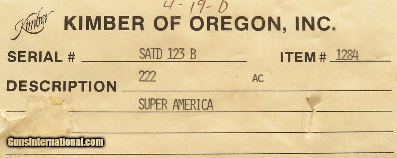 Kimber of Oregon Model 84 SuperAmerica .222 Remington, three-position, skeleton, box, 98%, layaway