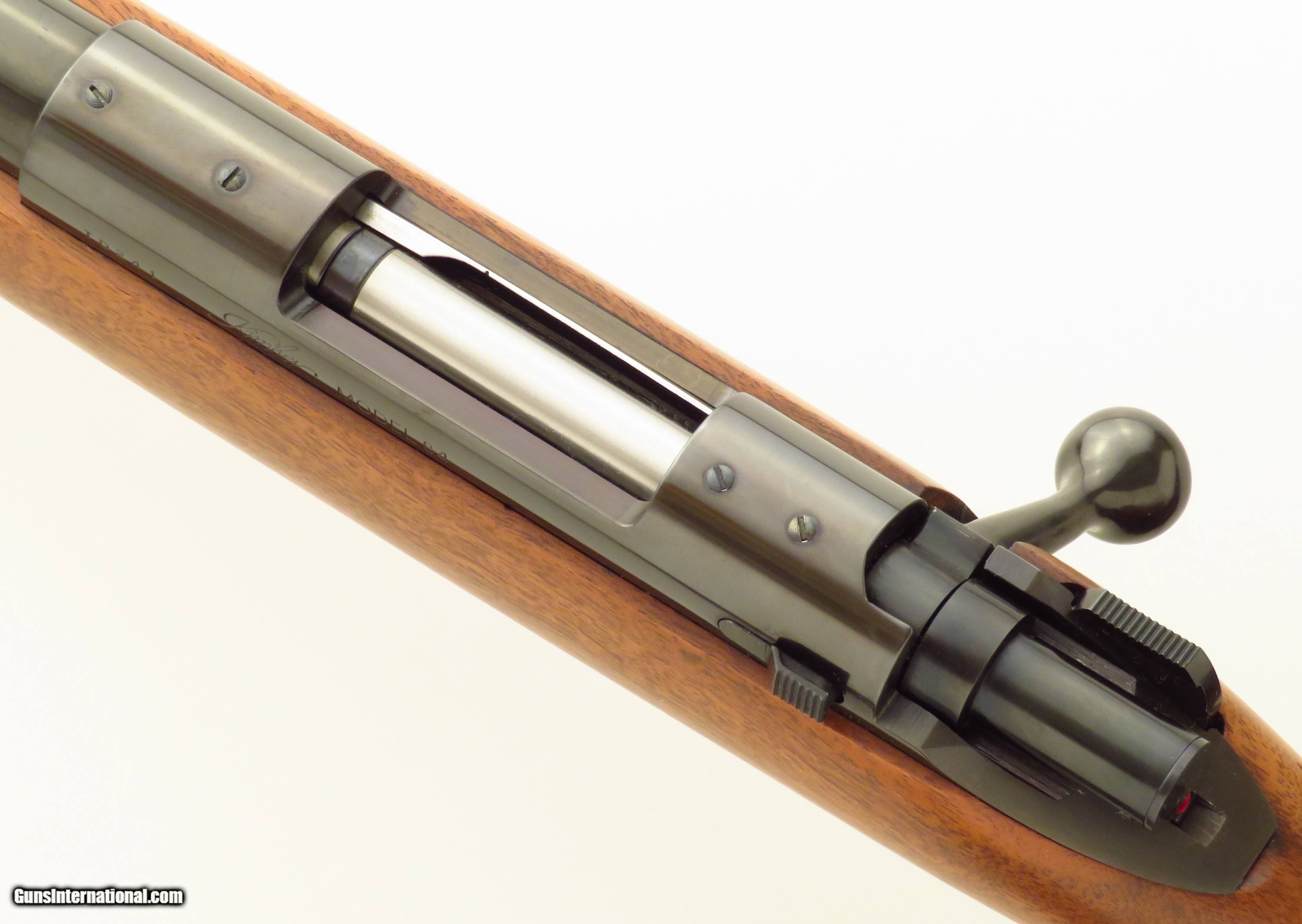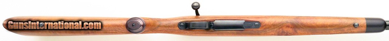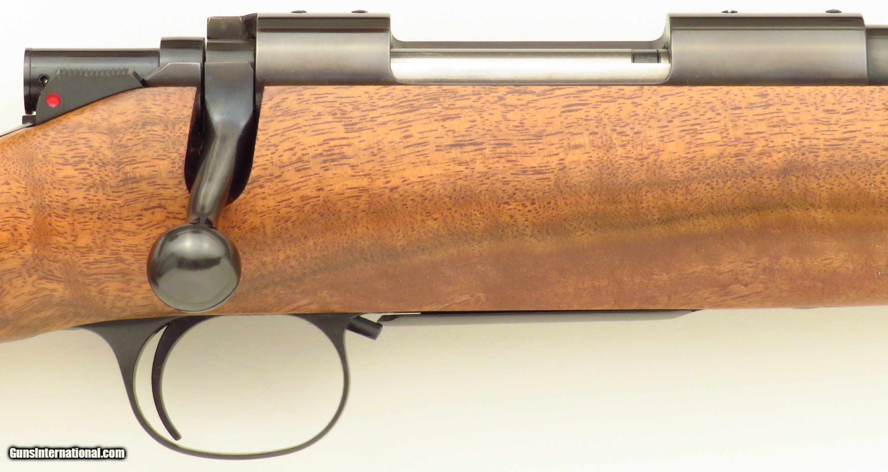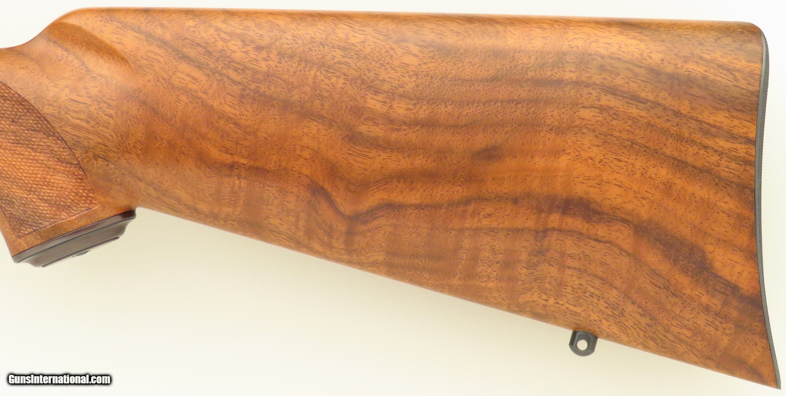 Description: Kimber of Oregon Model 84 Varmint .222 Remington. Serial TD241 has a 24-inch tapering heavy sporter barrel (.645-inch muzzle diameter), round receiver and disc safety. WOOD: The AA-grade claro walnut stock features an ebony forend tip, panel checkering, checkered steel butt plate with widow's peak, steel grip cap and sling swivel studs. The original box with correct end label, manual and warranty card is included. DIMENSIONS: Weight is 6.8 pounds and the length-of-pull is 13.65 inches. CONDITION: The bore is superb, strong and bright. Metal finish is approximately 98 percent with trace spot thinning on the receiver. Wood is approximately 99 percent. The price is firm and layaway is available. $2,500 plus shipping. SOLD Rifle Caliber: .222 Remington |