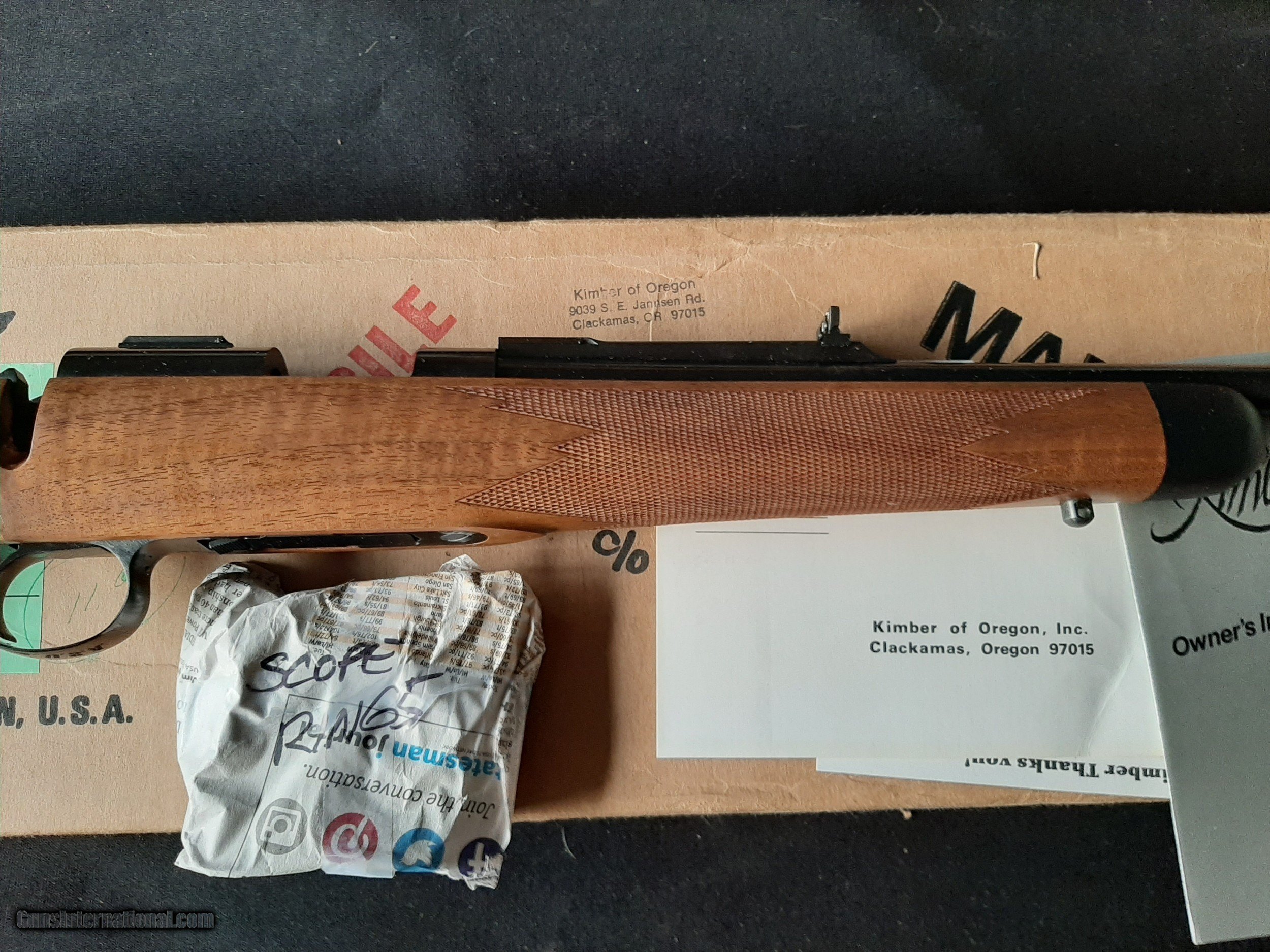 Description: Kimber of Oregon Super America 22 Hornet that is NIB. Great Wood, includes all Paperwork. Credit Cards add 3%. Shipping and Insurance is 60.00. SOLD |