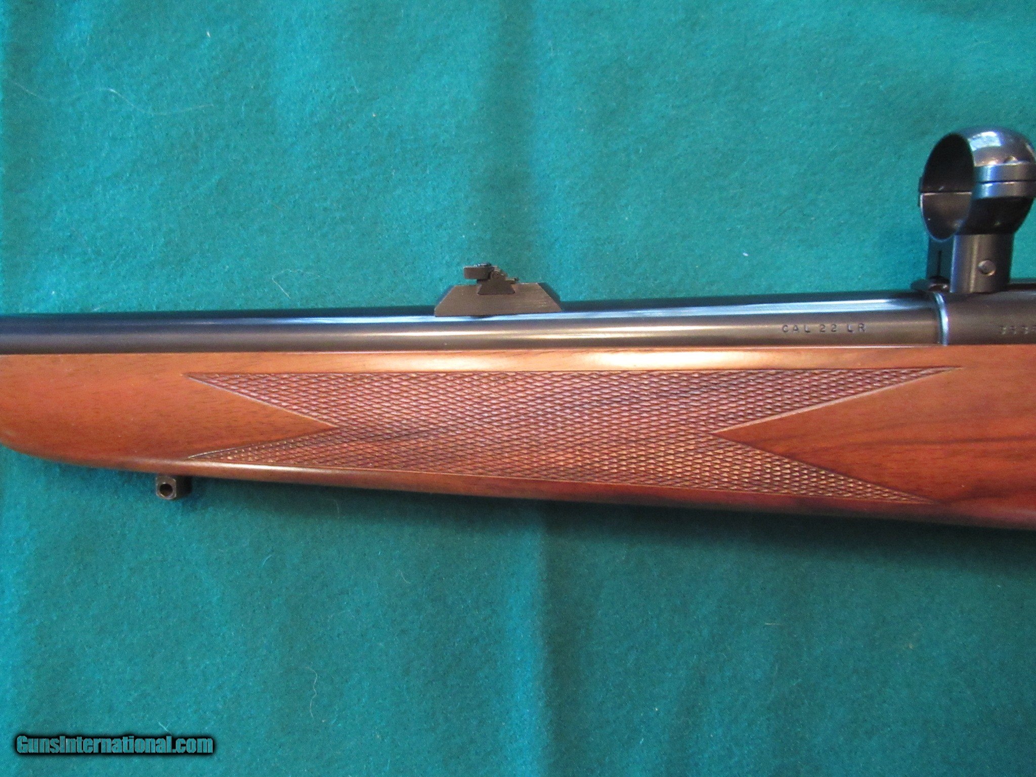Description: A Oregon Kimber model 82 in .22 LR. Near new in all respects. 99%+ gloss blue with just a tiny bit of thinning at the muzzle. The walnut stock shows no safe dings, no handling marks and has excellent checkering. The bore is like new and this rifle is accurate beyond belief. A true tack driver. It comes with 1" scope rings and the factory magazine. Fully checkered and blued steel buttplate and a steel grip cap. All in all this is a great performing rifle as well as having a big game rifle look. It will make a super addition to your collection. If you have any questions, call Raff at 760 497 7836 for more information and thank you for looking! SALE PENDING. SOLD Rifle Caliber: .22 Long Rifle Manufacturer: kimber - Oregon Model: 82 Serial Number: 3538 Barrel Length: 22 Condition: Excellent Metal Condition: 99% Wood Condition: Excellent Bore Condition: Perfect Finish: Gloss Blue Sights: Fold rear/Blade front Item Location: Arizona |