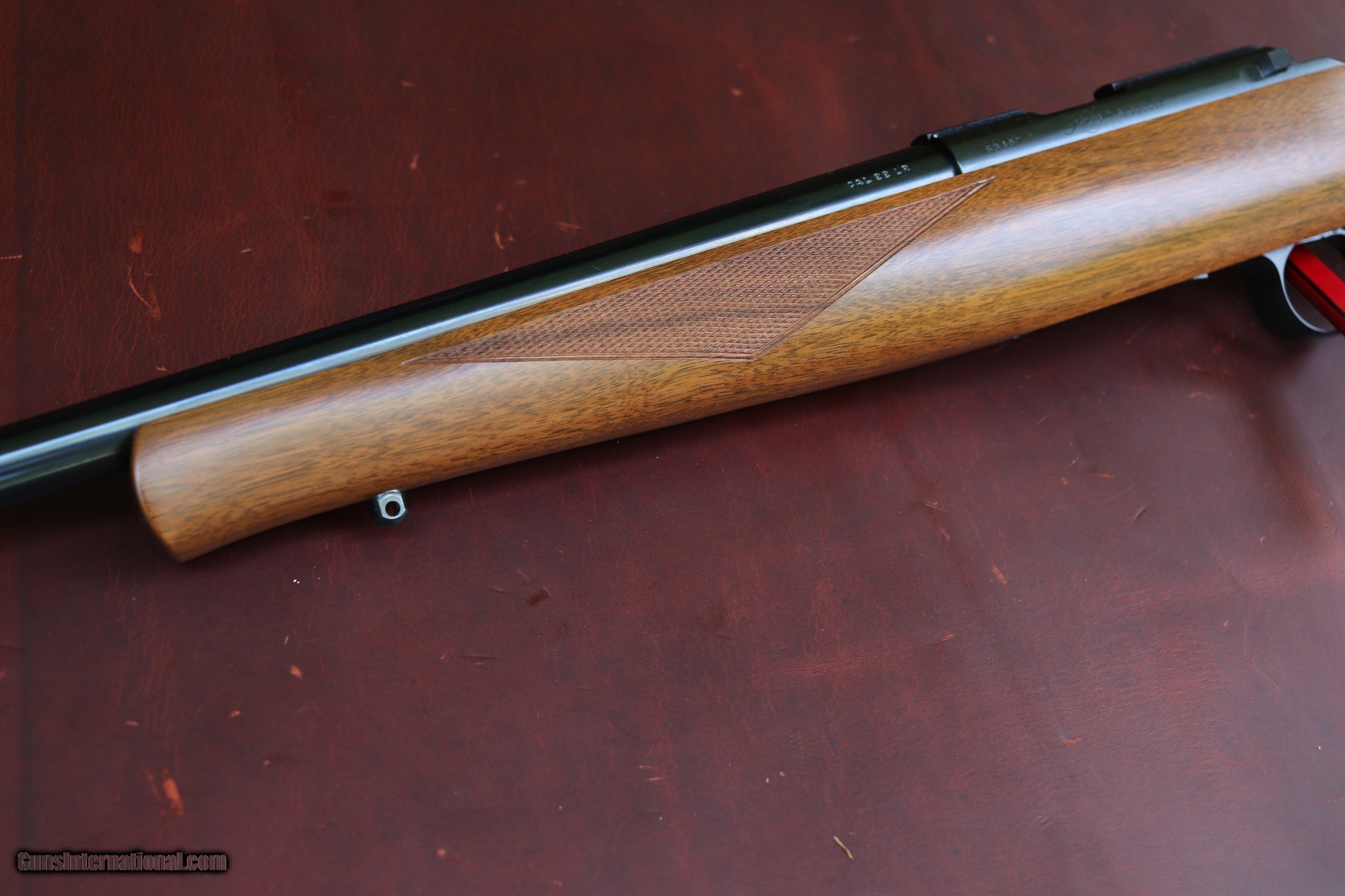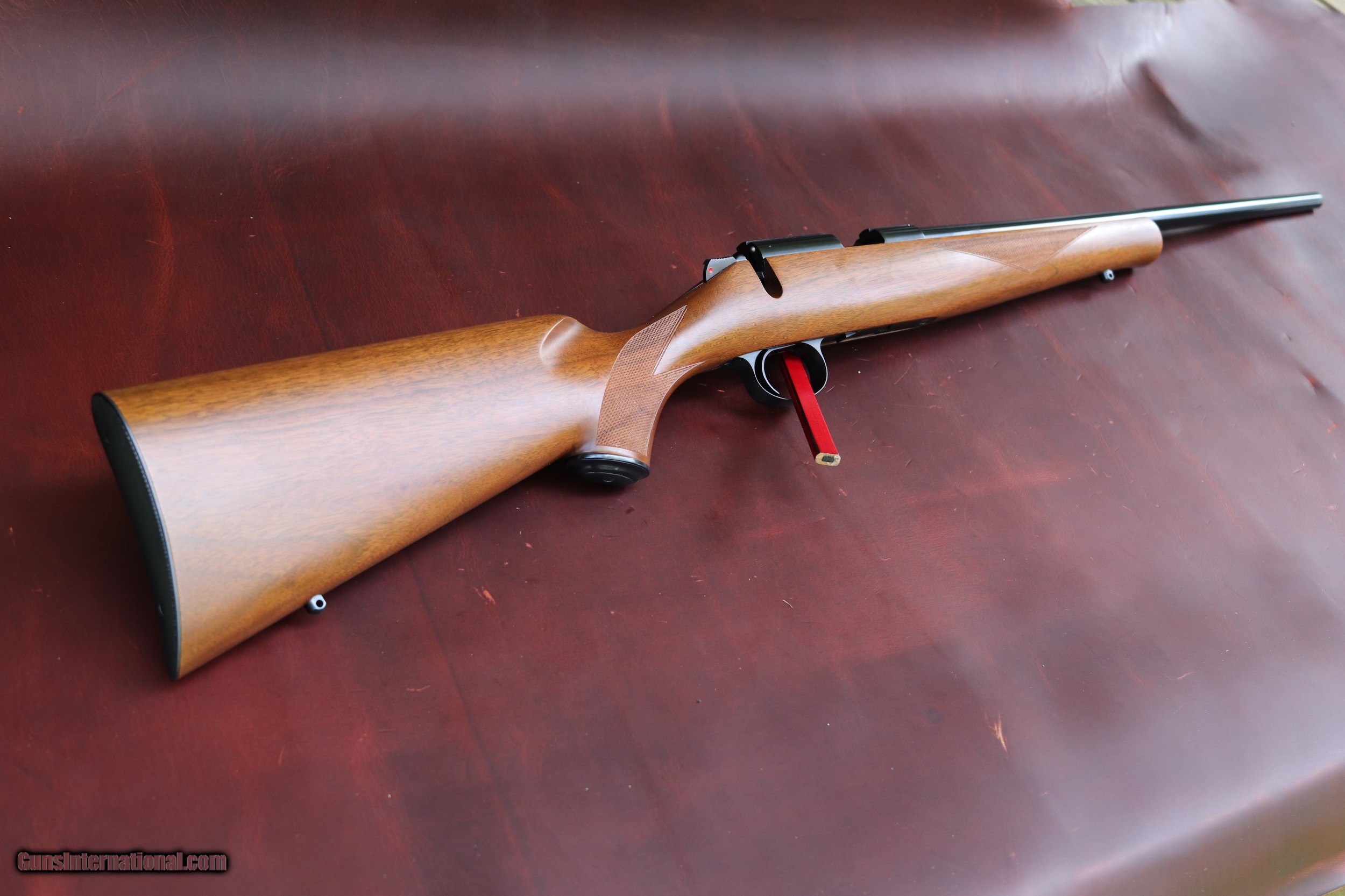 Description: COLLECTOR'S GRADE KIMBER OF OREGON MODEL 82 ISSUED IN THE MINI CLASSIC VARIATION, CHAMBERED IN .22LR. THE MINI CLASSIC IS SIMILAR TO THE "CUB" HOWEVER HAS THE SCHNABEL LIKE FOREND, A TWO PANEL CHECKERING PATTERN, AND A CHECKERED, METAL BUTT PLATE. THIS EXAMPLE IS SLAP %$#$ 100% NIB WITH NUMEROUS AND CAREFUL INSPECTIONS FINDING NO BLEMISHES ANYWHERE. THIS GUN IS NEW AND DOES NOT SHOW SIGNS OF ACTION WEAR OF HAVING BEEN FIRED SINCE LEAVING OREGON. COMES WITH THE PROPER BOX, TEST TARGET SERIAL NUMBERED TO THE GUN, AS WELL AS THE CORRECT END LABEL SERIAL NUMBERED TO THE GUN, AS WELL AS THE CORRECT BOLT HANDLE SERIAL NUMBERED TO THE GUN. THE INSURED SHIPPING IS A FLAT $50, WHERE SHIPMENT COMES FROM A NON-FFL, AND SHIPS TO YOUR FFL, WHERE THE SERVICES OF AN FFL ON MY END IS AVAILABLE FOR HIRE FOR A RATE OF $30 ADDITIONAL. SHIPPING TO THE EXTENDED FAMILY IS PERFECTLY FINE (CA, OR, NV, WA, HI AND AK), HOWEVER THE INSURED SHIPPING WILL BE $70. A THREE DAY, NO FIRING OR DISASSEMBLING PERIOD IS RECOGNIZED, WHERE THE BUYER WILL BE HELD TO PAYING A 10% HANDLING AND RELIST FEE, PLUS THE RETURN INSURED SHIPPING. PERSONAL CHECKS, MONEY ORDERS, OR CERTIFIED CHECKS ARE REQUESTED. SOLD |