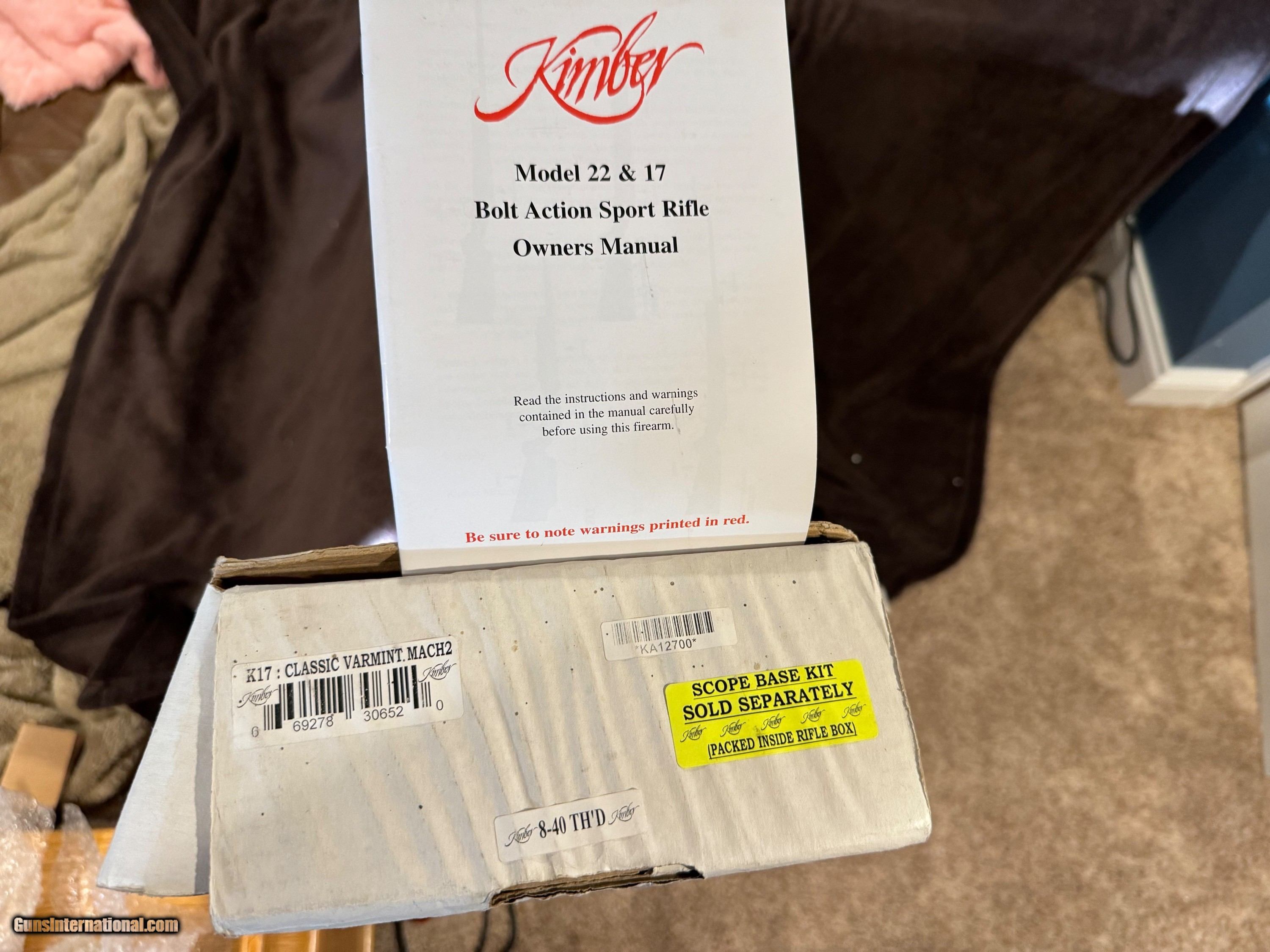 Boxed Kimber K17 Classic Varmint awesome wood in RARE .17 mach 2 with