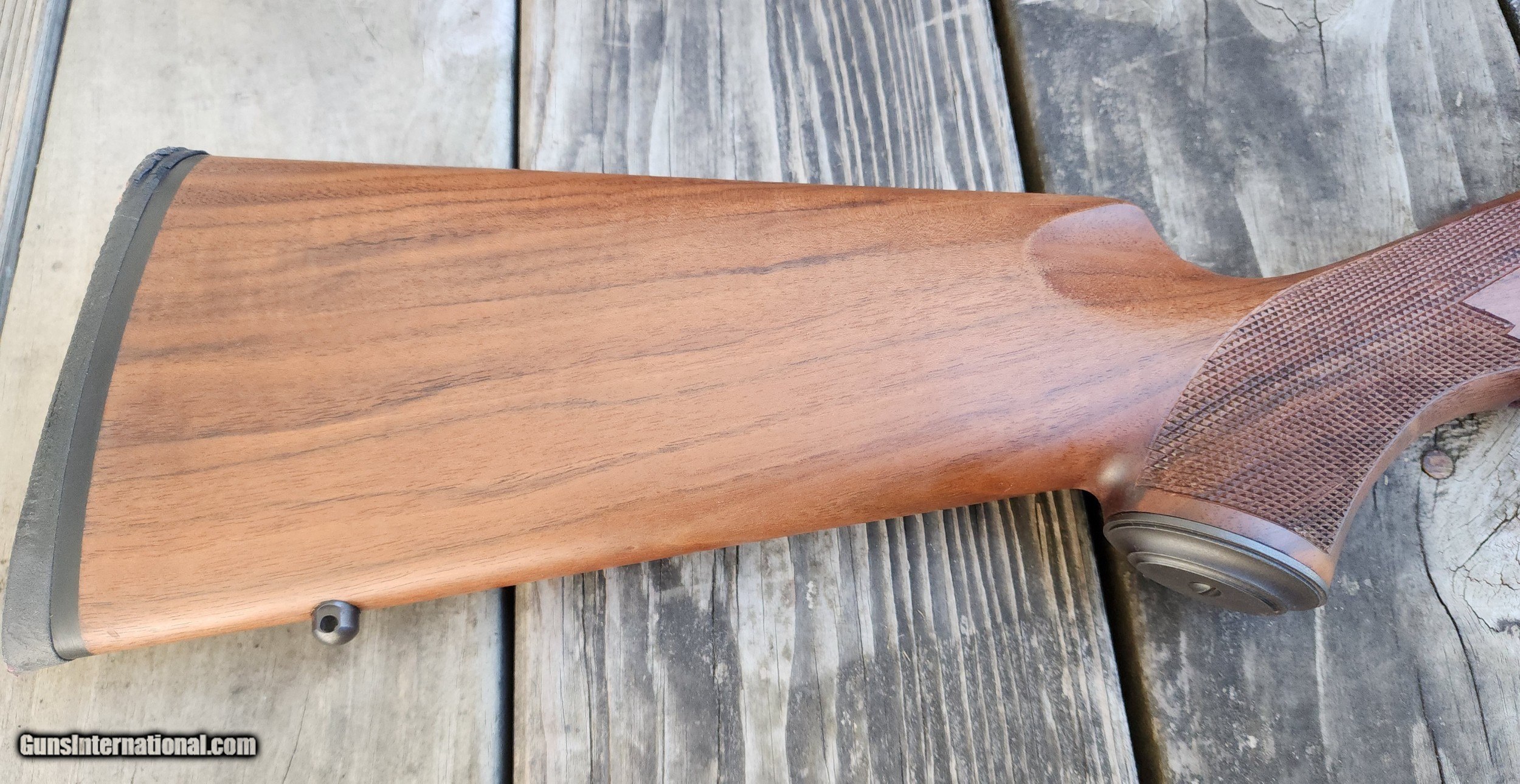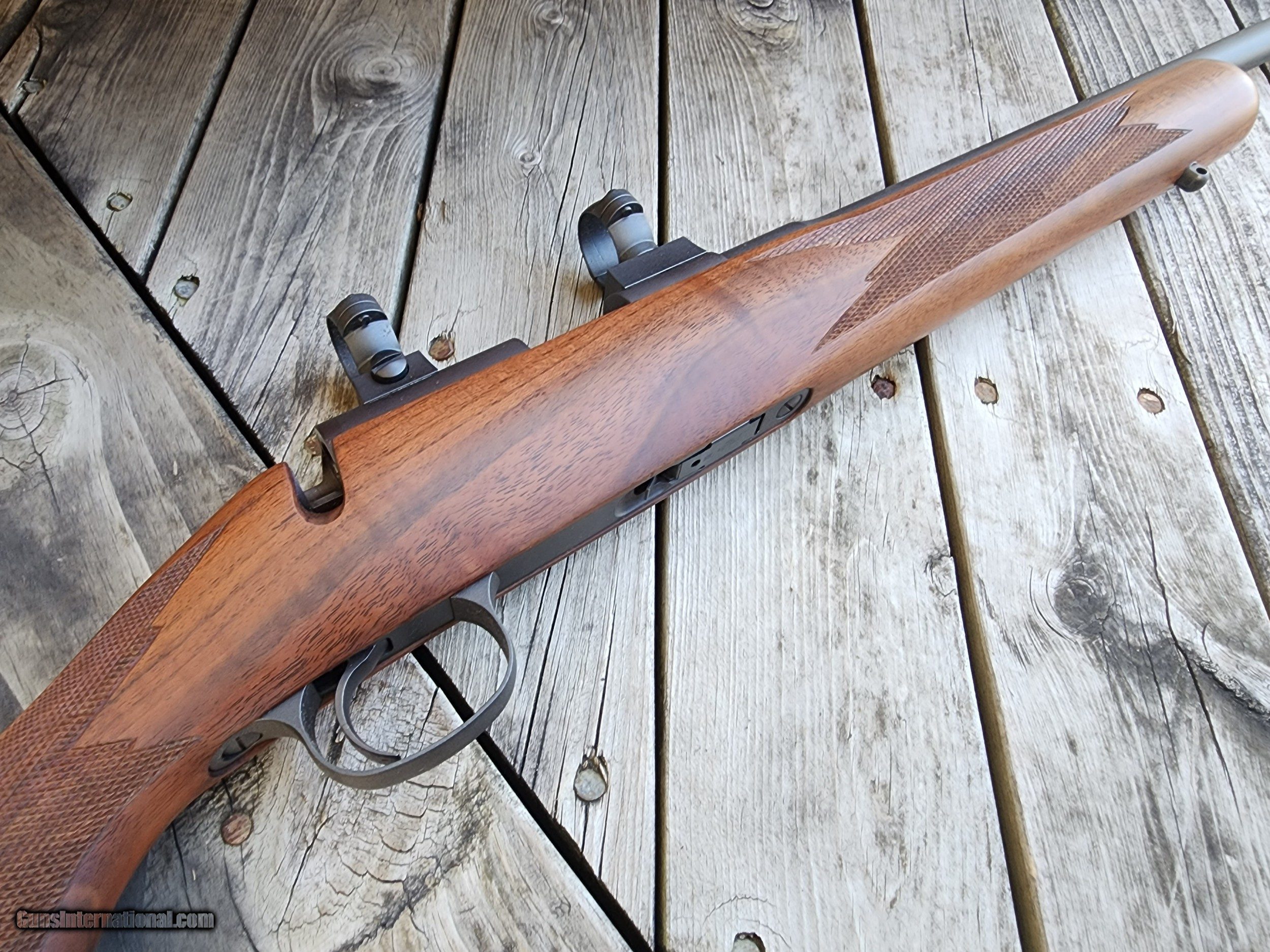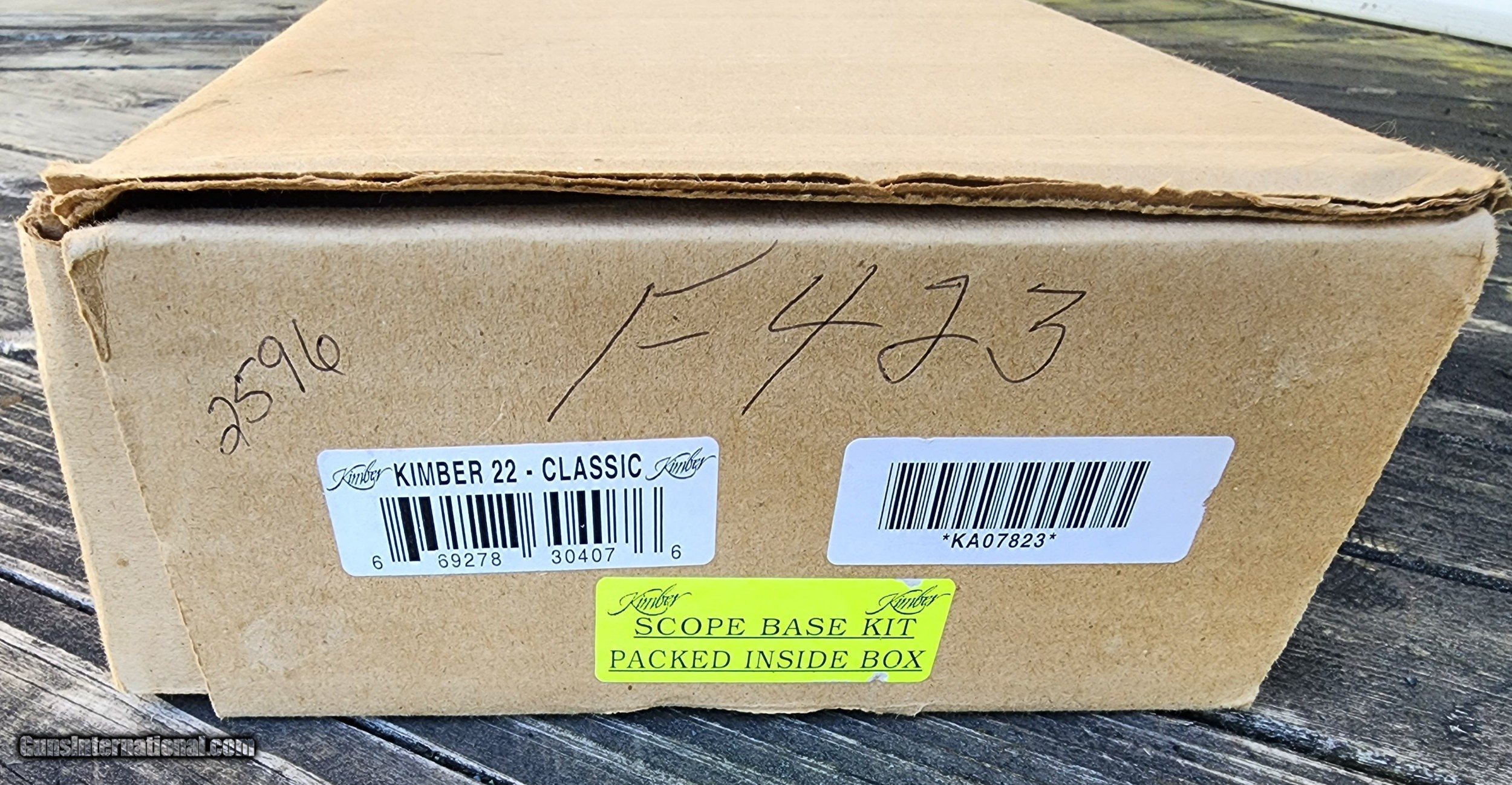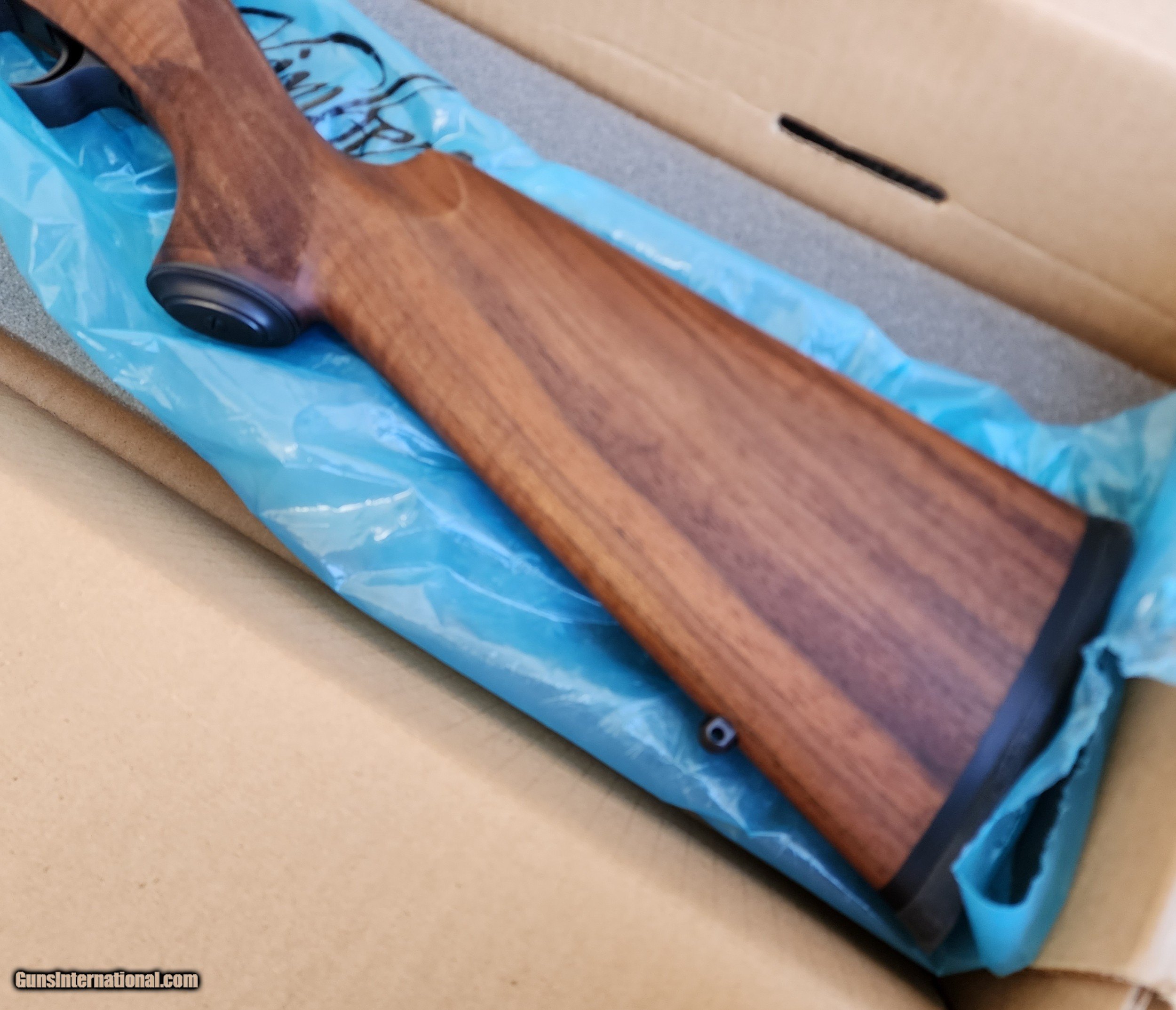 Description: This Kimber .22 is unfired and comes in its original box. It has a beautiful piece of walnut on it! It's been standing in a safe for years, the original butt pad has flattened somewhat and there is a small dime sized area of slight discoloration on the barrel (pictured). Please see the pictures for the exact condition, and the beautiful wood grain SOLD Rifle Caliber: .22 Long Rifle Manufacturer: Kimber Model: 22 |