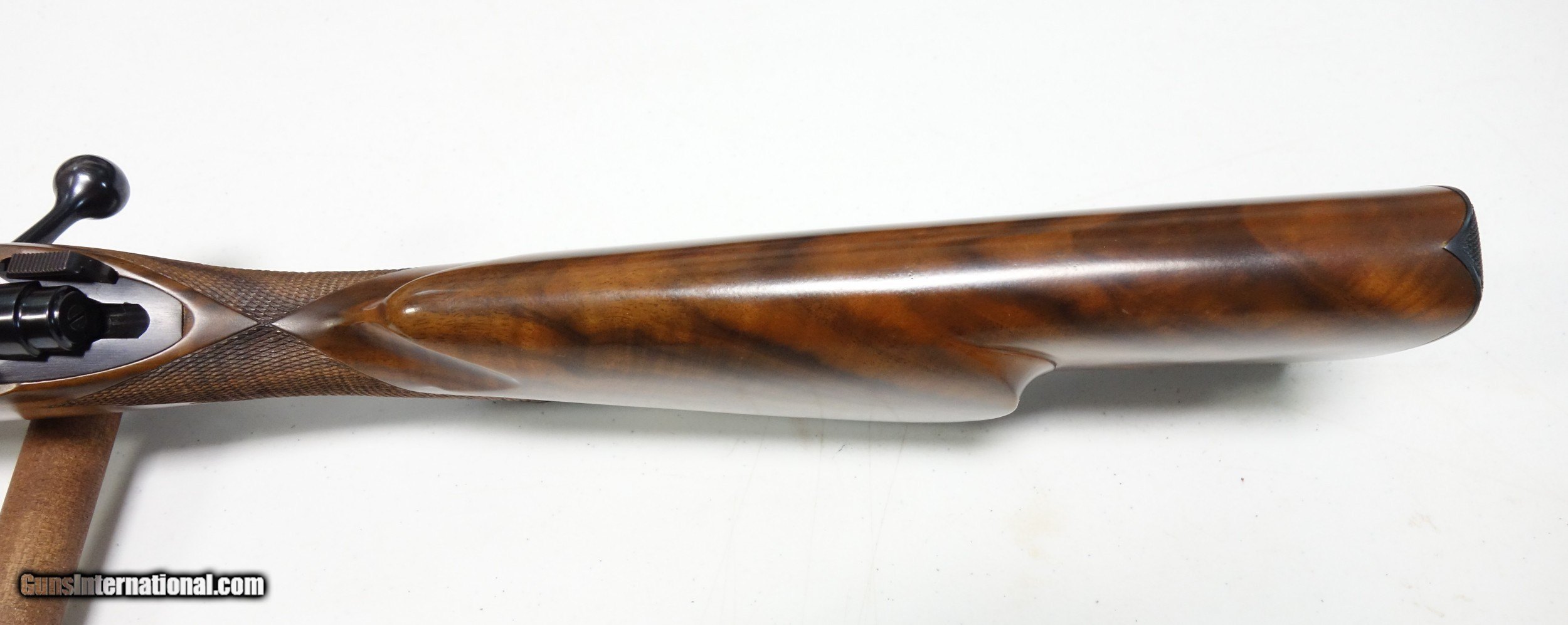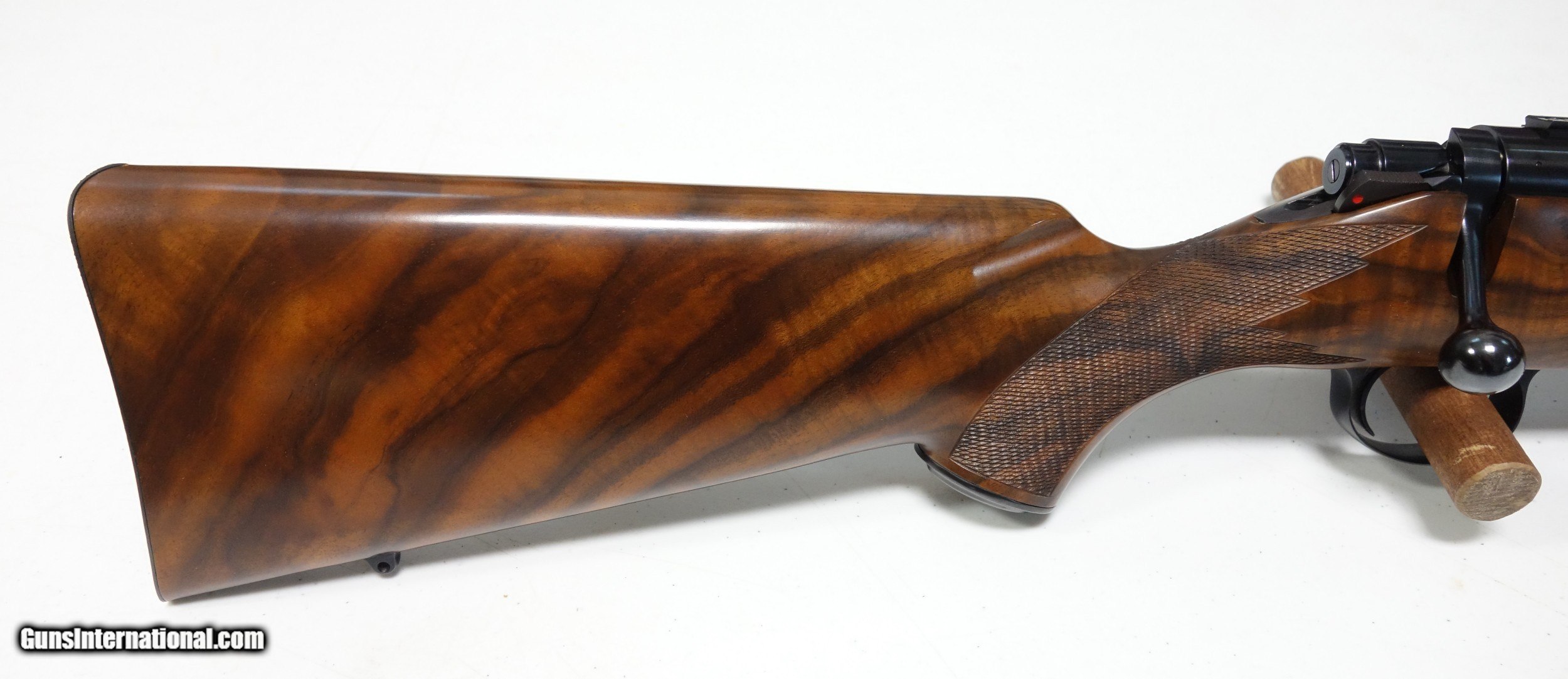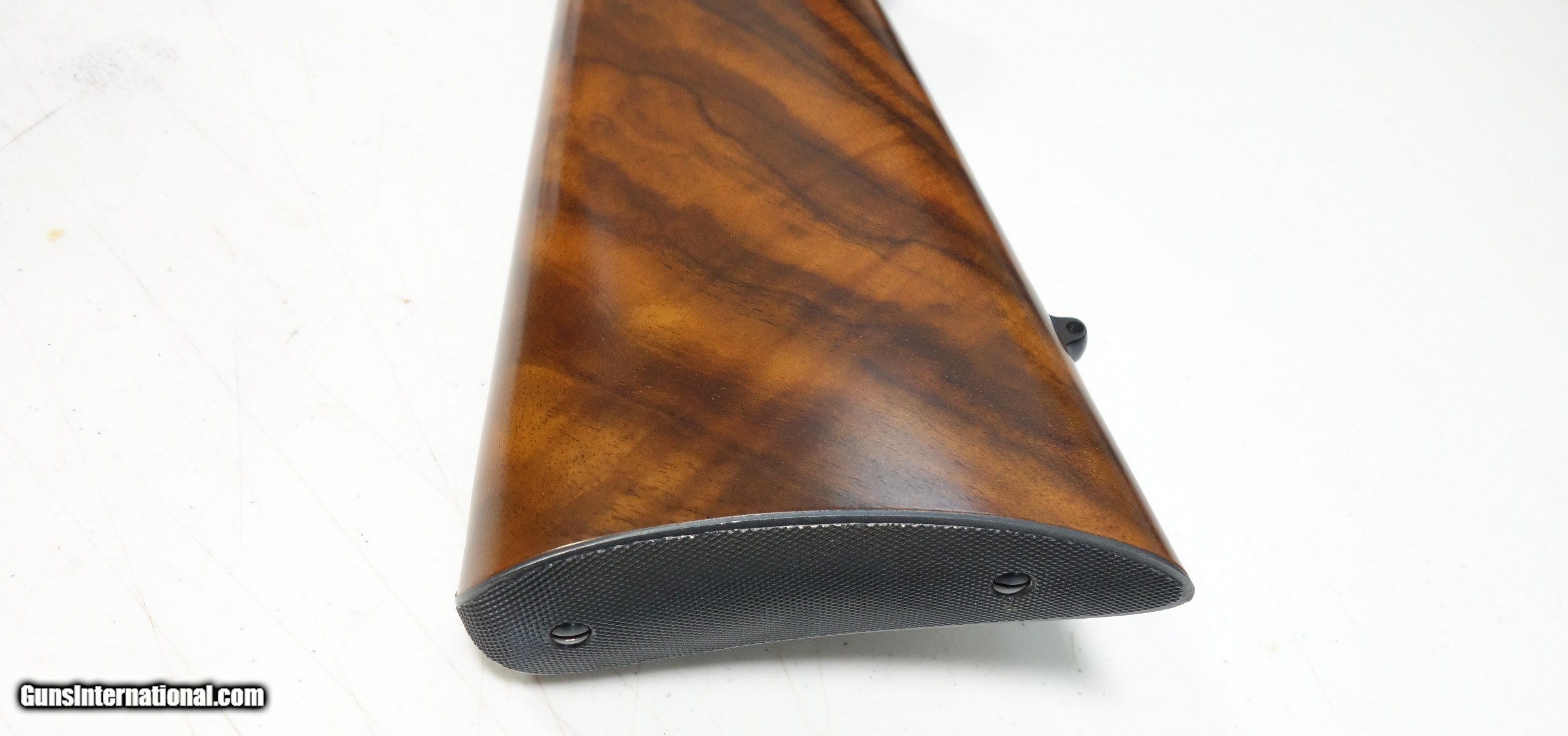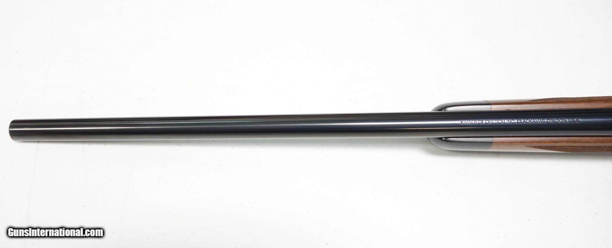 Description: Gorgeous Kimber 82 Super America with an incrediblely figured piece of wood. Mint condition with original box, believed to be unfired. S/N SA1282B made in Clackamas, Oregon. 22" barrel. Thumb rocker safety. Original magazine. Bore and mechanics are as new. Supreme quality throughout! SOLD |