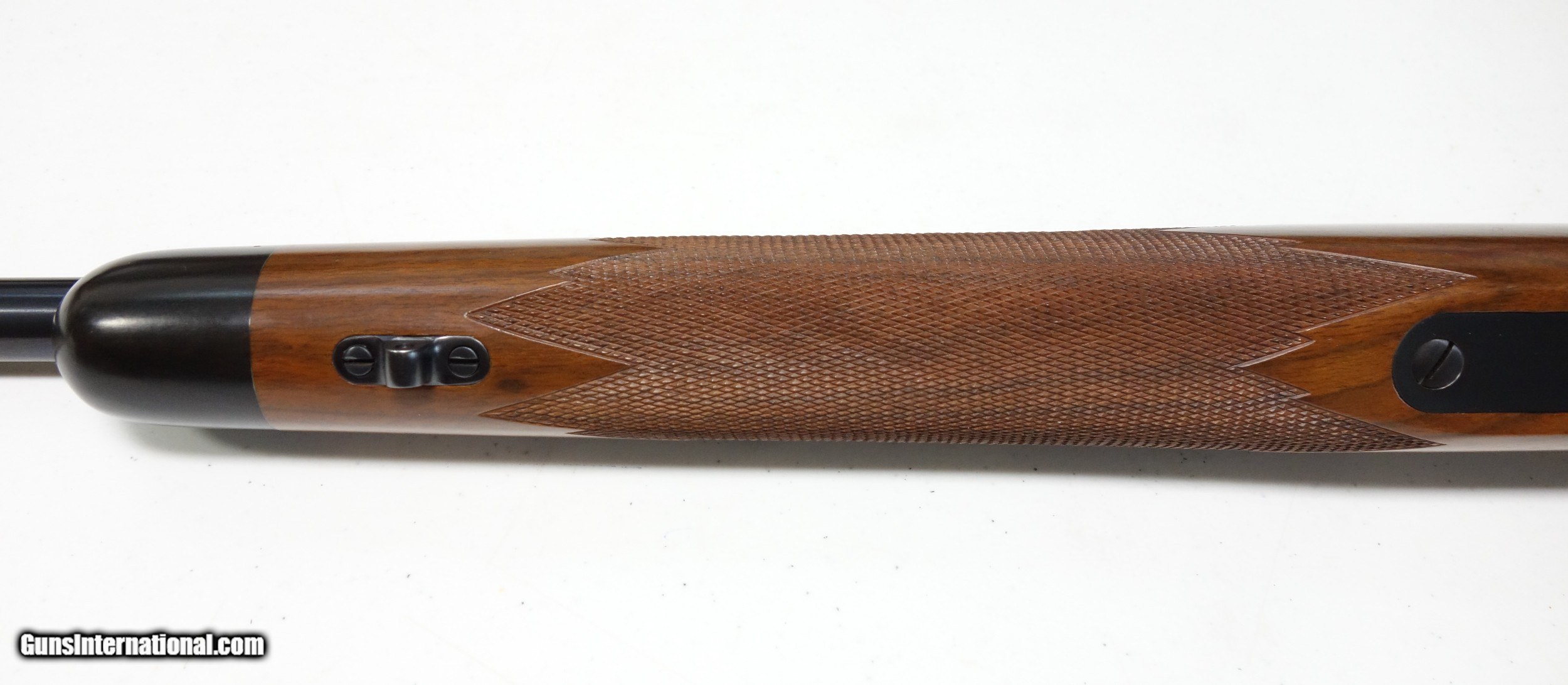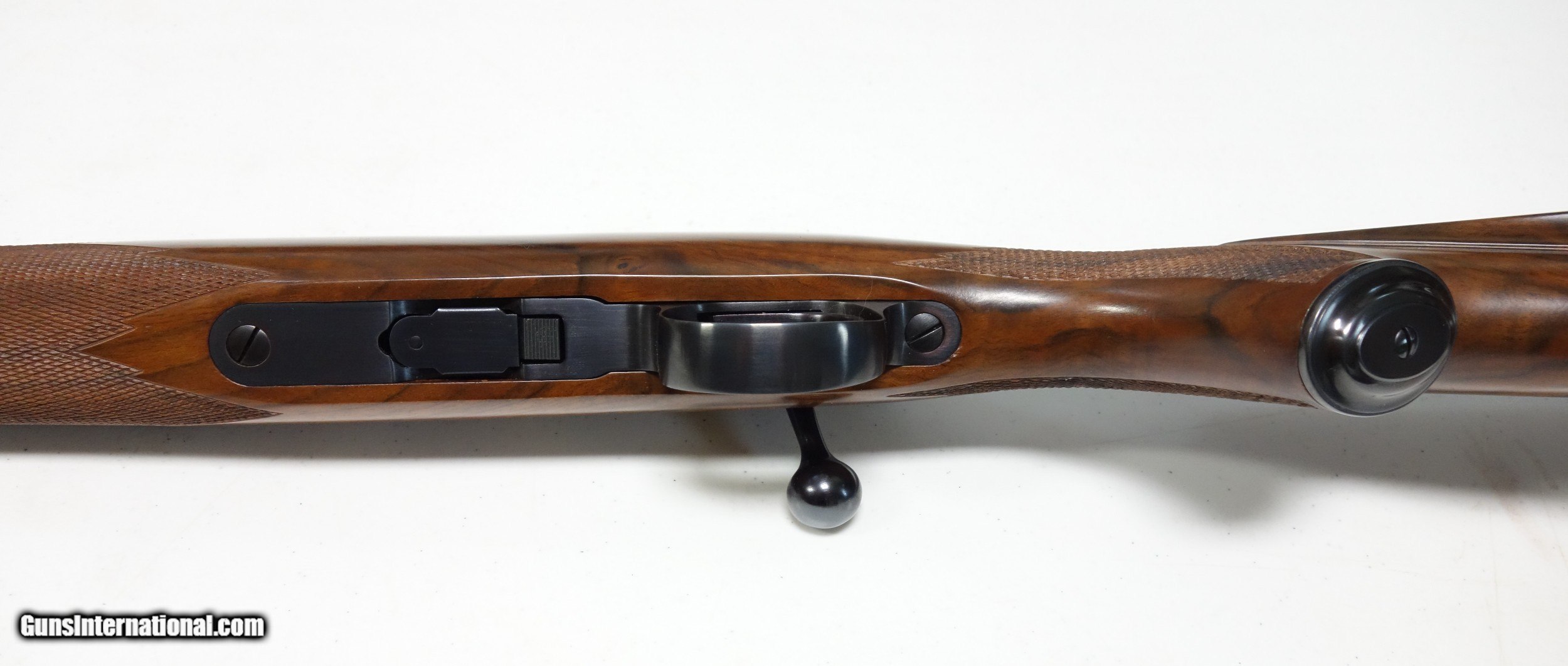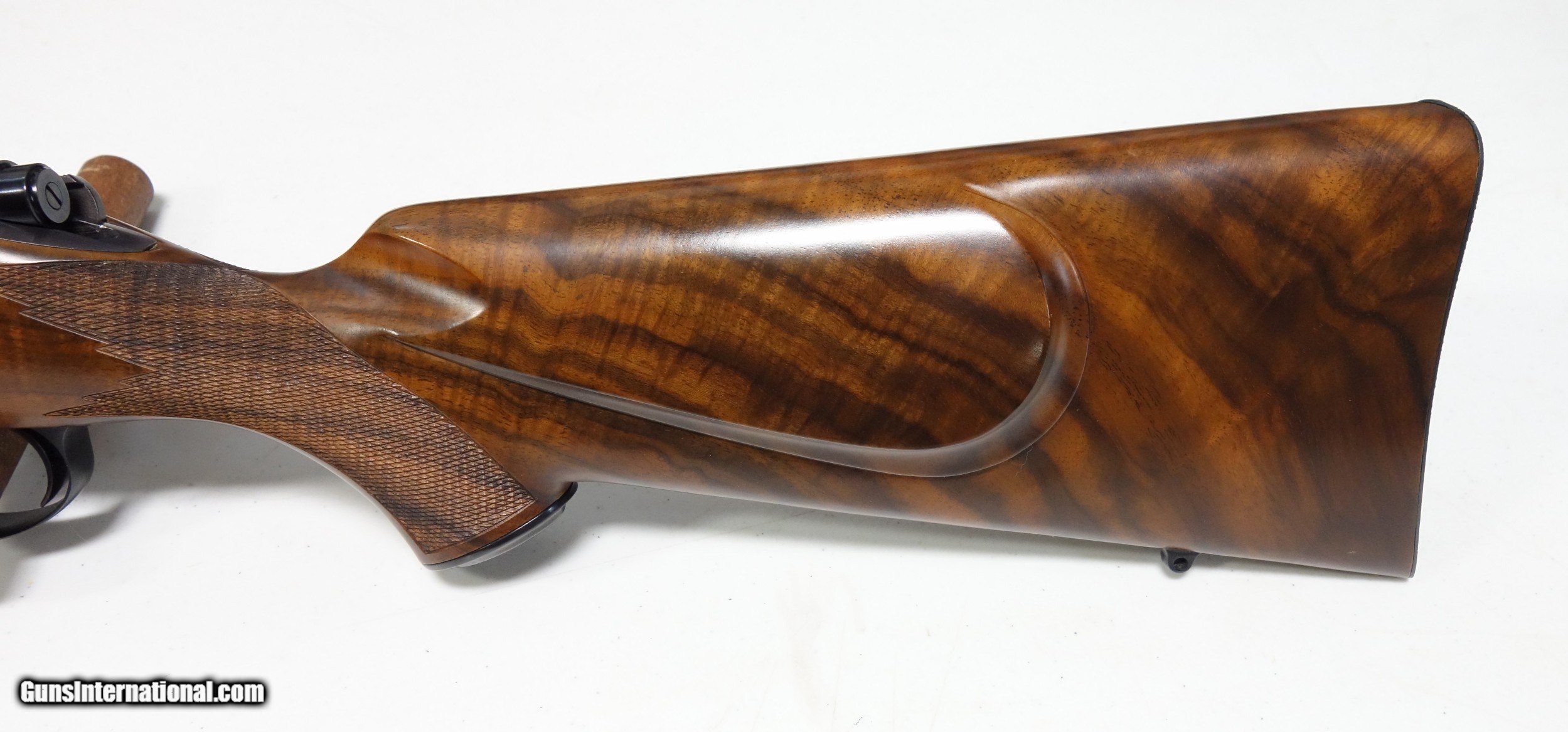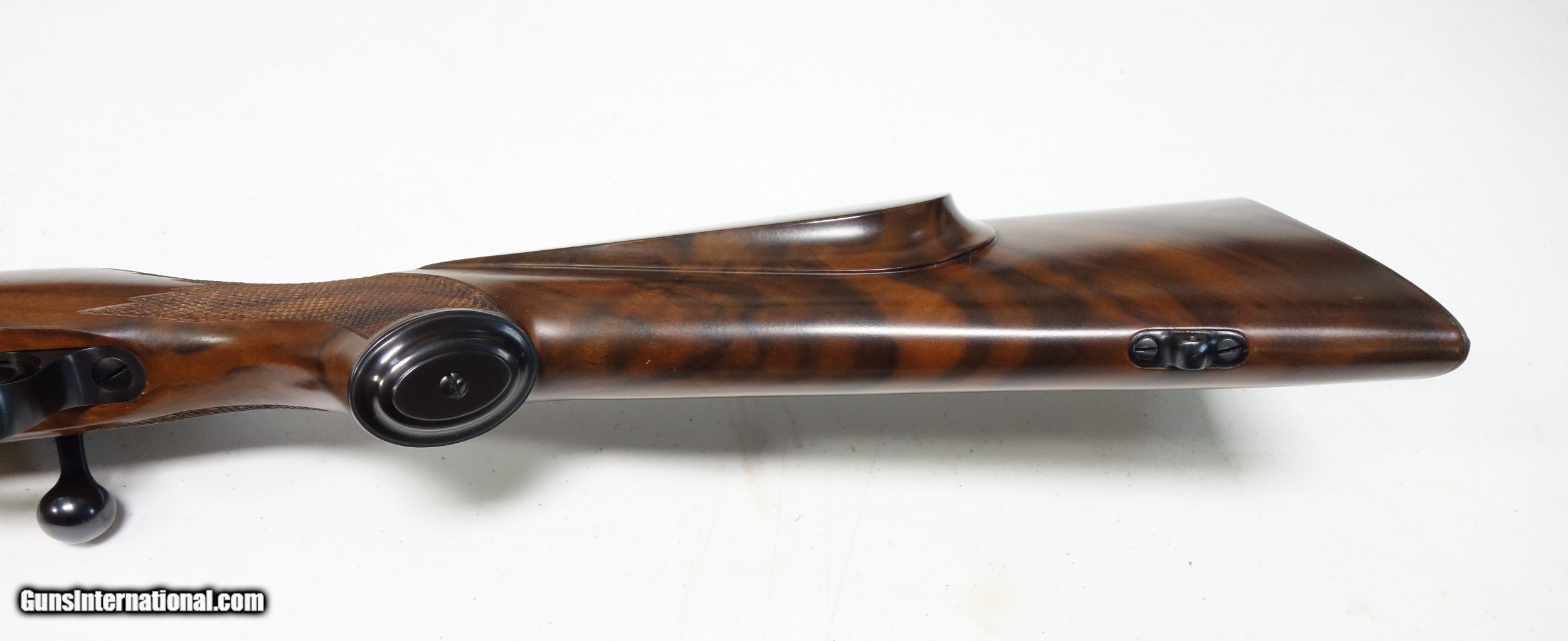 Description: Gorgeous Kimber 82 Super America with an incrediblely figured piece of wood. Mint condition with original box, believed to be unfired. S/N SA1282B made in Clackamas, Oregon. 22" barrel. Thumb rocker safety. Original magazine. Bore and mechanics are as new. Supreme quality throughout! SOLD |