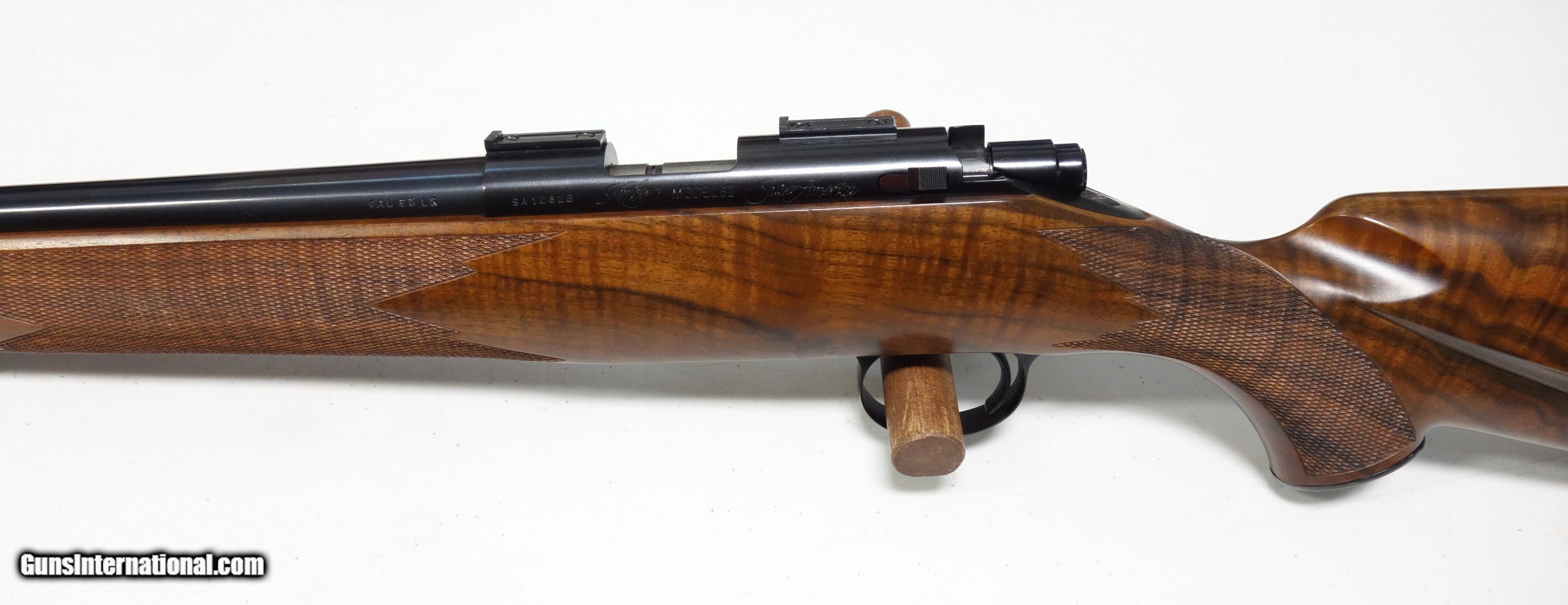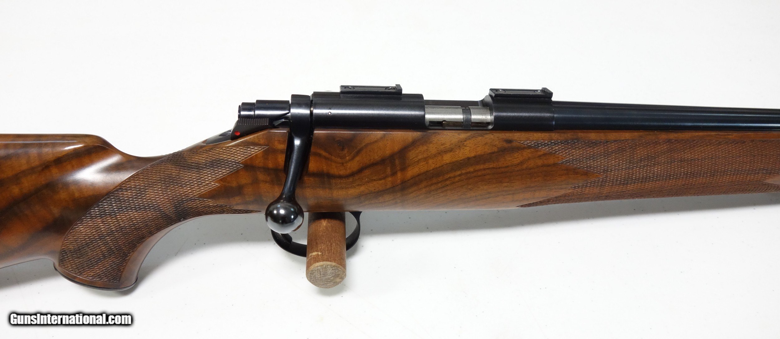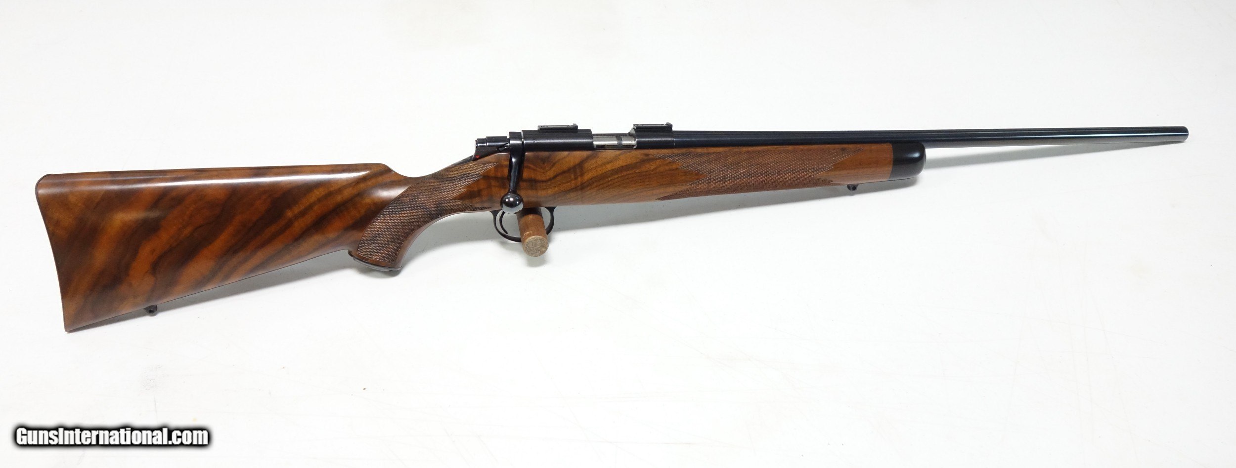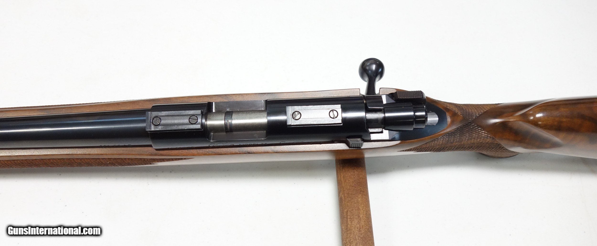 Description: Gorgeous Kimber 82 Super America with an incrediblely figured piece of wood. Mint condition with original box, believed to be unfired. S/N SA1282B made in Clackamas, Oregon. 22" barrel. Thumb rocker safety. Original magazine. Bore and mechanics are as new. Supreme quality throughout! SOLD |