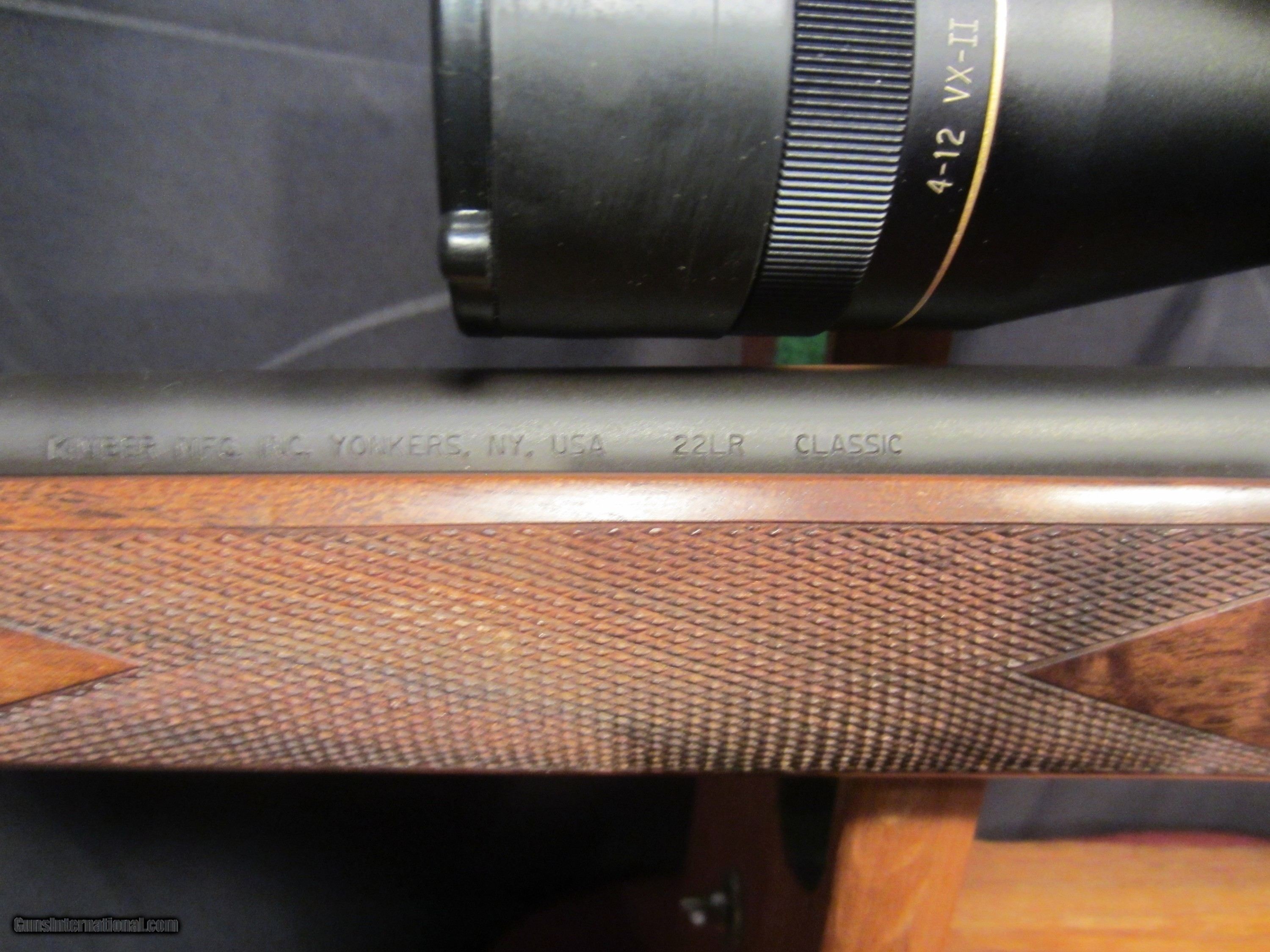 Description: KIMBER CLASSIC 22 L.R WITH LEUPOLD 4 TO 12 POWER VARX2 RIFLE MADE IN YONKERS NEW YORK CONDITION MINT. NO MARKS ON WOOD OR METAL. WANT TO PURCHASE CALL SHOP 716-941-39461 SOLD |
