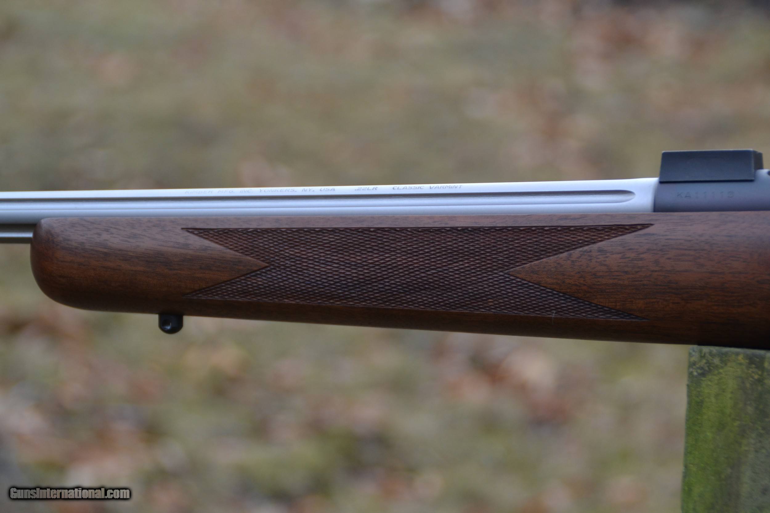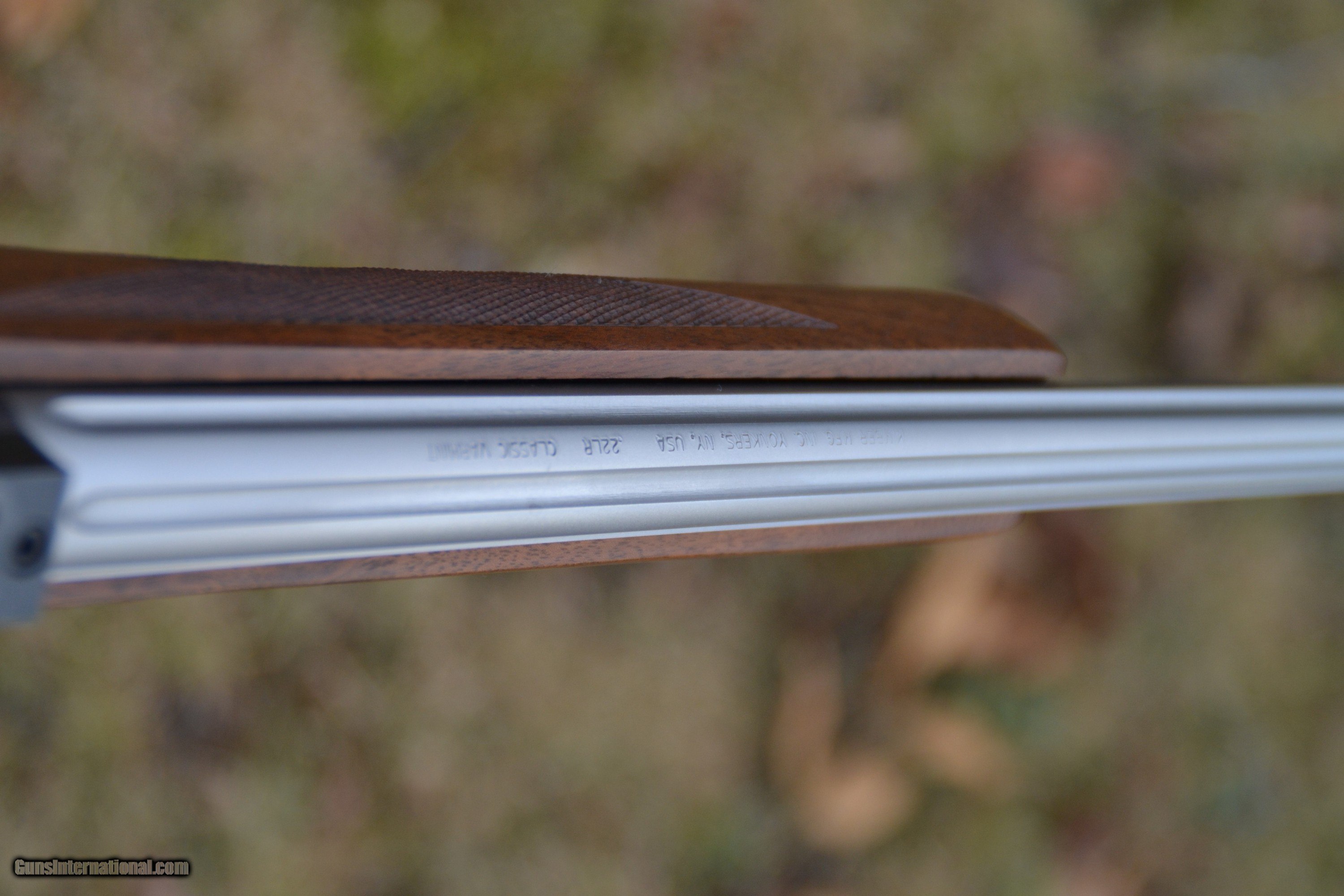 Description: A very nice example of the New York Kimber Classic Varmint in .22 L.R. with box and original factory bases. SOLD |