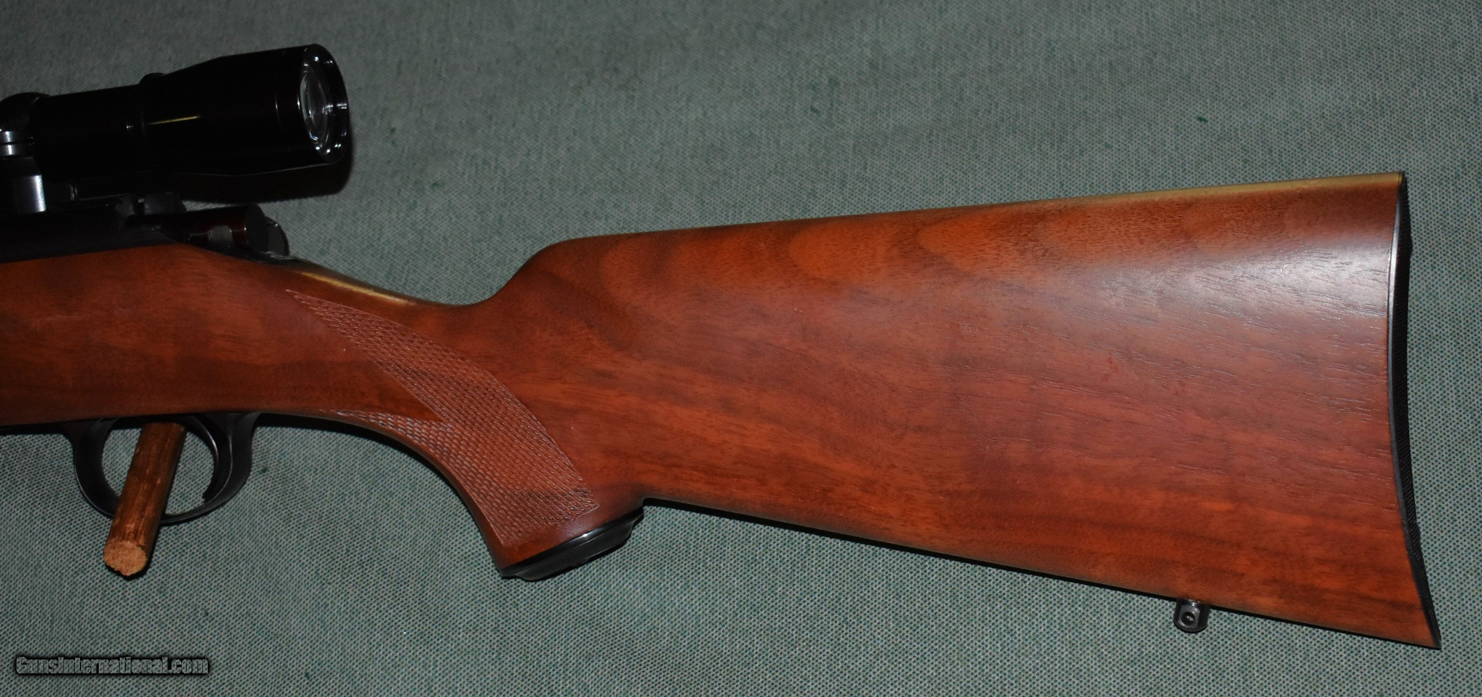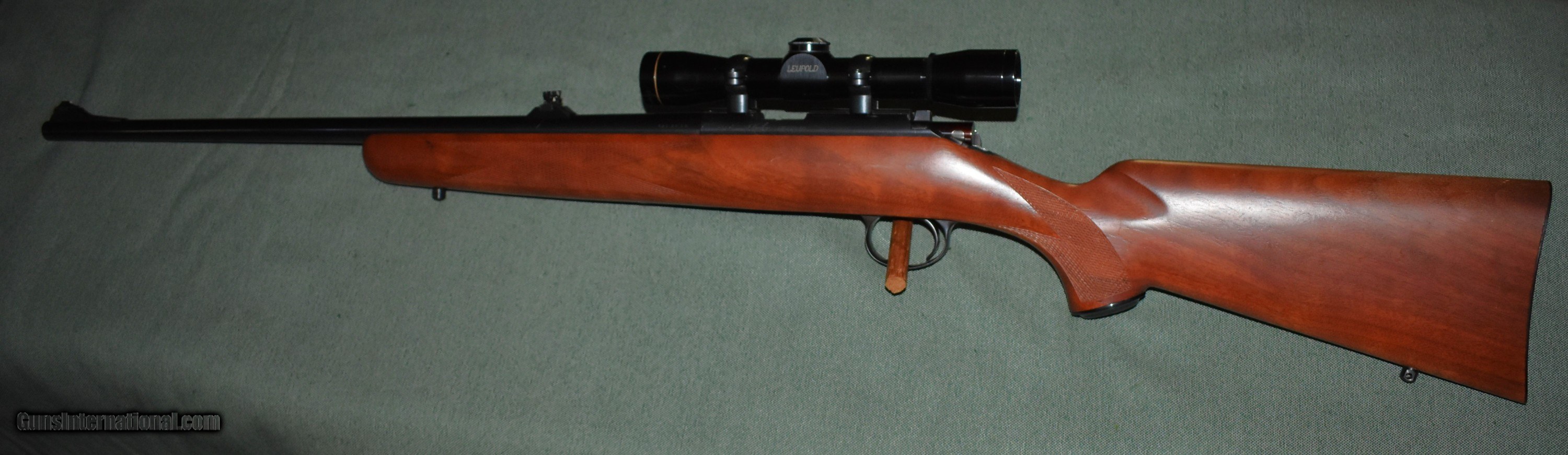Description: Kimber of Oregon model 82 in 22 long rifle. This gun is in outstanding original condition.It retains 99%of the original blue and wood finish. The bore is mint. The rifle comes with a leupold 4X rimfire scope installed and sighted in. A fine shooter with a great trigger. It comes with 2 magazines. Price includes shipping to your FFL. SOLD Rifle Caliber: .22 Long Rifle Manufacturer: Kimber of Oregon Model: 82 Serial Number: 4550 Barrel Length: 22 Condition: mint Metal Condition: mint Wood Condition: mint Bore Condition: mint Action: Bolt Butt Pad: factory steel butt |