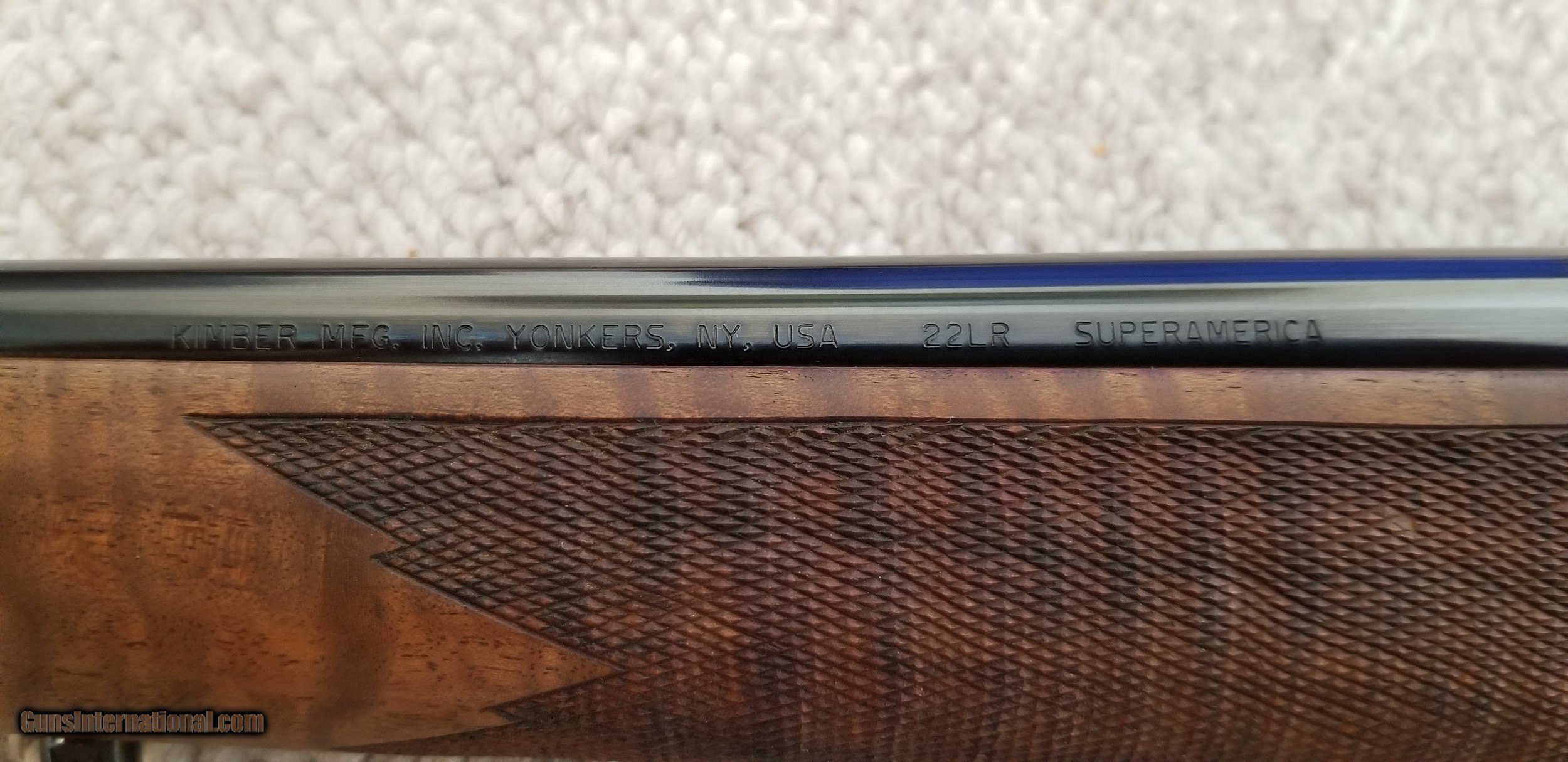 Description: Kimber Super America 22lr made in Yonkers NY Mint condition. 22" bbl. Beautiful wood. Comes with 3 high polish Super America magazines. s/n KA05187 SOLD |