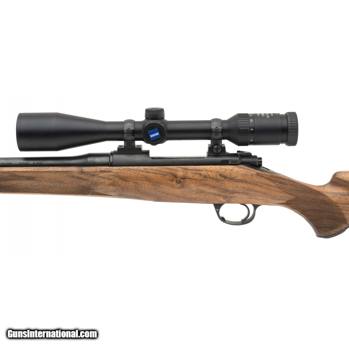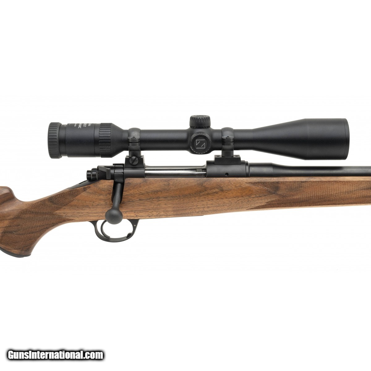 SN: KW02632. Modern production .300 Winchester Short Magnum with 24"" barrel. Comes with mounted Zeiss Conquest 4.5-14x44 scope. Satin-finish checkered walnut stock is in great condition with one handling mark near the magazine. Metal is excellent.