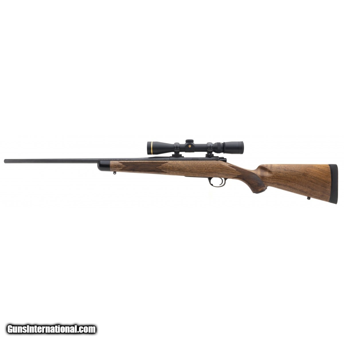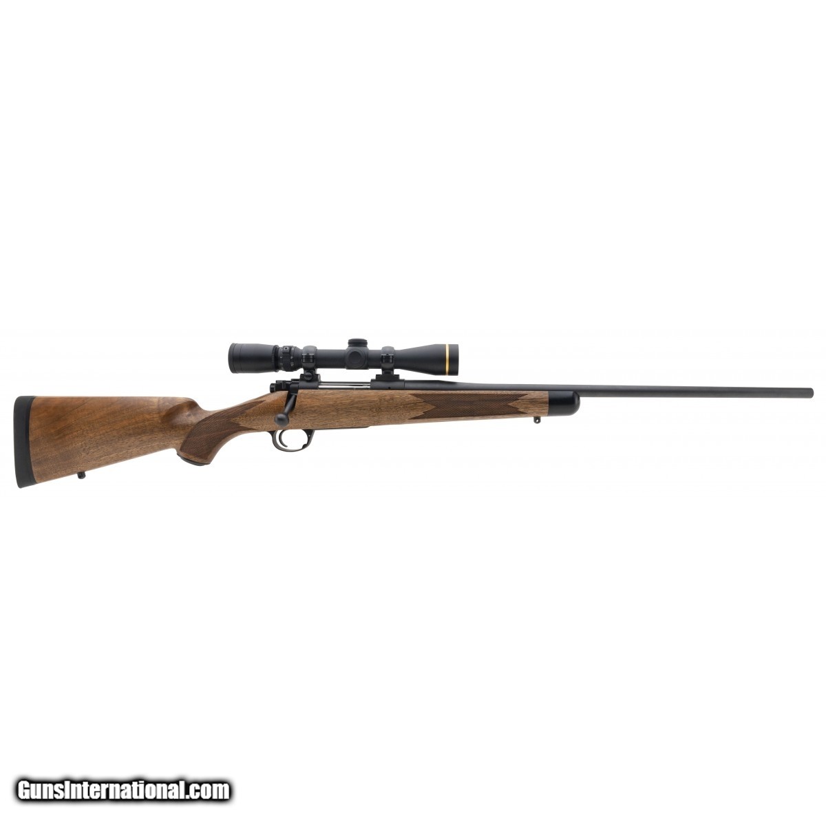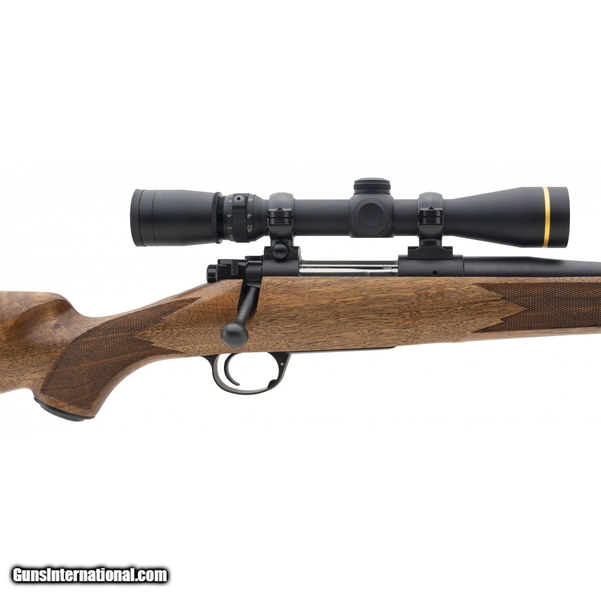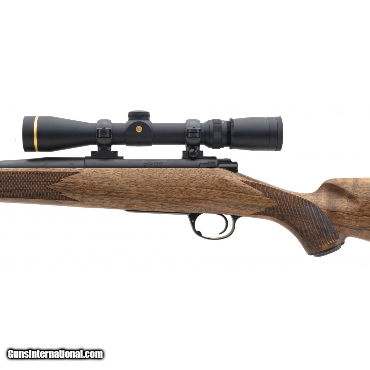 SN: KM34979. Deluxe bolt action rifle with figured walnut stock. Has a Leupold 2.5x8 scope. Excellent condition.