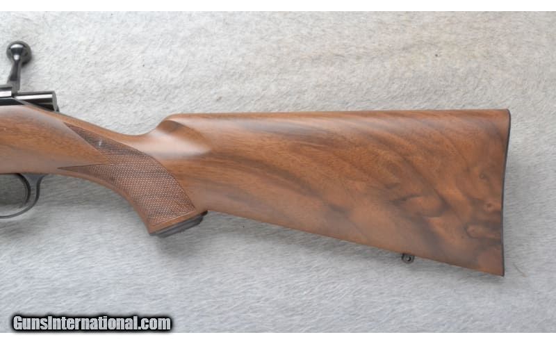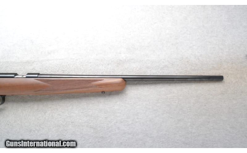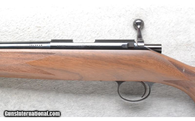 Description: This Kimber Model 82 is a right hand bolt action rifle in .22 Long Rifle Cal. It has a 22 inch barrel. It has an integral scope mount base. No iron sights. The butt stock is a checkered grip walnut pistol grip with a black steel cap. The forearm is a checkered grip walnut. .22 Long Rifle SOLD Chambers: 5 shot magazine. Metal Condition: Excellent. Wood Condition: Excellent. Bore Condition: Excellent. Barrels: 22 inch. Stock Dimensions: LOP 13 5/8 inches. Fore End: Checkered grip walnut. Butt Pad: Checkered steel plate. Weight: 6 Lb. 6 Oz. Sights: Integral scope mount base. No iron sights. Item Location: Richfield, WI |