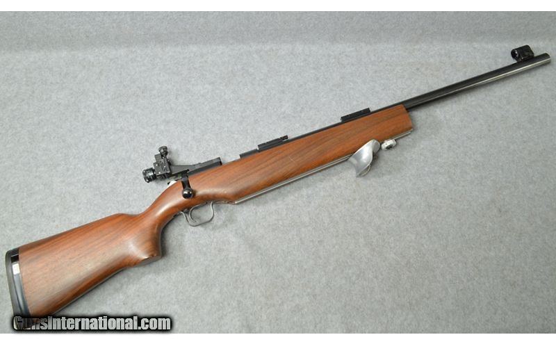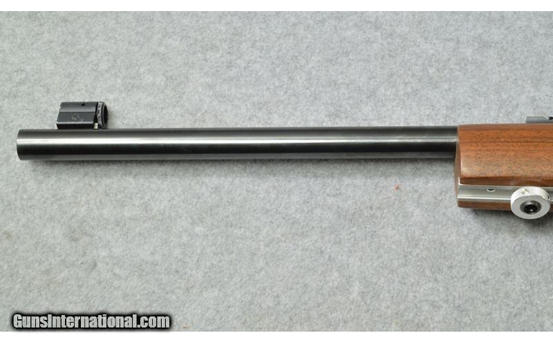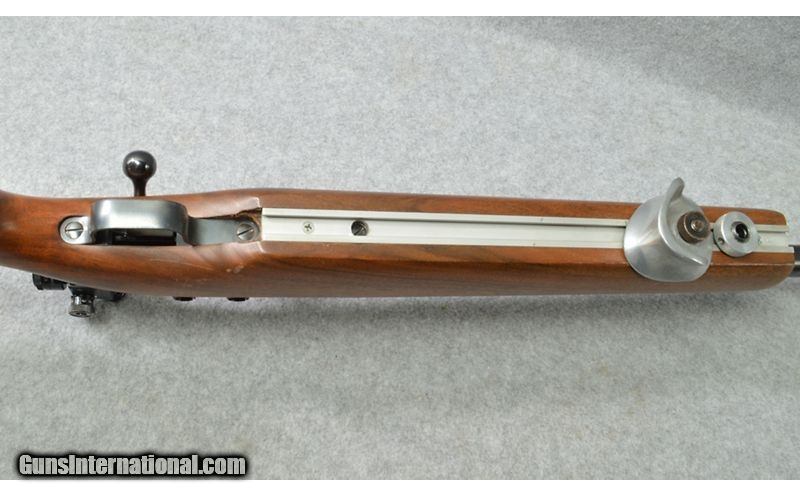 Description: This is a very nice Kimber Model 82 Government signal shot target rifle chambered in .22 Long Rifle. This rifle comes with a nice set of competition style target sights as well as a heavy target barrel. The stock dose have a few minor dents and dings (pleas see pictures). .22 Long Rifle SOLD Metal Condition: "Excellent, Bluing is in Excellent shape Wood Condition: "Very Good, Minor scratches & dents Bore Condition: Excellent Barrels: Heavy Bull Target Barrel Stock Dimensions: "29"" Stock Length, 42.25"" Overall Length Fore End: Weighted competition hand stop Sights: Competition Target Sights Item Location: Centerville, OH |