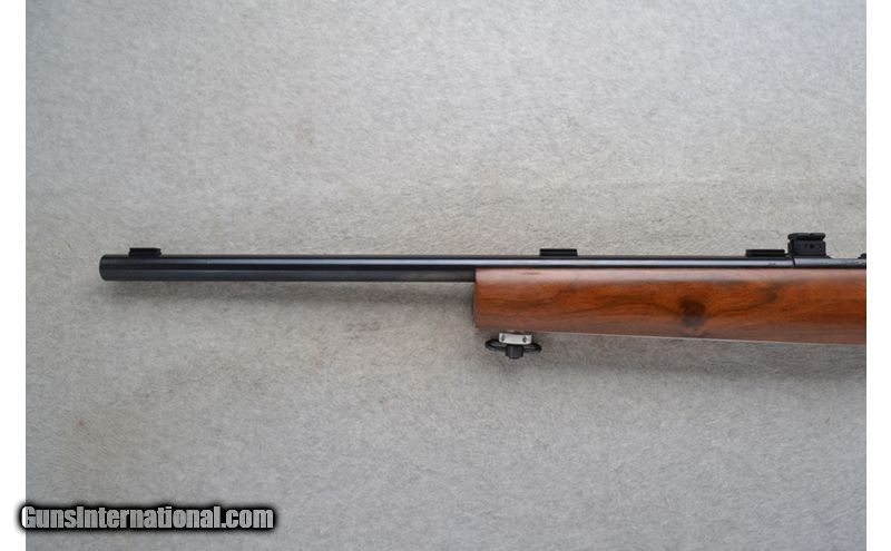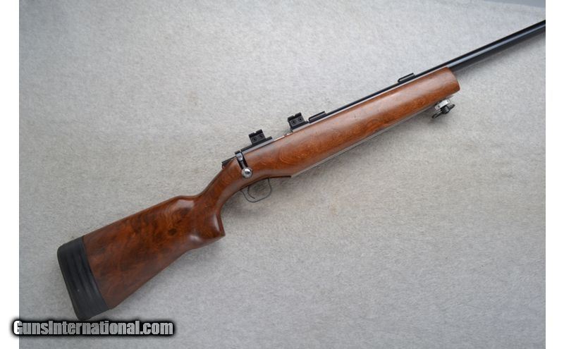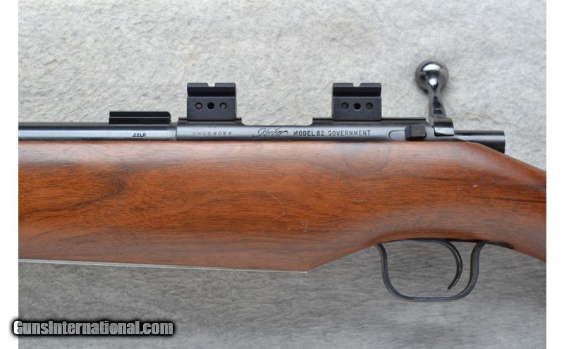 Description: This Kimber Model 82 Government is a right hand single shot bolt action target rifle in .22 Long Rifle Cal. It has a 25 inch heavy target barrel. No sights but has 3 iron sight mount bases attached and 2 scope mount bases attached. The butt stock is a smooth grip walnut pistol grip. The forearm is a smooth grip walnut with a bottom accessory track. The LOP has been adjusted with spacers. .22 Long Rifle SOLD Chambers: Right hand bolt action single shot. Metal Condition: Excellent with a few very minor handling marks. Wood Condition: Good. Many light handling marks and minor surface blemishes. Bore Condition: Excellent. Barrels: 25 inch heavy target barrel. Stock Dimensions: LOP 13 3/8 inches with 3 spacers installed. Fore End: Smooth grip walnut with a bottom accessory track. Butt Pad: Kimber black rubber pad. Weight: 10 lb. 0 oz. Sights: 3 iron sight mount bases on top barrel. 2 scope mount bases on the receiver. Item Location: Bristol, TN |