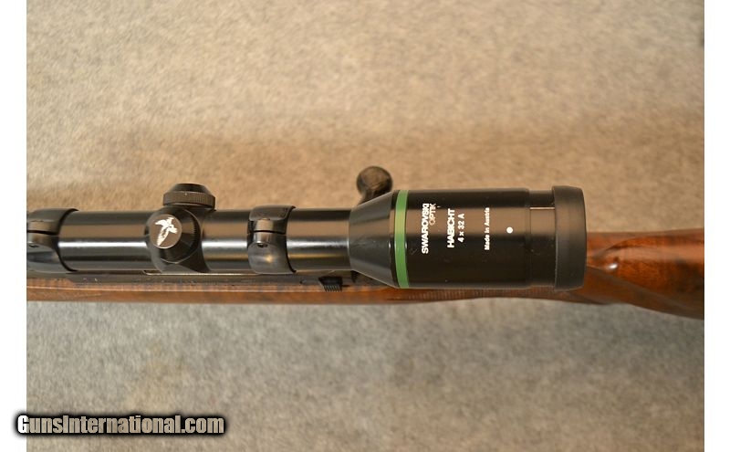 Description: SOLD Manufacturer: SN : SATD480 ; made by Kimber of Oregon, Clackamas OR Caliber Info: .222 Remington Metal Condition: Very good to excellent; some handling and muzzle finish wear Wood Condition: Very Good; some handling dings and scratches Bore Condition: Clean Barrels: 22 inches Triggers: Factory, bolt action Stock: Factory, highly-figured walnut, pistol grip with skeleton cap, Monte Carlo cheekpiece Stock Dimensions: 13 1/2 Fore End: Checkered with contrasting cap; note dings and scratches Butt Pad: Checkered metal buttplate Weight: 7 lb 4 oz with scope Sights: Factory folding adjustable rear with front ramp sight; Swarovski Habicht 4x32A fixed power scope Item Location: Greenville, SC |