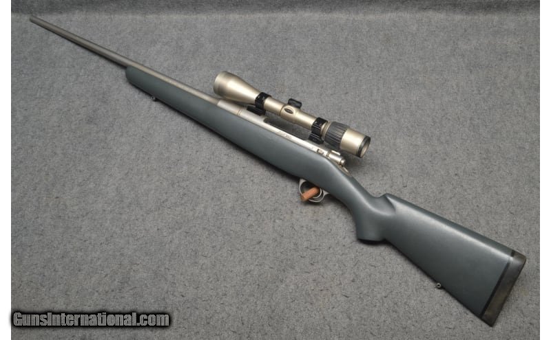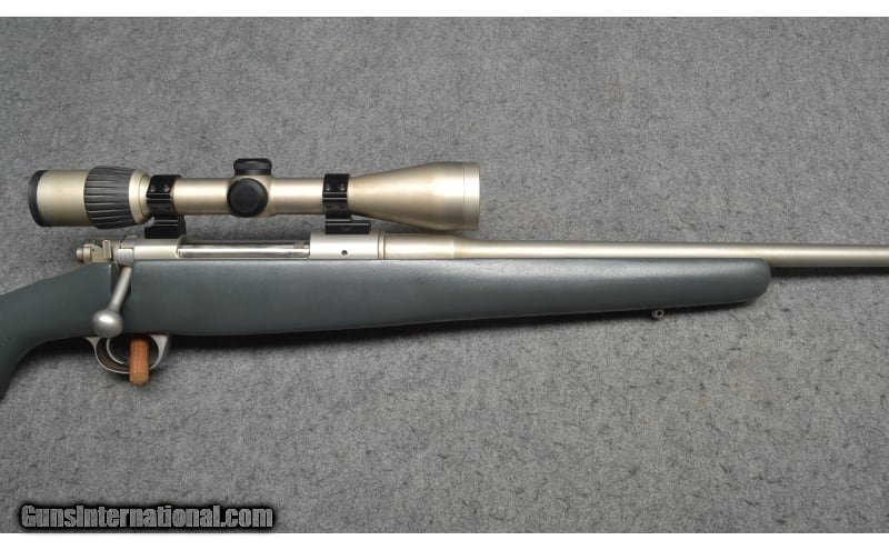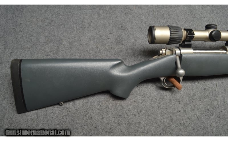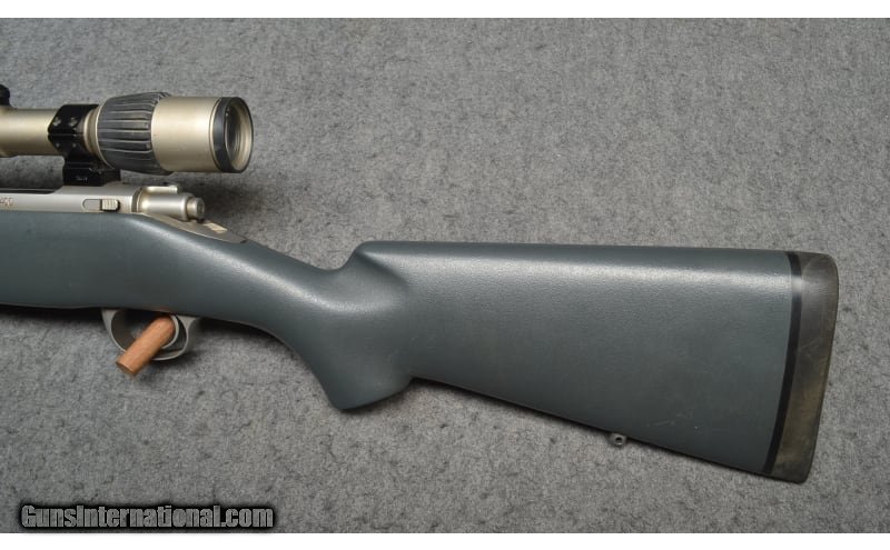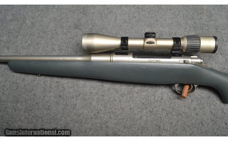 Description: This sturdy bolt action rifle is a Kimber Model 8400 chambered in .270 Winchester. It has swivel studs top and bottom, three position safety, a satin silver stainless steel finish, a durable moss green synthetic stock, and a thick Kimber branded rubber butt pad. The metal on this rifle is in excellent condition overall. The stock shows only a couple of minor marks to the left side right adjacent to the receiver. It comes with a Weaver 3-10X40MM Grand Slam Scope. .270 Winchester SOLD Chambers: 5 round internal magazine Metal Condition: Stainless steel is in overall excellent condition Wood Condition: Only some slight marks to the left side of the stock below the receiver Bore Condition: "Bright and shiny, with great rifling intact Barrels: 24" barrel Stock Dimensions: "13¾ inch LOP, overall length 44¼ inches Fore End: Synthetic fore arm Butt Pad: Thick rubber Kimber original butt pad Weight: 7 lb 8 oz Sights: Weaver 3-10X40MM Grand Slam Scope Item Location: Wichita, KS |