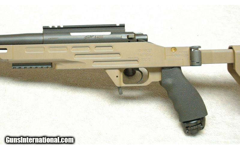 Description: Kimber Model 8400 Advanced Tactical SOC II Rifle. Excellent condition, with 2 mags and factory manual. 22" Threaded heavy barrel, light, crisp trigger, folding stock with adjustable cheek rest and adjustable length of pull. Rifle also has large tactical type bolt handle, smooth action, ergo grip and factory installed bubble level. .308 Winchester SOLD Chambers: Bolt action Metal Condition: Excellent Wood Condition: Stock is excellent Bore Condition: Bright Barrels: 22 Triggers: Factory trigger Stock Dimensions: 13 3/4" LOP Fore End: Aluminum MLOK free float forend Butt Pad: Kick-Eez pad Sights: Scope mounting base installed Item Location: La Vista, NE |