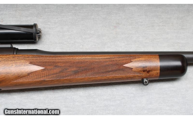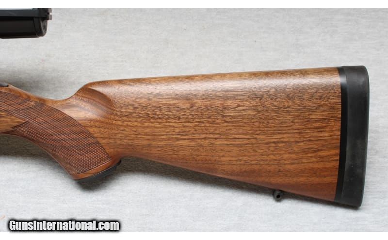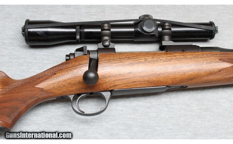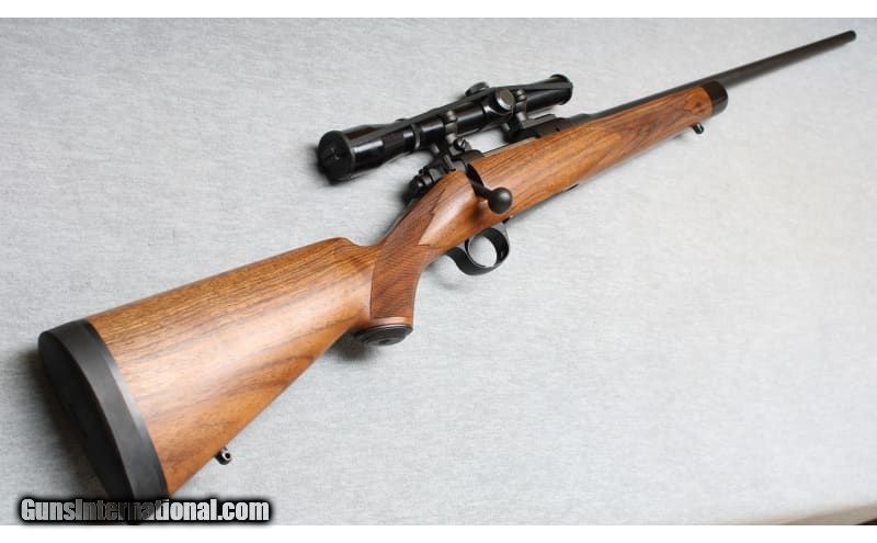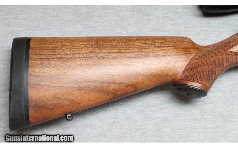 Description: Excellent condition, few light wear and handling marks. Superbly crafted bolt action rifle - 24" barrel, smooth action and crisp trigger pull. Blued metal, semi gloss premium checkered wood with contrasting forend tip and Decelerator recoil pad. Lyman All-American 2-1/2x scope and sling swivel mounts installed. .325 WSM SOLD Chambers: Bolt action Metal Condition: Excellent Wood Condition: Excellent Bore Condition: Bright Barrels: 24 Triggers: Factory Stock Dimensions: 14" LOP Fore End: Checkered with contrasting tip Butt Pad: Decelerator pad Sights: Lyman 2 1/2x scope Item Location: La Vista, NE |