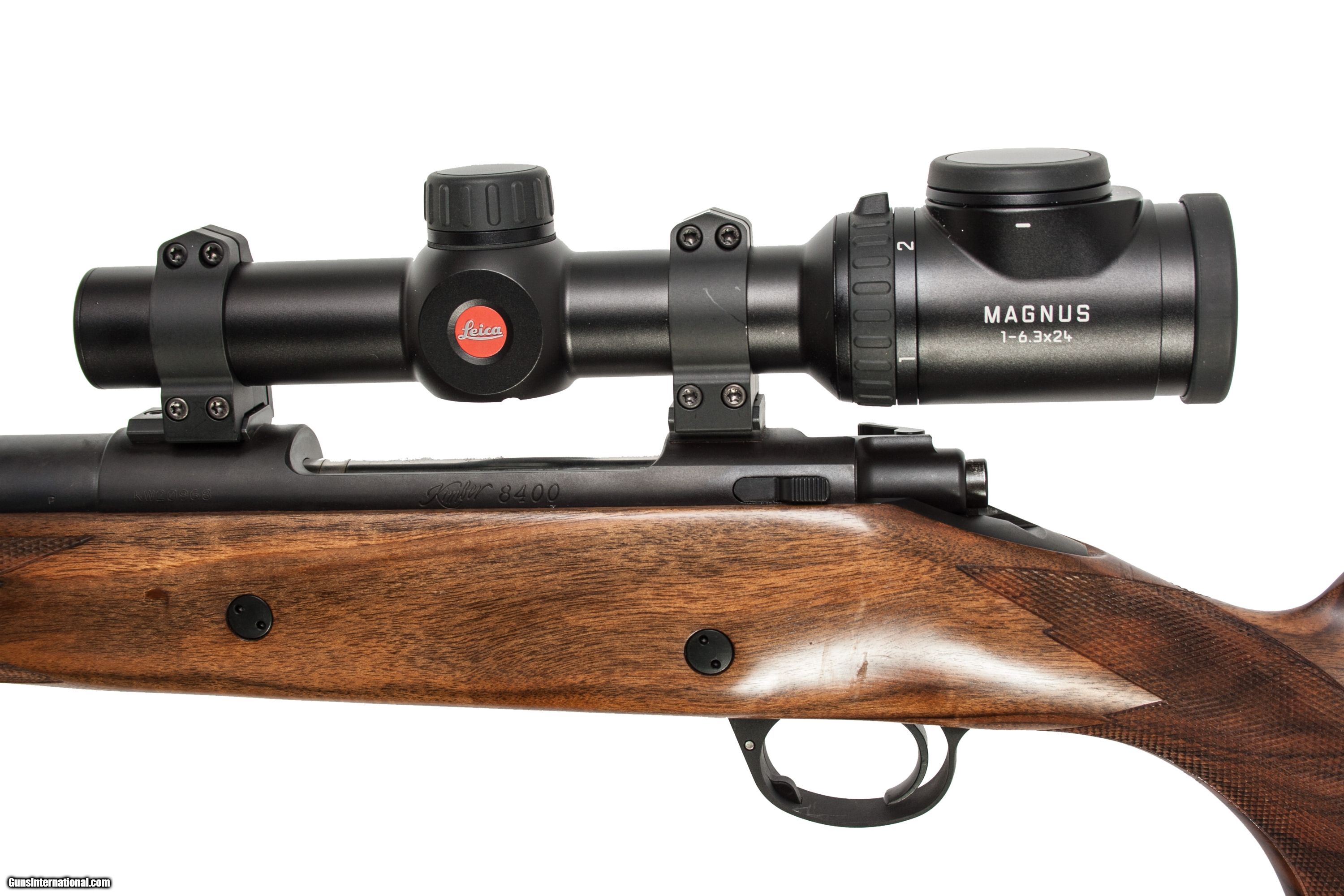 Kimber 8400 chambered in 375 H&H Mag with a 24 inch barrel and a Leica 1-6.3x20. This gun is in excellent condition and is covered by Dury's Lifetime Warranty.