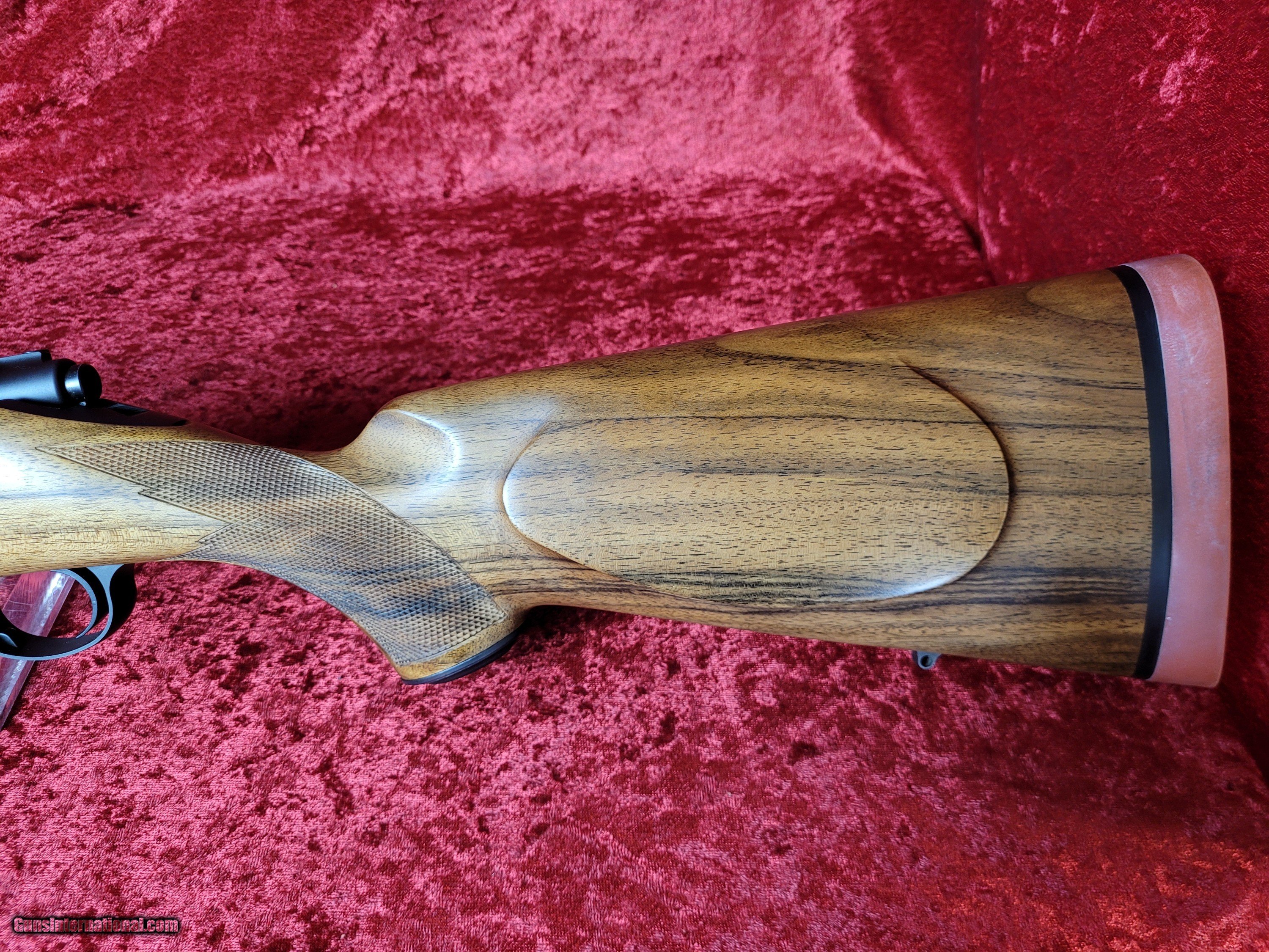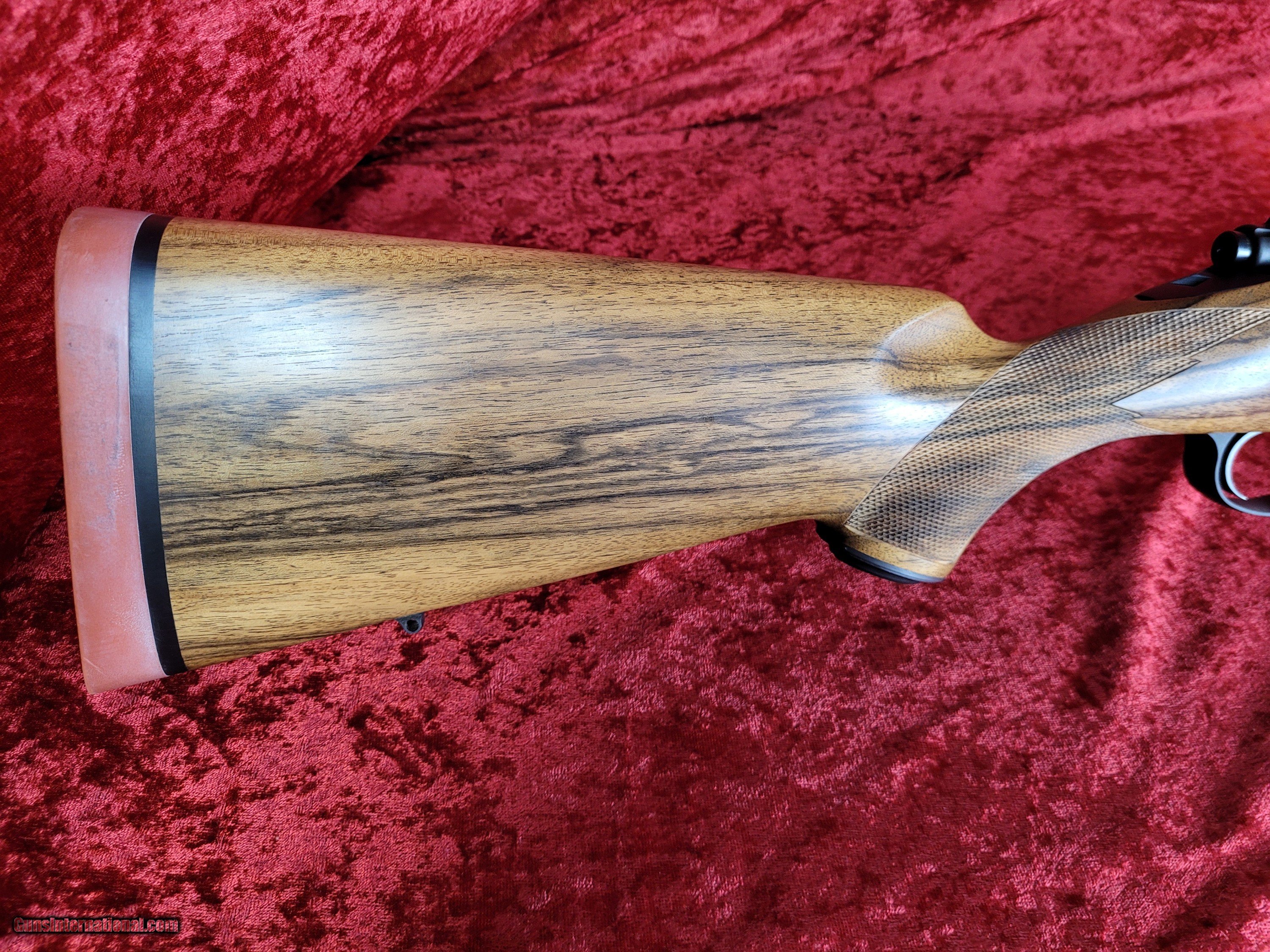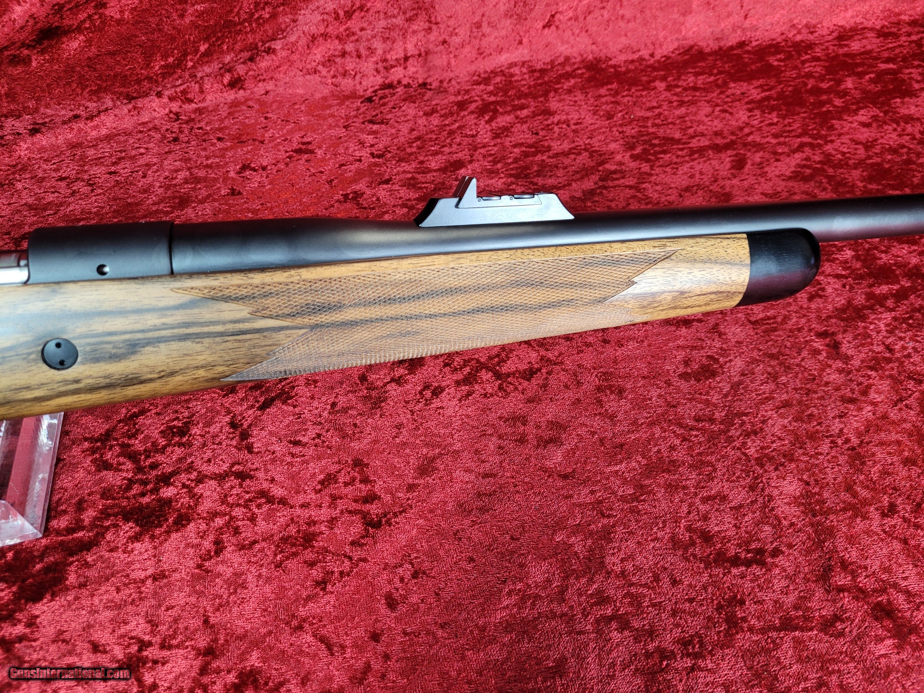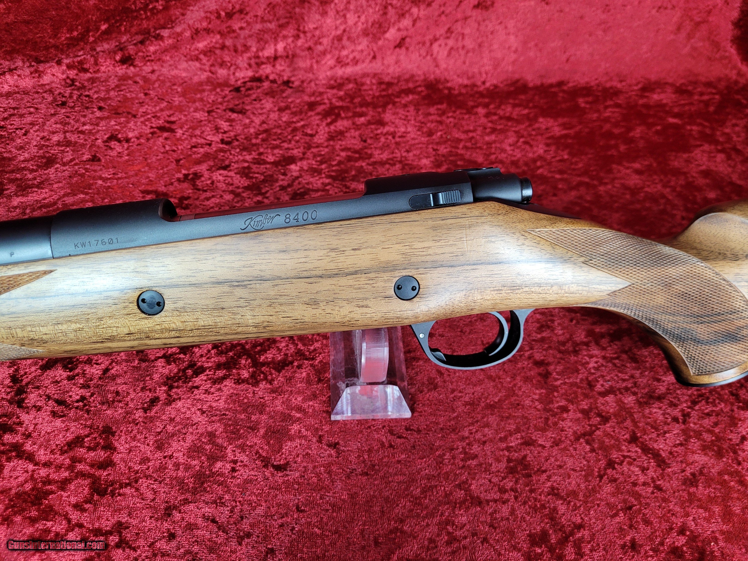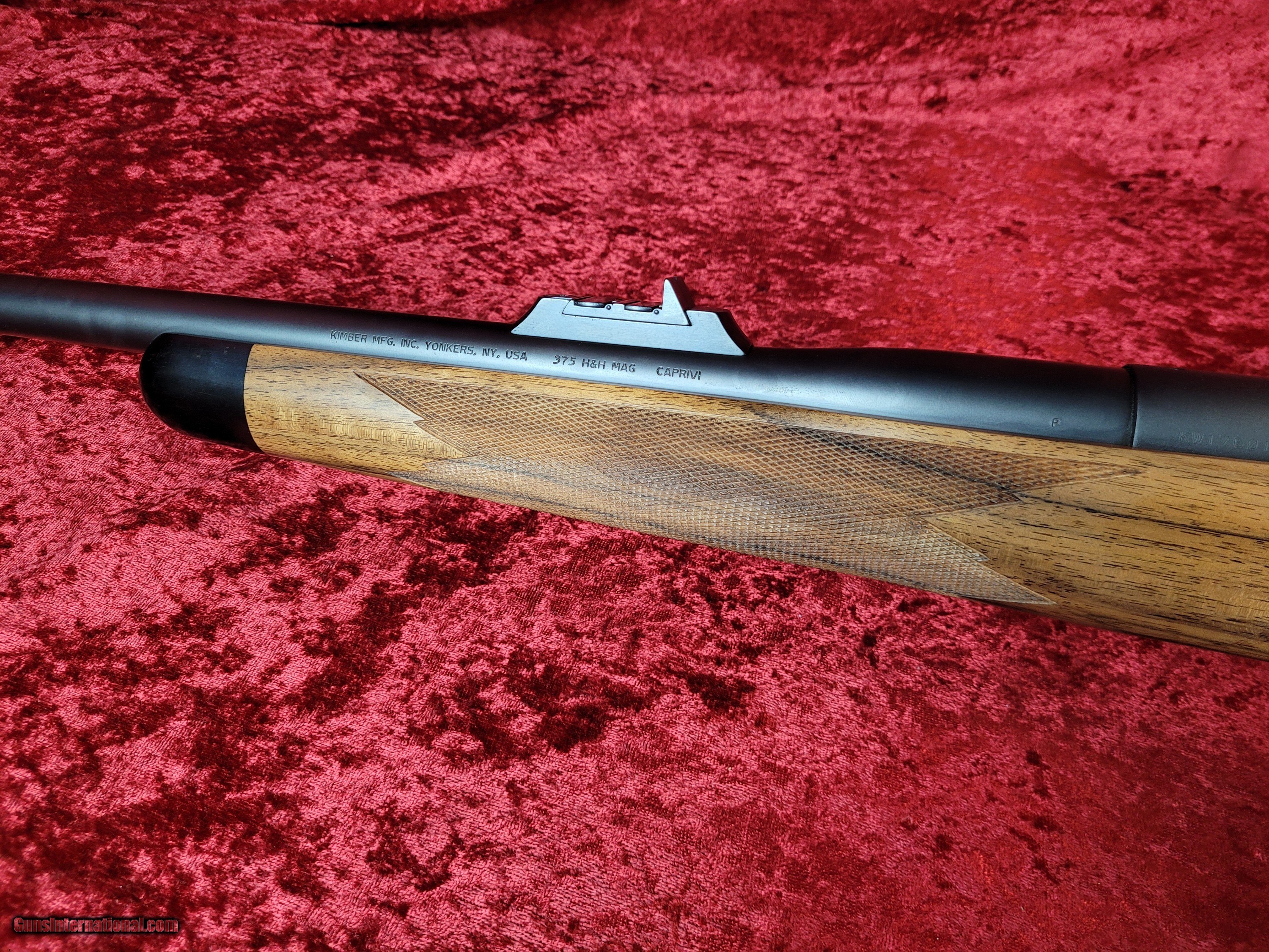 Description: Excellent condition Kimber Caprivi 8400 chambered in 375 H&H. Does not come with a box. Gun only. Hand oiled AA walnut stock. Ebony forend tip. 3 position model 70 style safety. SOLD Rifle Caliber: .375 H&H Magnum Manufacturer: Kimber Model: 8400 Caprivi |