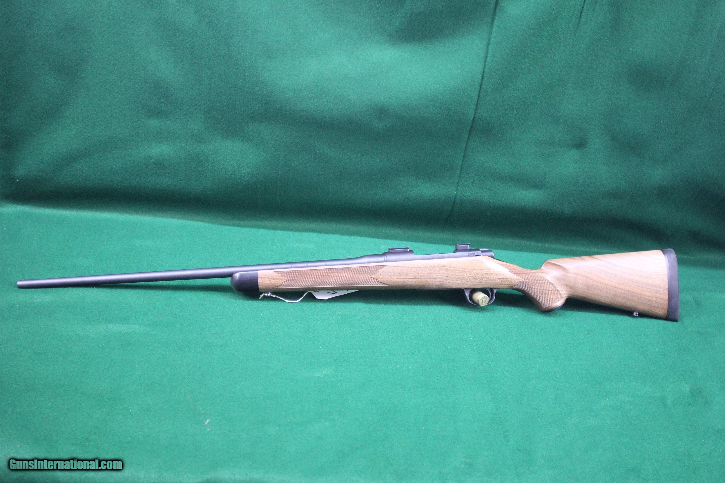 Description: Kimber 8400 Classic is chambered in .300 WSM and features a matte blued barreled action, light wooden stock, and stainless steel bolt. This rifle is light weight and is great for long hunts where you want to mitigate excess baggage. This rifle has bases pre-installed for easy optics mounting. The action is control-round feed and has a three position safety, cocking indicator, short bolt throw, and a hinged floor-plate magazine. The trigger is short and crisp. The stock has a black end cap, metal grip cap, rubber recoil pad, and sling studs. 90 day layaway is available for 20% down. 4% credit card fee. Be sure to check our other listings for more fine firearms. SOLD |