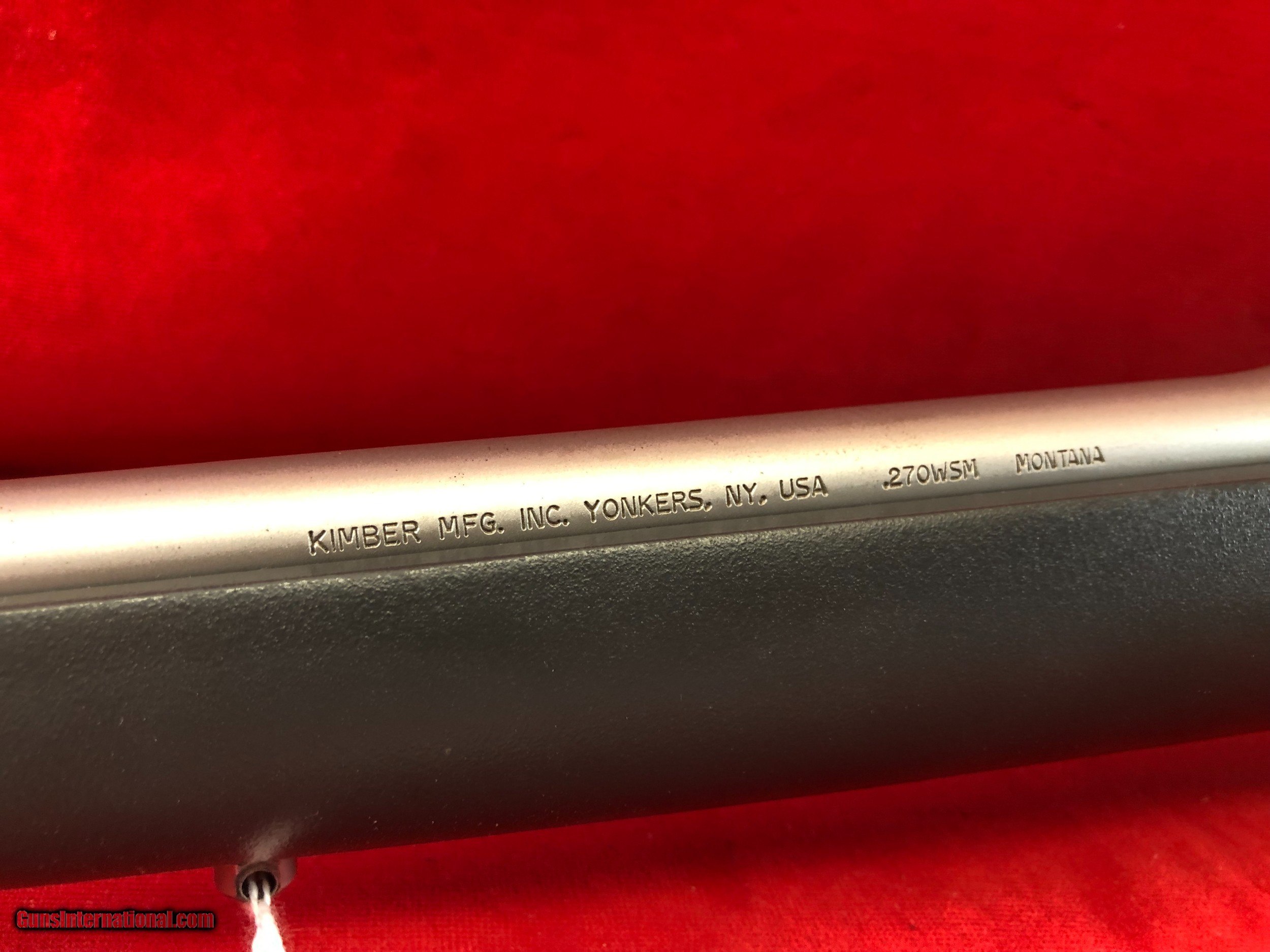 Description: We have a USED Kimber 8400 Montana, chambered in 270 Winchester Short Magnum. The rifle is in excellent shape but does have some small scuffs in the top of the end of the barrel (pictured) SOLD Rifle Caliber: .270 Winchester Short Magnum Manufacturer: Kimber Model: 8400 Montana Barrel Length: 24 |