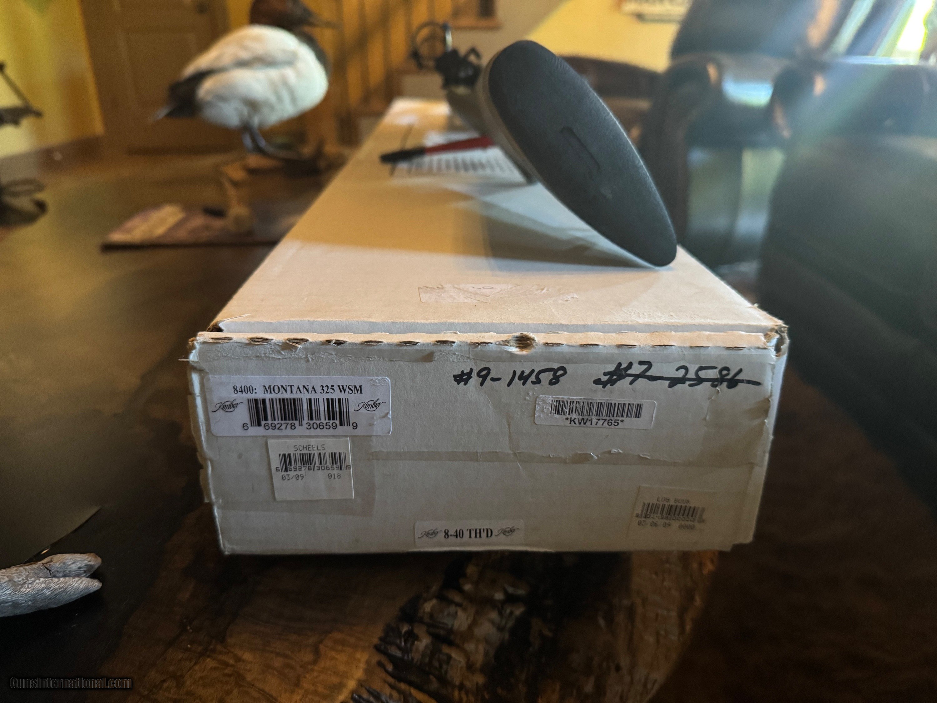 Description: This is a custom built Kimber. It's an 8400 Montana in 325 WSM, weighs 5.8 lbs! All stainless metal with black cerakote. 24" Barrel plus brake, Kuiu Ash color stock with black webbing, 30mm rings/bases. Brand new. Has box and all paperwork. Includes 40 rounds of Nosler ammo. SOLD Rifle Caliber: .300 Winchester Short Magnum |