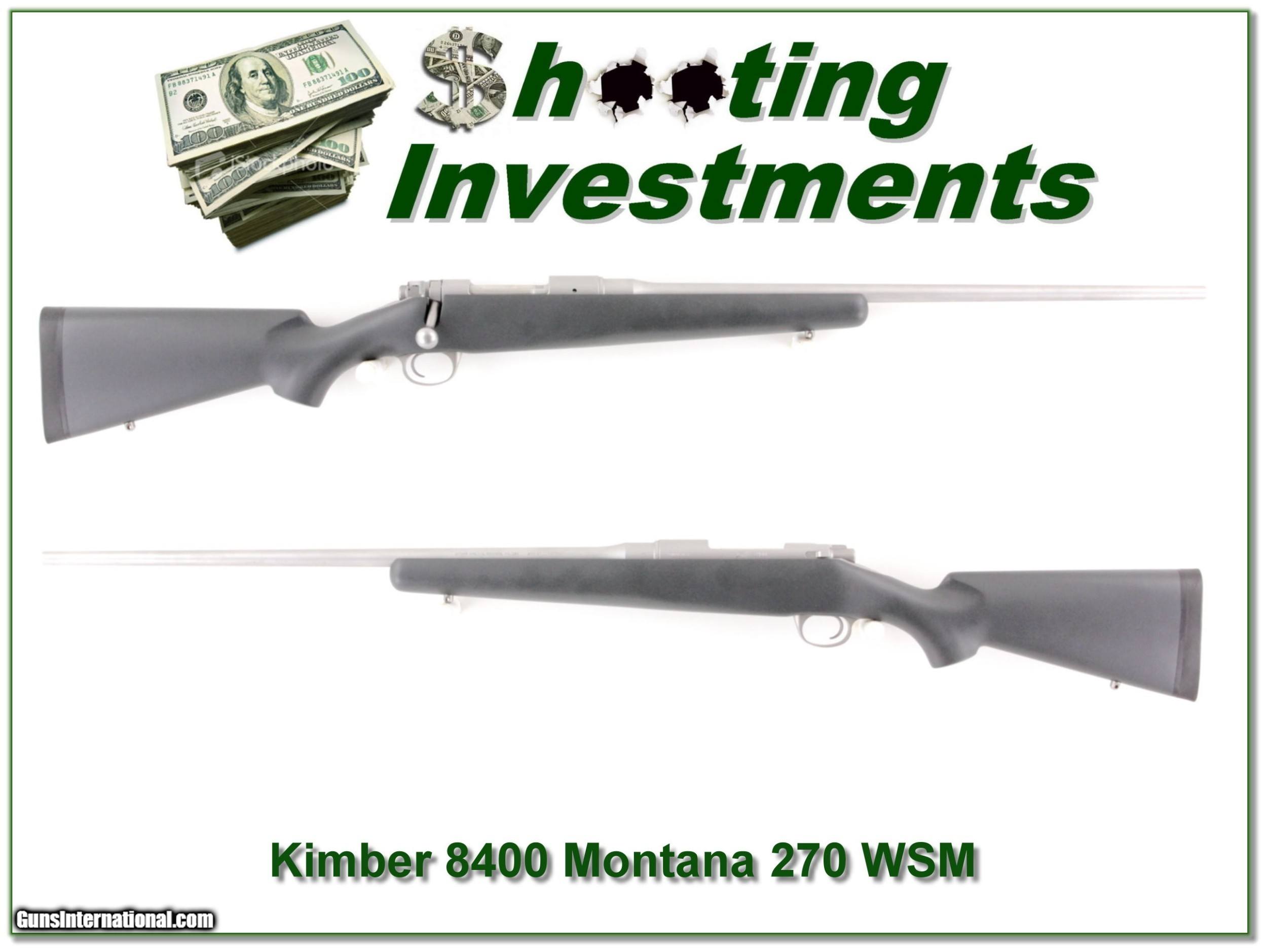 Description: This is an excellent condition Kimber Montana in the flat shooting 270 WSM. These 8400 Montana’s are stainless with a 24in barrel. I am sure this one has only fired a few rounds. It will make a high-end all-weather lightweight hunting gun. I am selling this one on consignment and as such lay-a-way can’t be used. It does of course have the standard 3-day inspection. Shipping with insurance is $39. Please email me with any questions or larger pictures. (Consign your quality firearms with Shooting Investments for only 12%! Let me know if you have any you would like to sell!) 19-0366 Payment: Payment is by Money Order, Cashiers Check or Personal Check. I can now also accept Credit Cards (MasterCard, Visa, Discover & American Express) with a 3% convenience fee. PayPal can be used for some items but never for firearms. Shipping: The shipping charge will be listed in each description. It is $39 for most firearms. Some heavy guns or those insured for over $2000 will be higher. Shipments to Alaska and Hawaii are higher because air shipment is required. Most firearms are shipped on Tuesday and Thursday and usually in 5 days of receipt of payment. We package all shipments carefully and insure them. Optics are shipped Priority Mail and most other non-firearm shipments are shipped First Class. Returns: Our return policy is simple. If for any reason you are not pleased with your purchase, you may return your item for a full refund of purchase price. Ammunition cannot be returned. It is important to us that you are happy. Guns cannot be fired or dissembled before returning them and they must be returned in the same condition as received. Notification of a return must occur with-in 3 days of receipt at your dealer. Shipping, convenience and dealer fees are not refundable and are the responsibility of the buyer. Lay-a-way: If needed, we offer a 60 day lay-a-way option on most firearms. It is 1/3 now, 1/3 in 30 days and 1/3 in 60 days. Lay-a-way firearm sales are final and if not completed the first payment cannot be returned. Consigning your firearms with Shooting Investments: We will help you get top dollar for your firearms. While most local guns shops charge 20% or more, our fee is only 12% with a minimum of $75. At your local gun shop it might take months to sell. Selling on-line provides instant access to thousands of interested buyers. You won’t find any other on-line dealer willing to sell your firearms for only 12% or listing every gun on 3 separate s. Selling through an House typically costs the seller 15% and the buyer an addition 15% (so 30%) and you have to wait several months to sell and longer to receive funds. If properly priced, we will sell your firearms in a few weeks. Send us an email or give us a call and we’ll explain how easy it is for you to get top dollar. Trading: Trading for use is really just buying your gun to re-sell. If you have a gun you want to trade, please email a picture and we will let you know what we can give or it. You will always get more if we sell it for you on consignment. Help for California Buyers: We are happy to ship to California. It is the buyer’s responsibility to make sure any item you buy is legal in your state. We are also happy to help with your purchase of a firearm from someone other than us. If you see a gun you would like to buy but the seller can’t or won’t ship to California they can ship to use and we’ll then ship it to your California dealer. The cost for this service is only $30 + shipping. Let us know if we can help! SOLD |