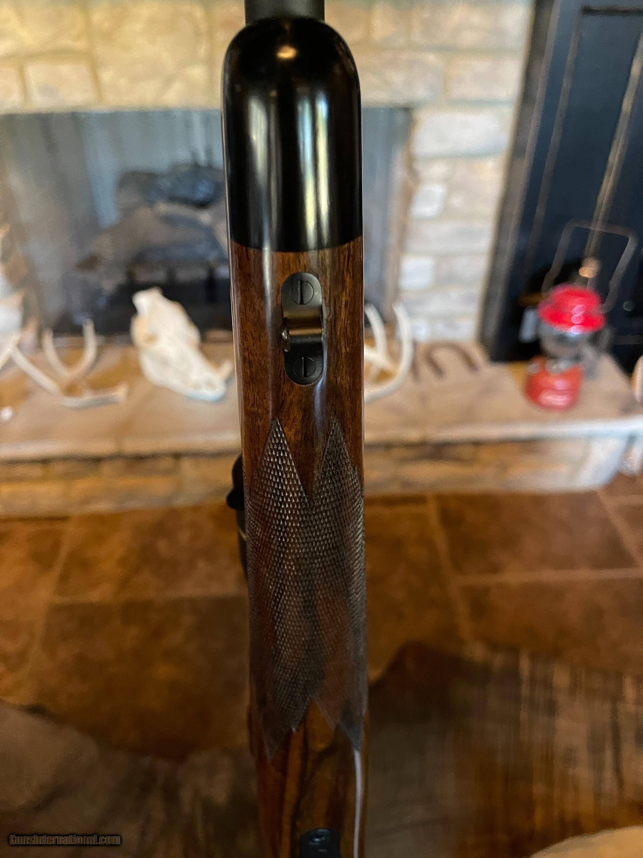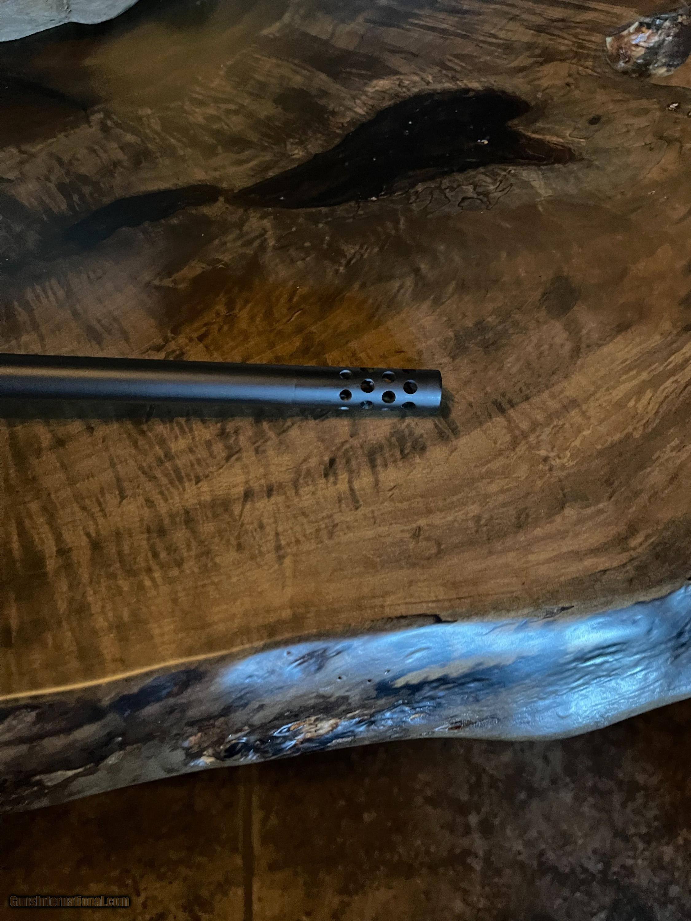 Description: This is a full blown custom from Riverbend Rifles and Gene Gordner of Montana...built on a Kimber 8400 action. Super America AAA grade Walnut, 24 point wrap checkering, hand rubbed oil finish. All stainless metal with black matte cerakote. Lilja 24" barrel with KDF slimline brake. Jeweled bolt and checkered bolt knob. Inletted swivels. Custom Leupold 4.5-14x40 LR 30mm with CDS dial. 3 boxes of ammo. This gun is a sub 1/2" gun...see pic of test group! Only one small handling mark on left side..see pic. Over $5k invested to build this gun! Complete package ready to go. SOLD Rifle Caliber: .300 Winchester Short Magnum |