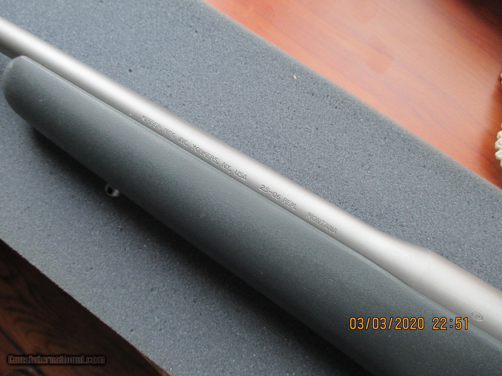Description: KIMBER MODEL 8400 LA MONTANA....IN 25/06 REMINGTON CAL....24 INCH BARREL STAINLESS SYNTHETIC..SOME LIGHT SCUFFING ON STOCK NEAR FRONT SLING SWIVEL MOUNT...HAS SCOPE RAIL MOUNTED...POSSIBLY FIRED.....$1295.00 AND $65.00 SHIPPING SOLD Manufacturer: KIMBER Model: 8400 LA MONTANA Caliber Info: 25/06 REM Condition: EXCELLENT Barrels: 24 INCH |