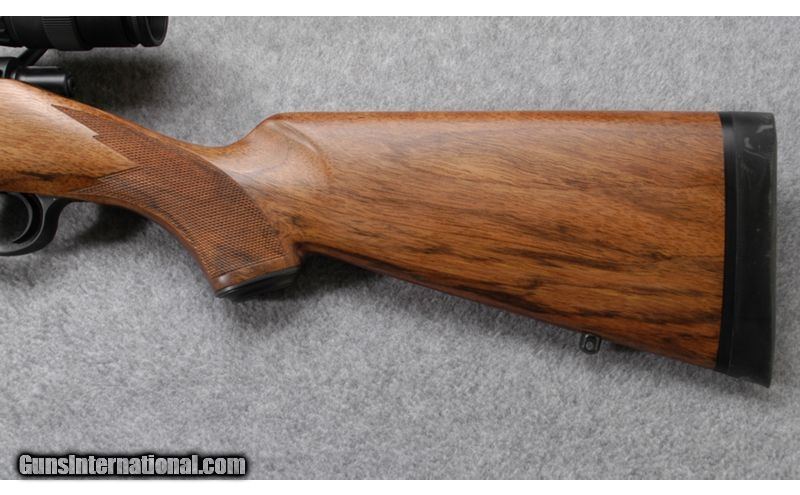 Description: This is a very nice 84L Select Grade Kimber rifle in .30-06 Springfield. Features matte finish barrel, A-grade French walnut stock with Ebony forend tip. Comes with Kimber rifle strap. .30-06 Springfield SOLD Chambers: Bolt action repeater. Metal Condition: Very good. Wood Condition: Very good. Barrels: "24"", matte blue. Triggers: Single. Stock Dimensions: 13 3/4" LOP. Fore End: Ebony tipped. Butt Pad: Rubber pad. Sights: Trijicon 3-9x40mm. Item Location: Dundee, MI |