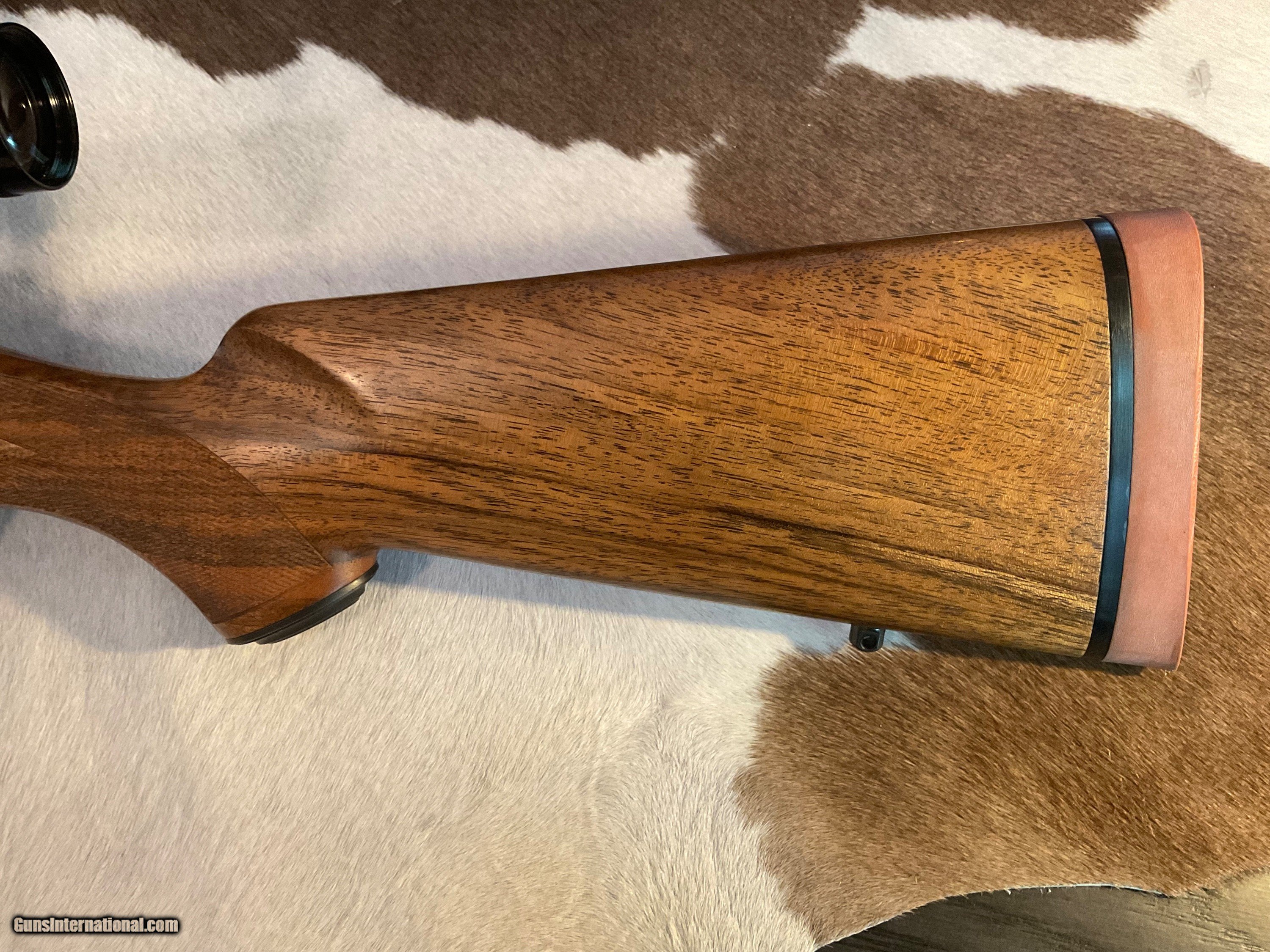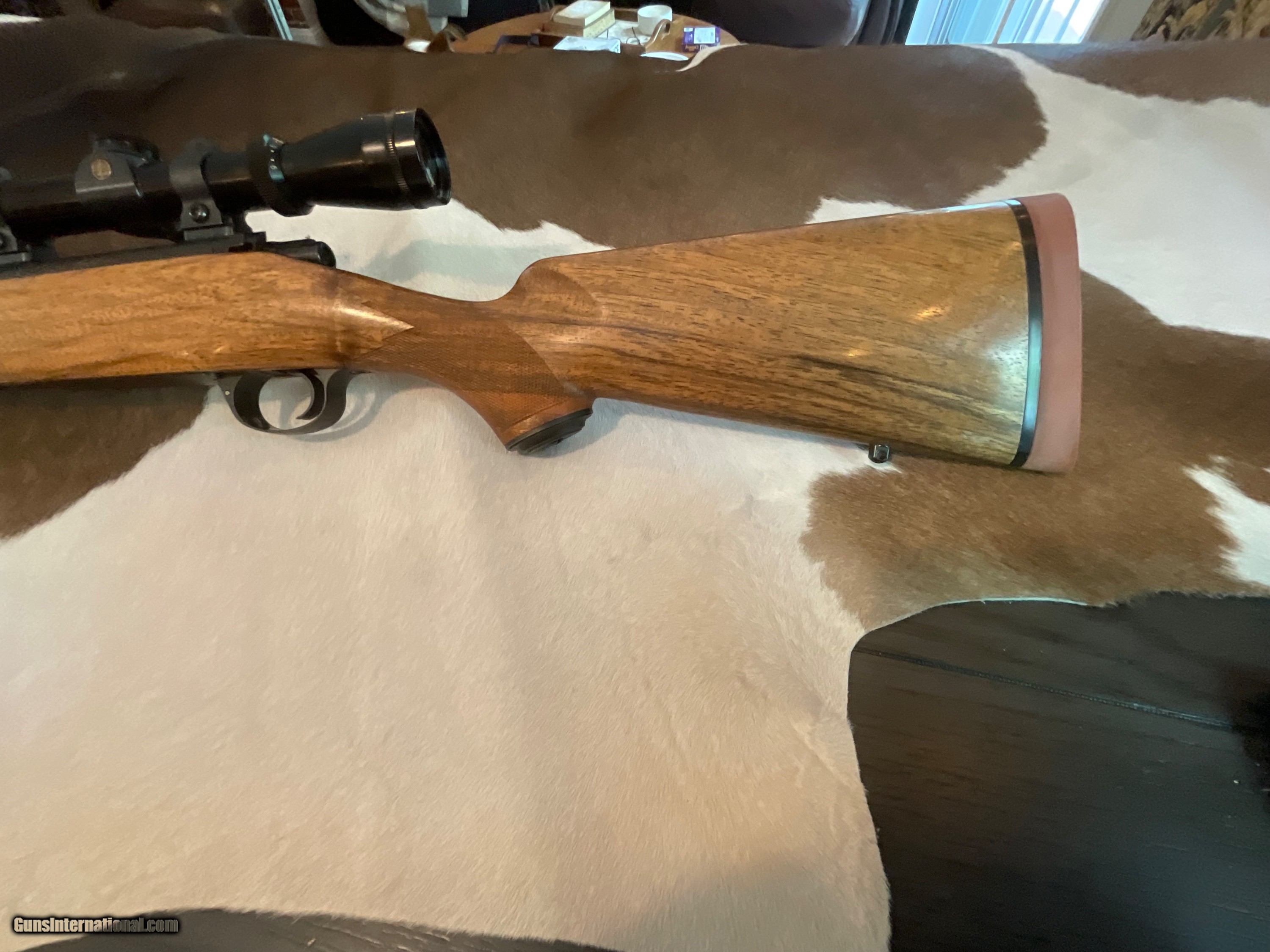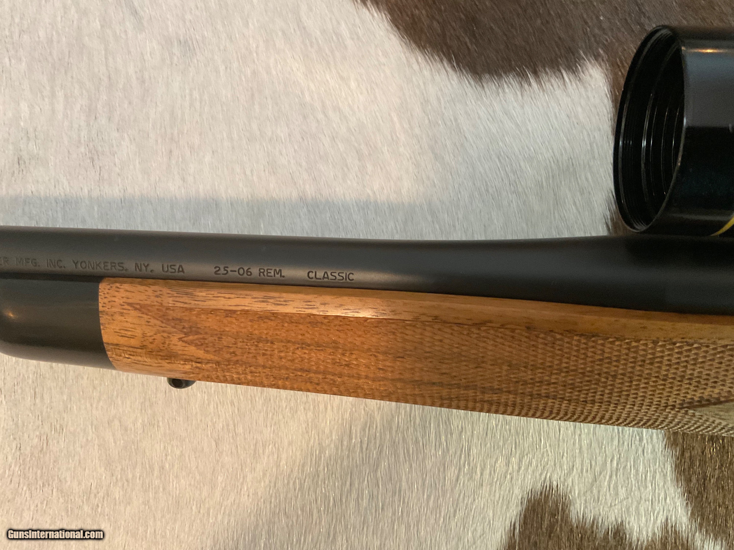 Description: SALE PENDING REDUCED! Kimber Classic Select Grade 25-06. This Kimber Classic Select Grade has a really nice piece of A-Grade French Walnut with 20 LPI Checkering, HAND RUBBED OIL FINISH, and Ebony forend tip. Upgraded with a classic red 1" Pachmeyer decelarator pad. 3 position wing safety with full Mauser claw extxttactor. Bolt was jeweled by Jessie Kaufman of SD. Hosts a gloss Leupold VX-2 3-9x40 1" tube in Talley rings. Kimber doesn't make the 84L in 25-06 anymore. Included are 50 rounds Barnes VORTEX 100 GR Tipped TSX BT, 3225 fps my, shipped separately. This a whitetail rig that's about as accurate, classically good looking, and ready to hunt. Gun hasn't been shot. Was $1,599, now $1,499 plus $50 insured shipping to an FFL. SOLD |