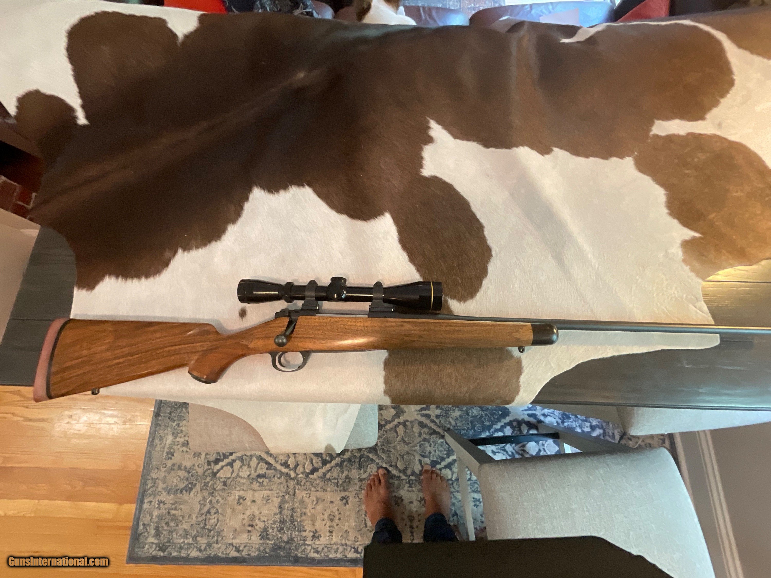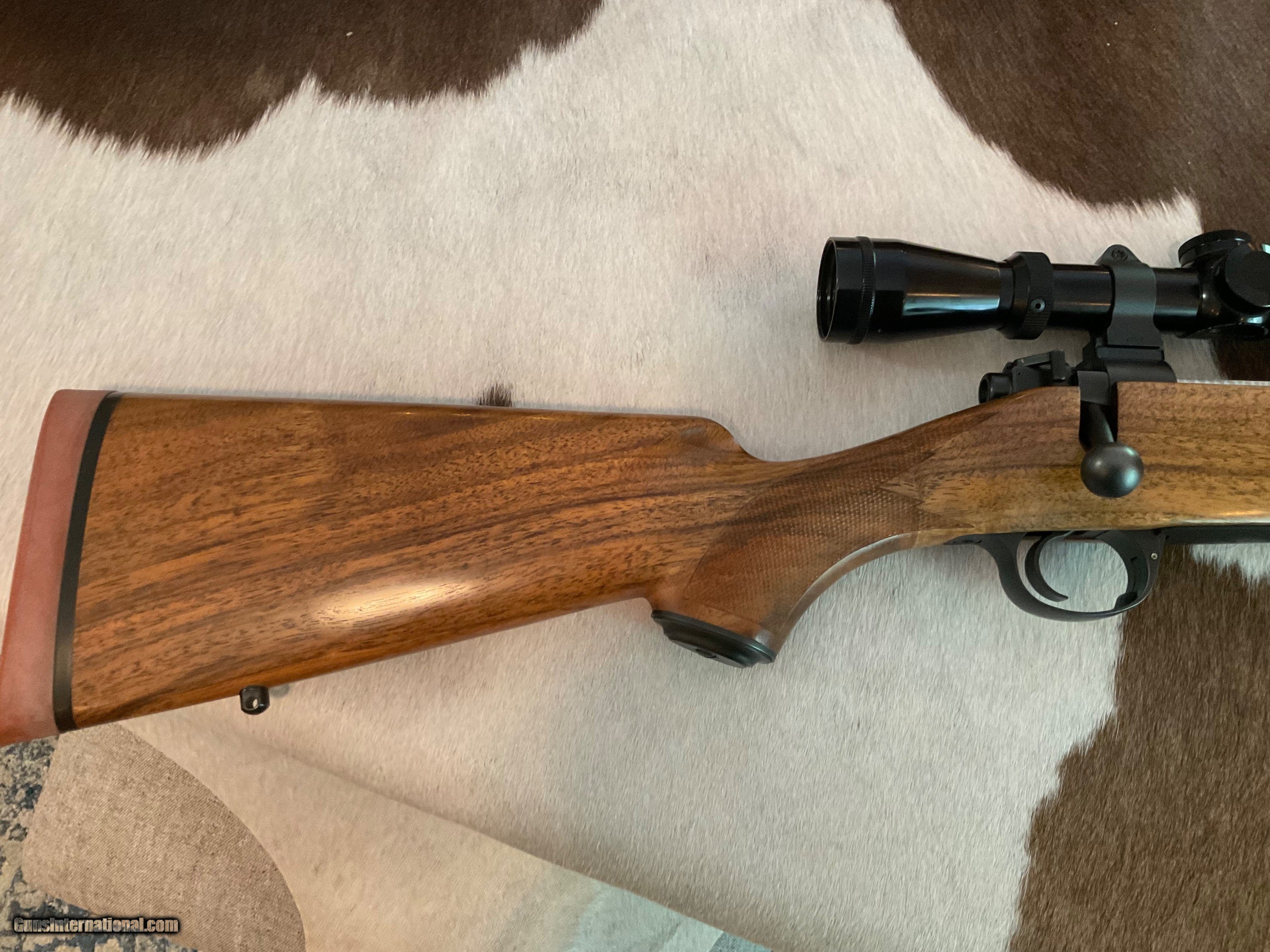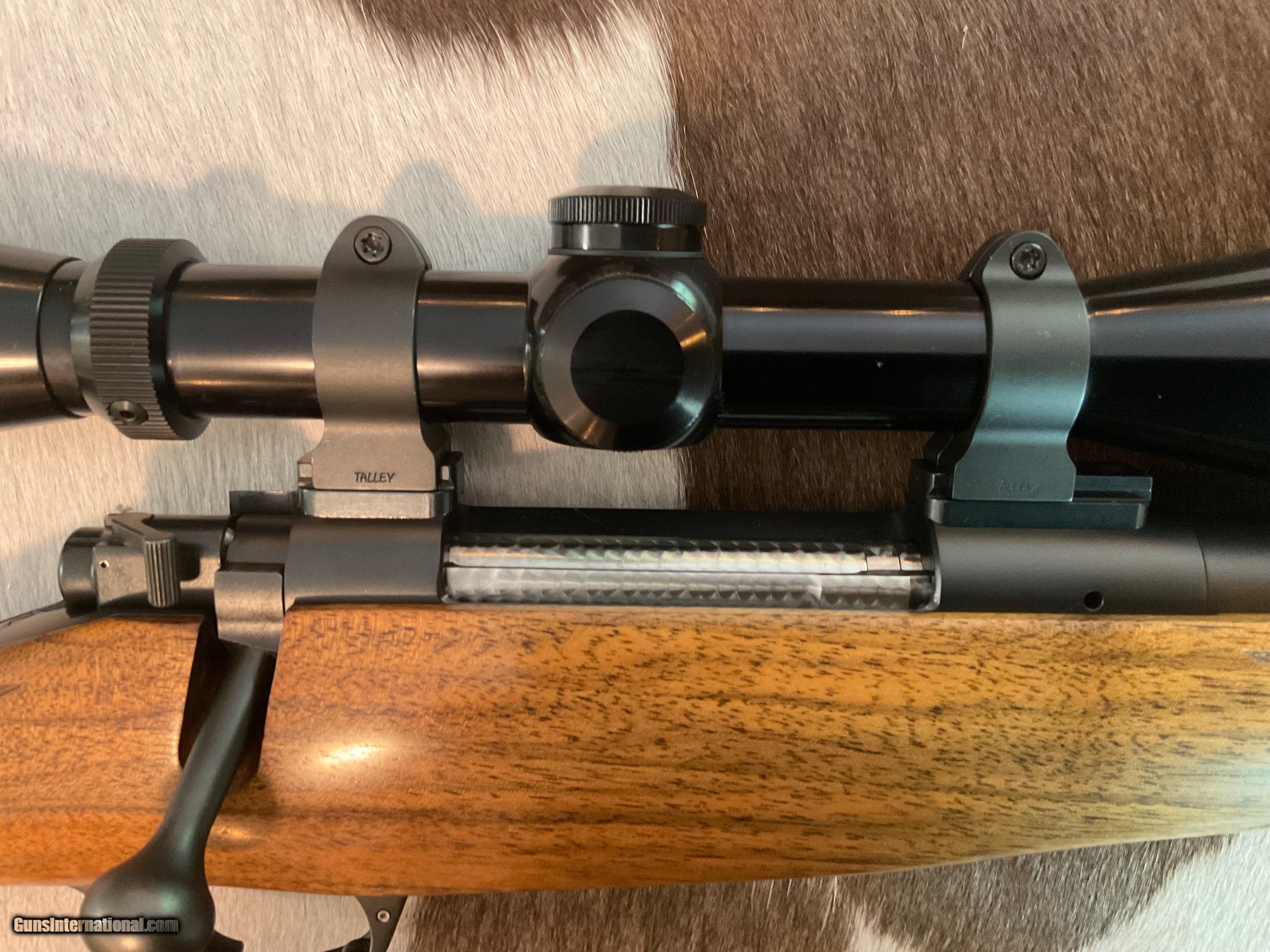 Description: SALE PENDING REDUCED! Kimber Classic Select Grade 25-06. This Kimber Classic Select Grade has a really nice piece of A-Grade French Walnut with 20 LPI Checkering, HAND RUBBED OIL FINISH, and Ebony forend tip. Upgraded with a classic red 1" Pachmeyer decelarator pad. 3 position wing safety with full Mauser claw extxttactor. Bolt was jeweled by Jessie Kaufman of SD. Hosts a gloss Leupold VX-2 3-9x40 1" tube in Talley rings. Kimber doesn't make the 84L in 25-06 anymore. Included are 50 rounds Barnes VORTEX 100 GR Tipped TSX BT, 3225 fps my, shipped separately. This a whitetail rig that's about as accurate, classically good looking, and ready to hunt. Gun hasn't been shot. Was $1,599, now $1,499 plus $50 insured shipping to an FFL. SOLD |