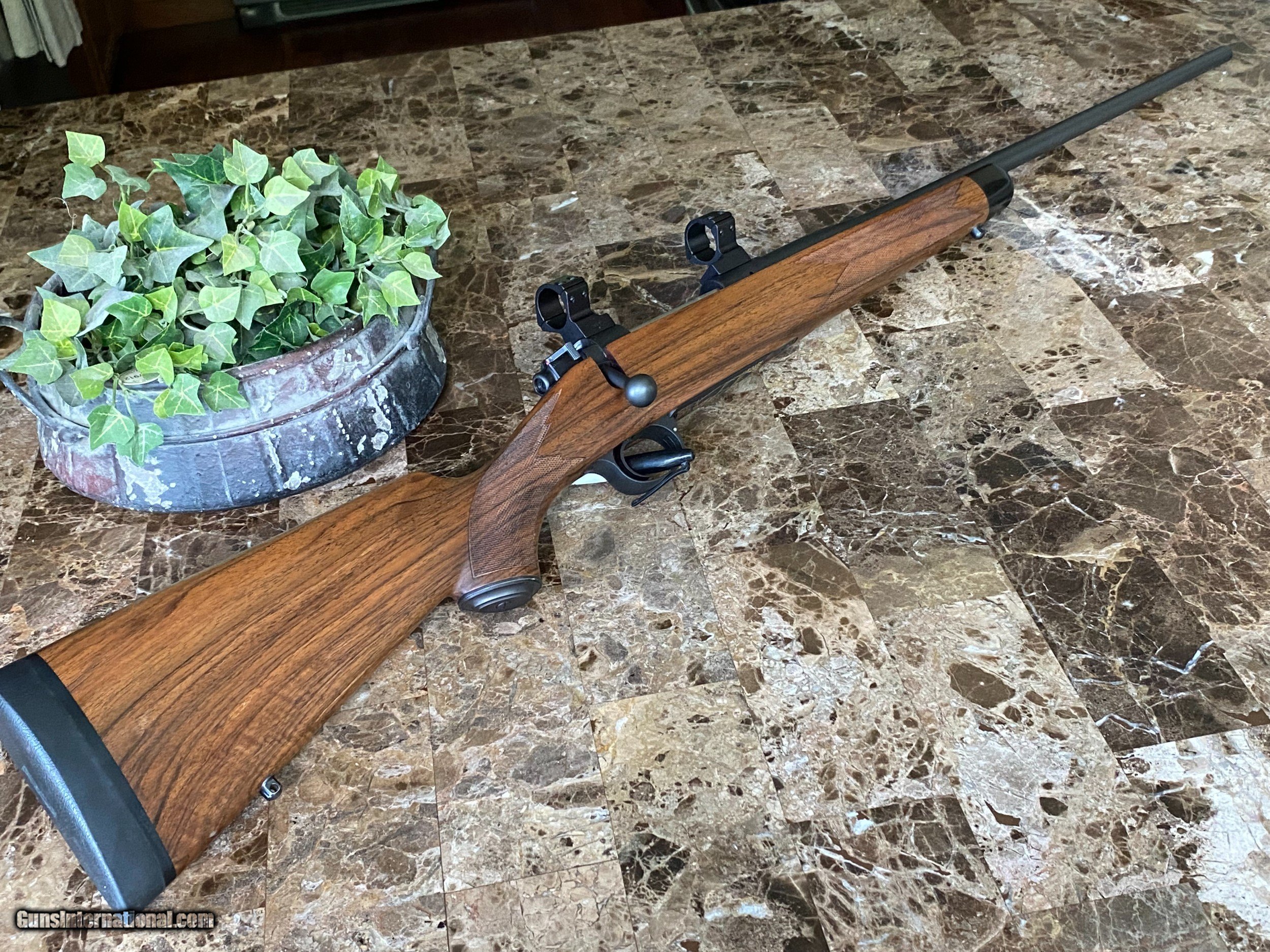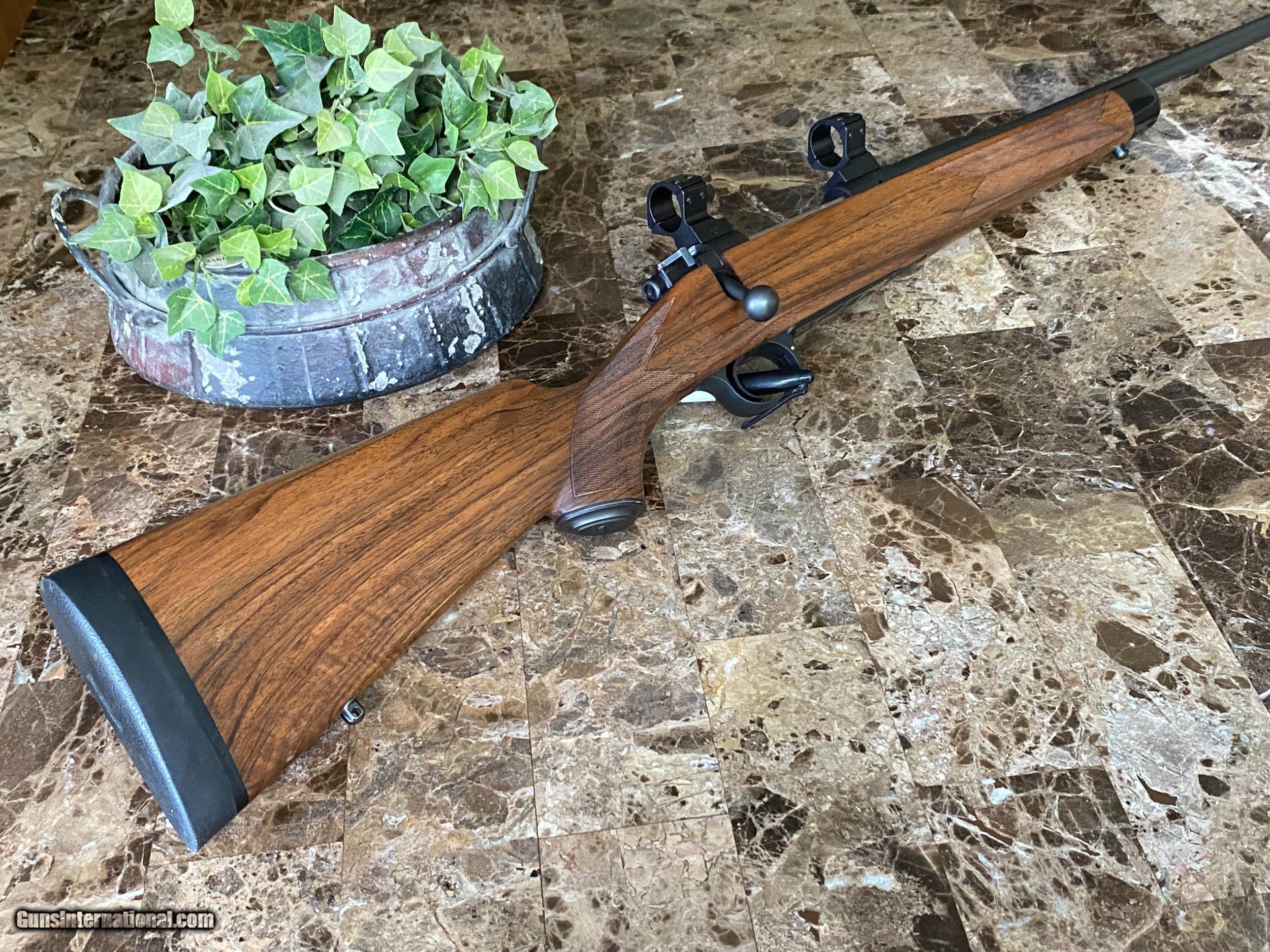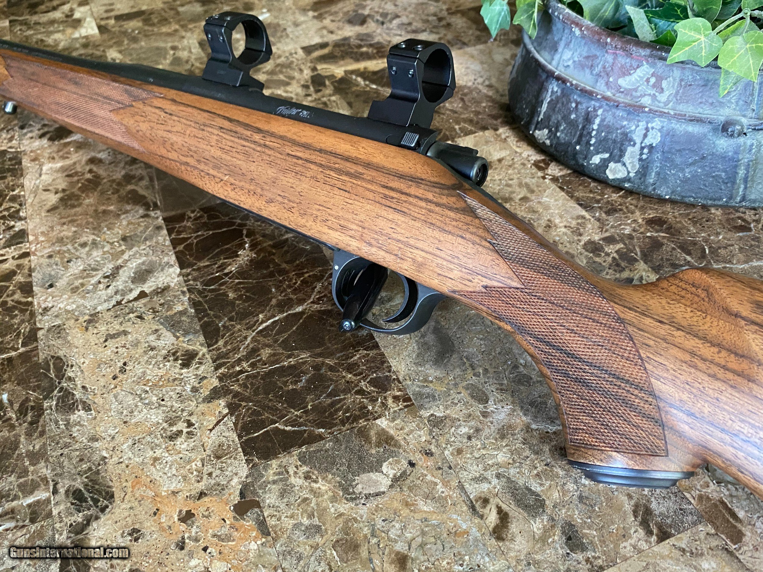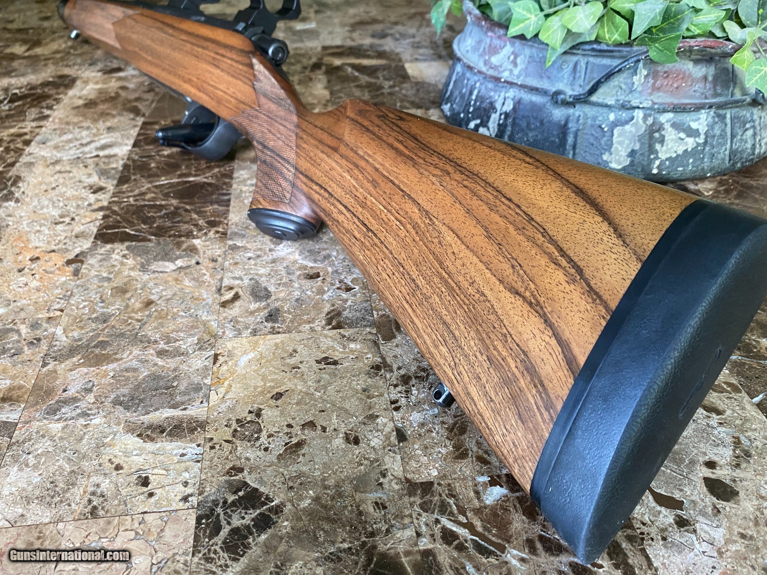Description: Up for sale is my mint condition Kimber Model 84L Lightweight in .30-06. This is a Rocky Mountain Elk Foundation Elk Country Edition rifle, Number 108 of only 457 built by Kimber. Weighing only 6.2 Lbs, it has unique features including a premium, figured walnut stock in satin oil finish, a straight comb, thick non-ventilated recoil pad, engraved and gold overlaid Elk Mountain Scene floorplate and a laser-etched bolt with the series and production number. I purchased this rifle in its present mint condition and it appeared to have never been fired. I have never shot the rifle as it is very special. I am selling all my .30-06 rifles as I have found them too much rifle for my old bones at the range. Included are Talley one-piece lightweight mounts for your choice of scope. You will not be disappointed with this beautiful, mint condition rifle by Kimber. Sorry, no box or paperwork came with this rifle when I purchased it, unfortunately. I can accept USPS Money Orders, Certified Checks, Pay and PayPal (you pay the fees). You will be charged actual shipping plus insurance. I will ship ground unless expedited shipping is requested and paid. SOLD Rifle Caliber: .30-06 Springfield Manufacturer: Kimber Model: 84L Barrel Length: 24 Condition: Excellent Metal Condition: Excellent Wood Condition: Excellent Bore Condition: Excellent Barrel Type: Sporter Action: Bolt Stock: Figured Walnut Stock Comb: Straight Stock Heel: Checkered w. classic cap Fore End: Checkered w. ebony cap Butt Pad: Closed cell recoil pad Finish: Satin Blue Weight: 6.2 Lbs Sights: None Manufacture Date: 2010 Engraving: Bolt and Floor Plate Extras: Talley Scope Mounts |