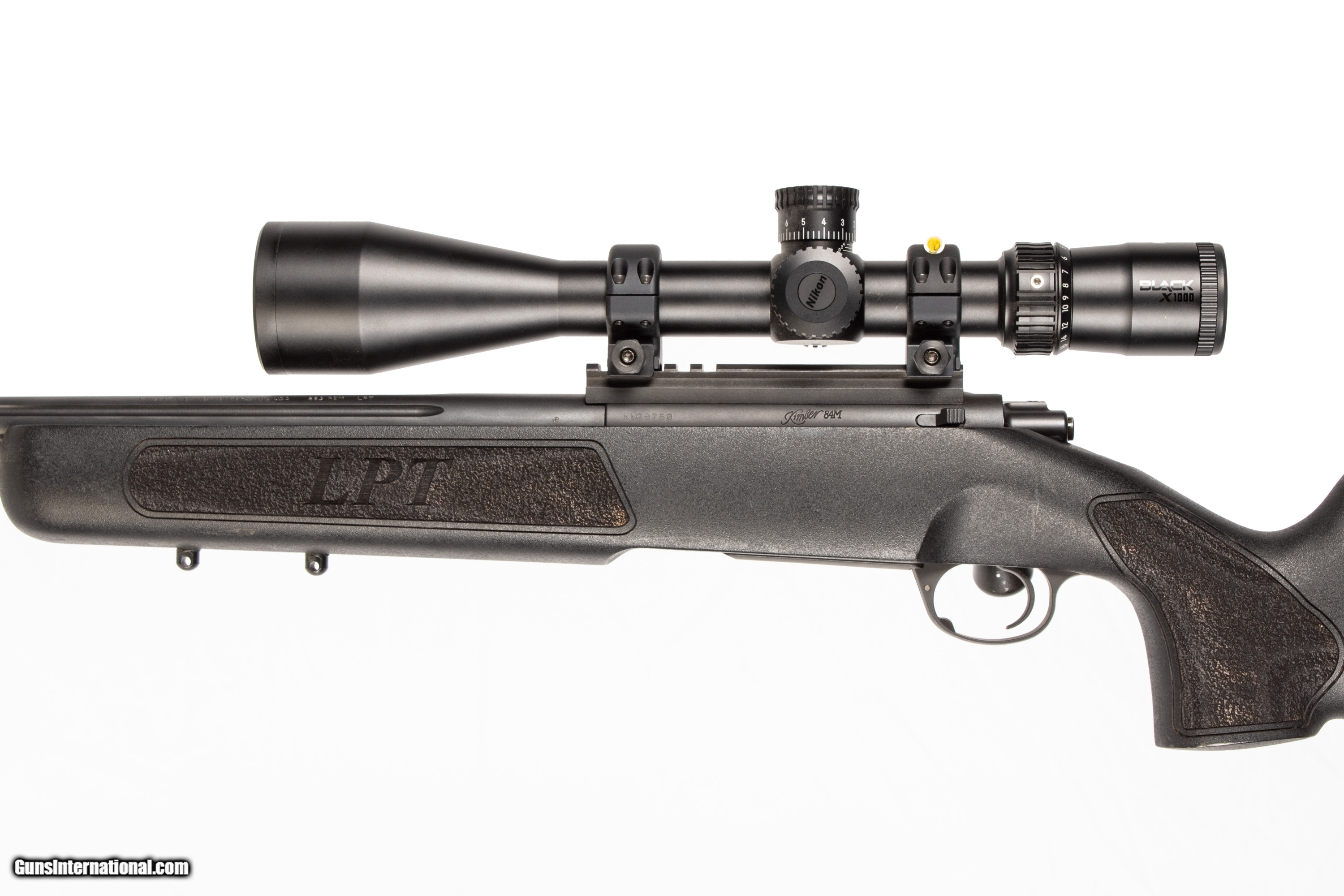 Description: Kimber model 84M chambered in 223 Rem with a 24 inch barrel and a bright & shiny bore. This firearm is fitted with a Nikon Black X1000 4-16x50 optic. This firearm is in excellent condition and is covered by Dury's Lifetime Warranty.