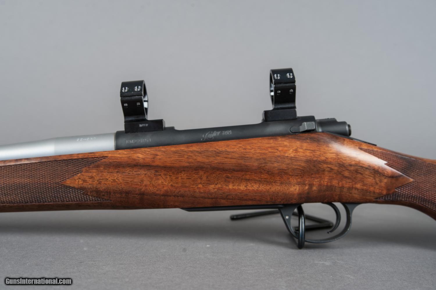 Description: Kimber 84M Classic 22-250 21" Barrel Serial # KM22851 ~USED FIREARM~ This Kimber 84M action is paired with a Pachnor Super Match barrel that will turn prairie dogs into red mist at long distances. The tightly grained walnut stock is pillar bedded for strength and precision. This rifle shows minimal wear and would make a great addition to you varmint sniping collection. Talley rings included. Specifications